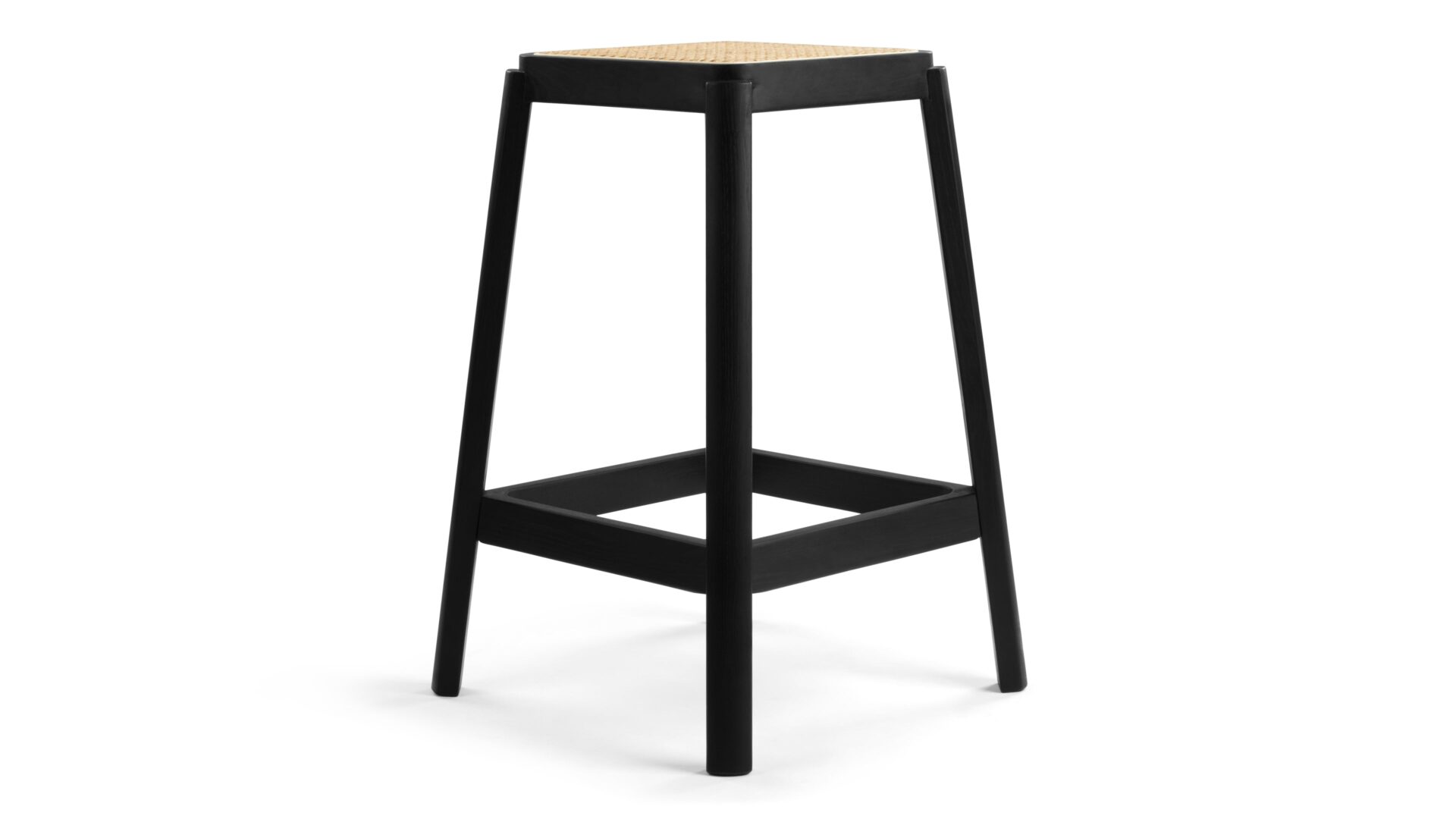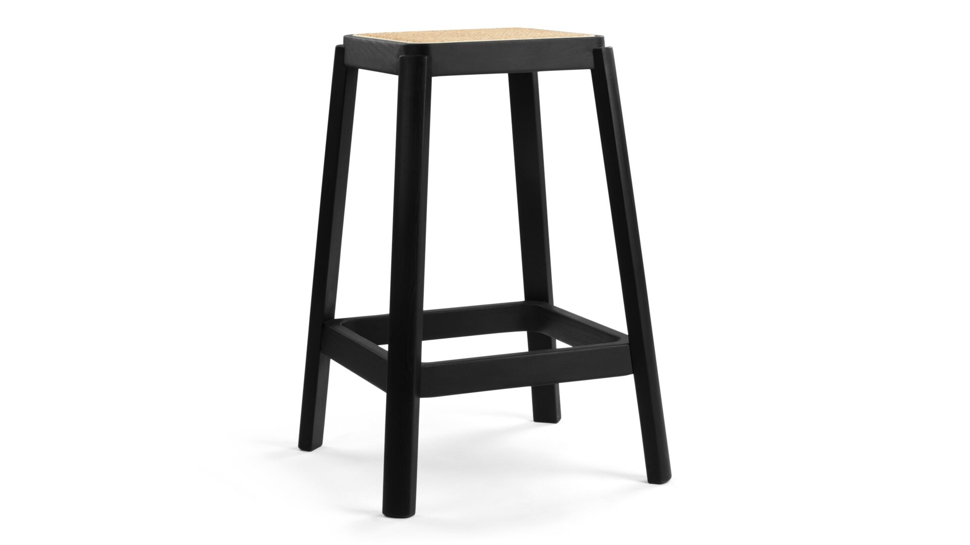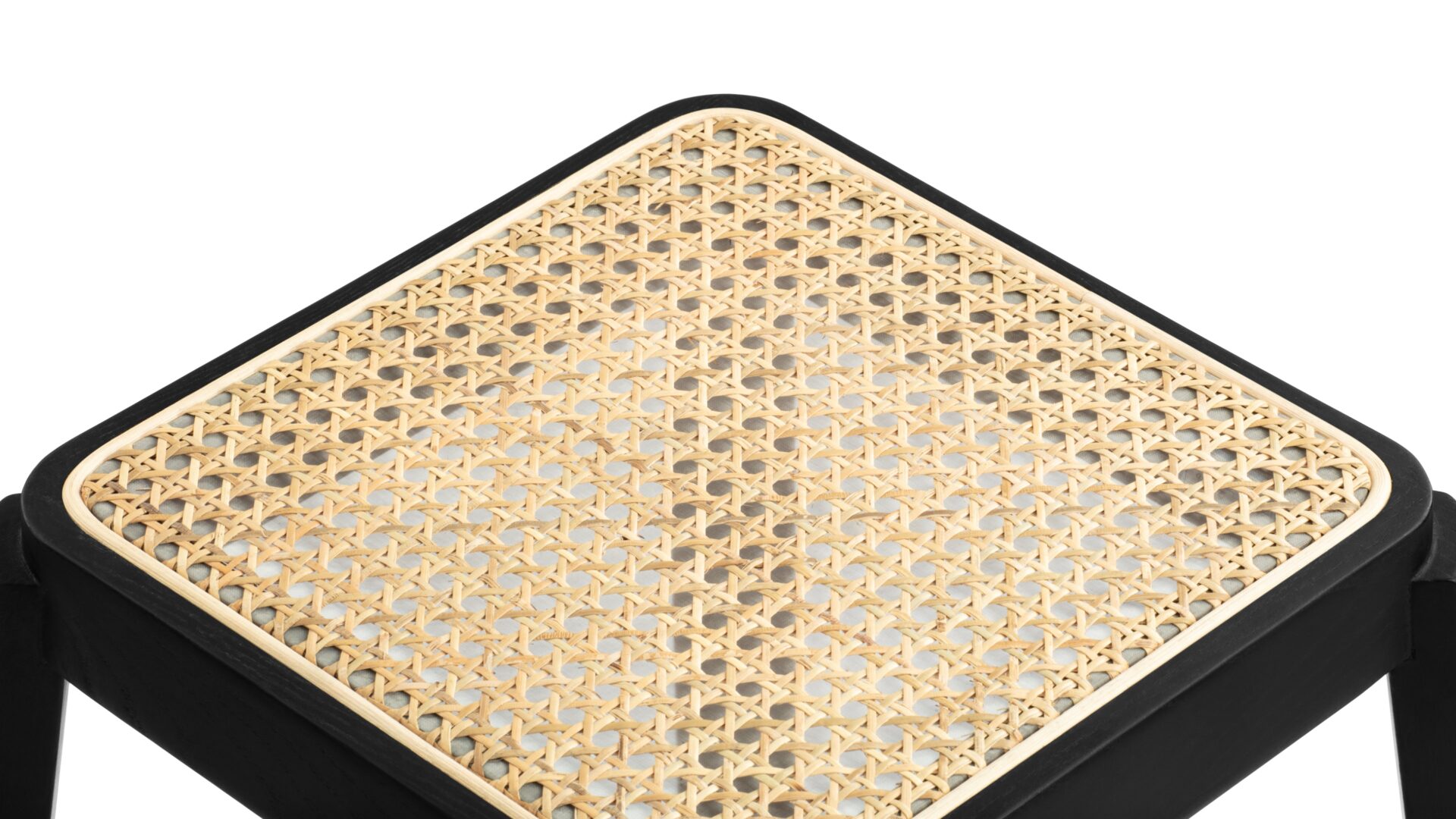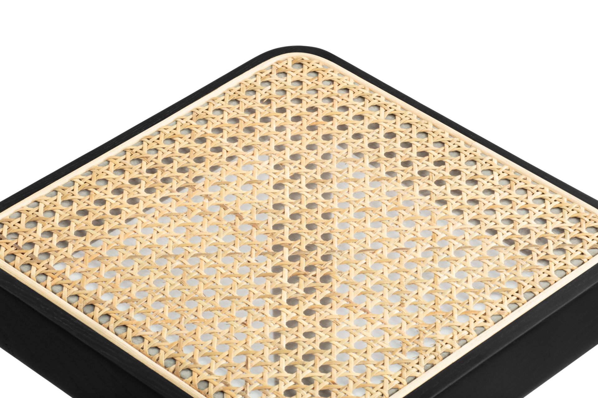 Elevate your kitchen or dining area with the sleek and stylish Pierre Jeanneret Counter Stool in Black, featuring a square rattan seat. Crafted to seamlessly blend contemporary design with natural allure, this stool exudes understated elegance. Embrace the timeless appeal of the artisanal rattan craftsmanship set against a solid black wood frame, perfect for modern interiors.