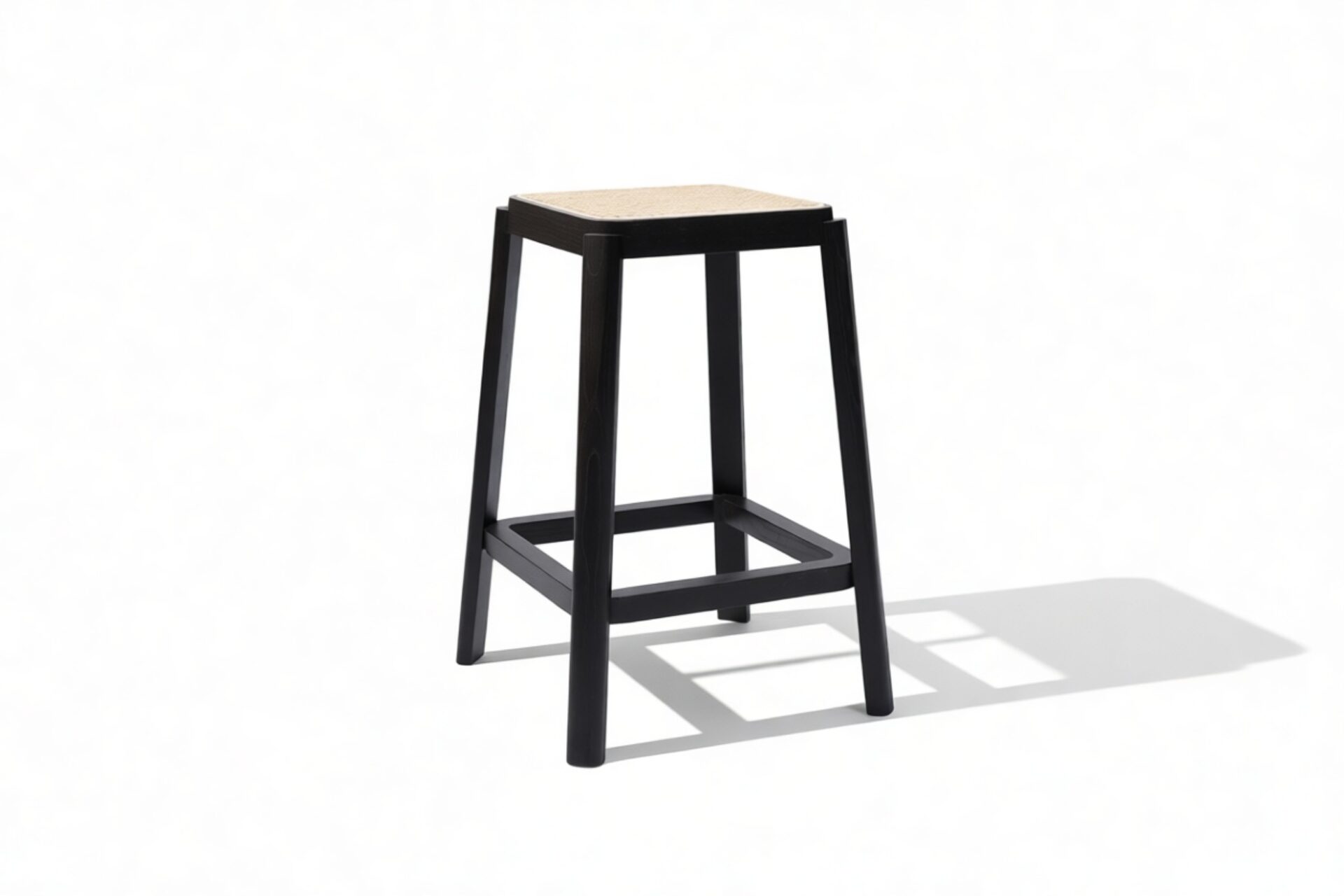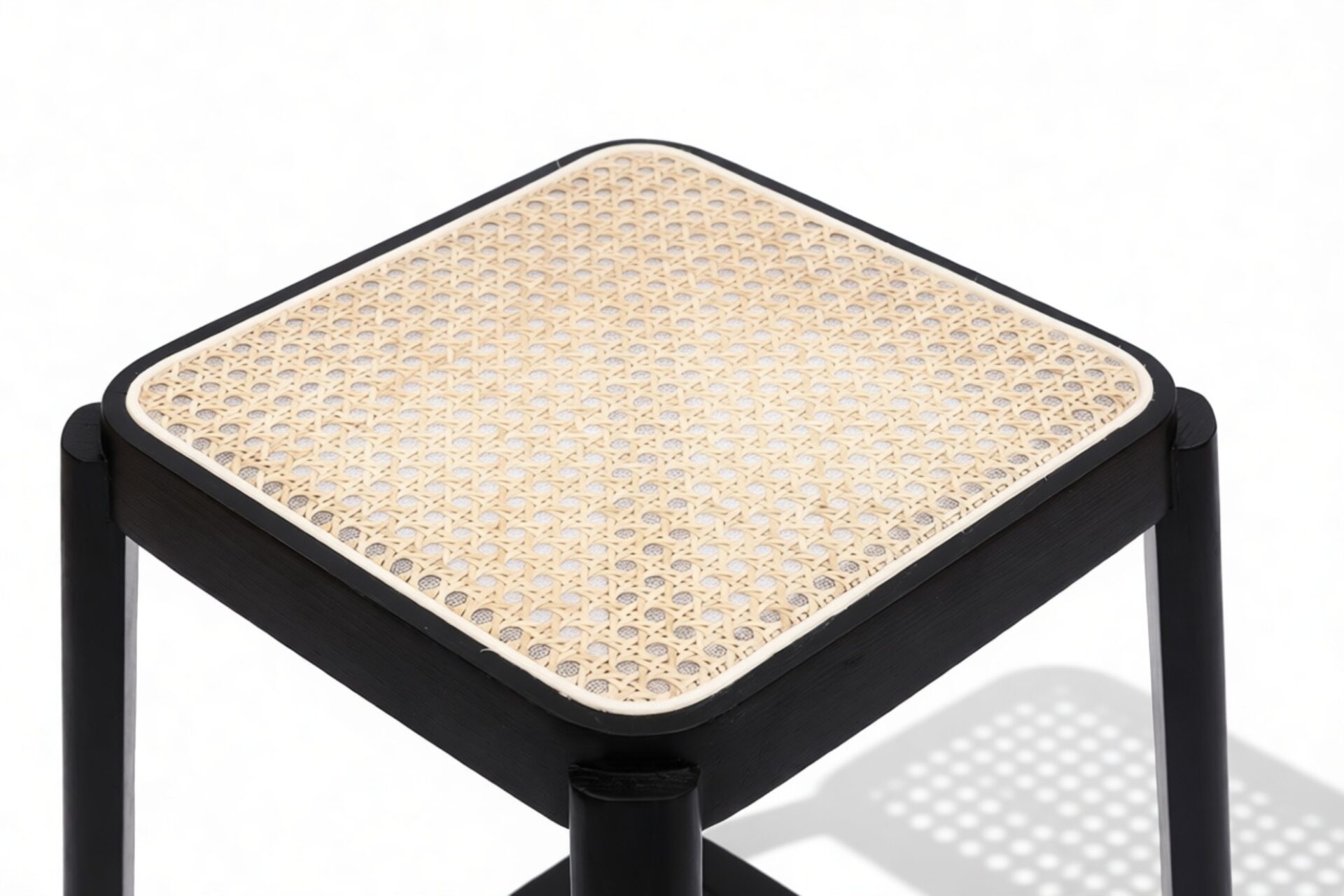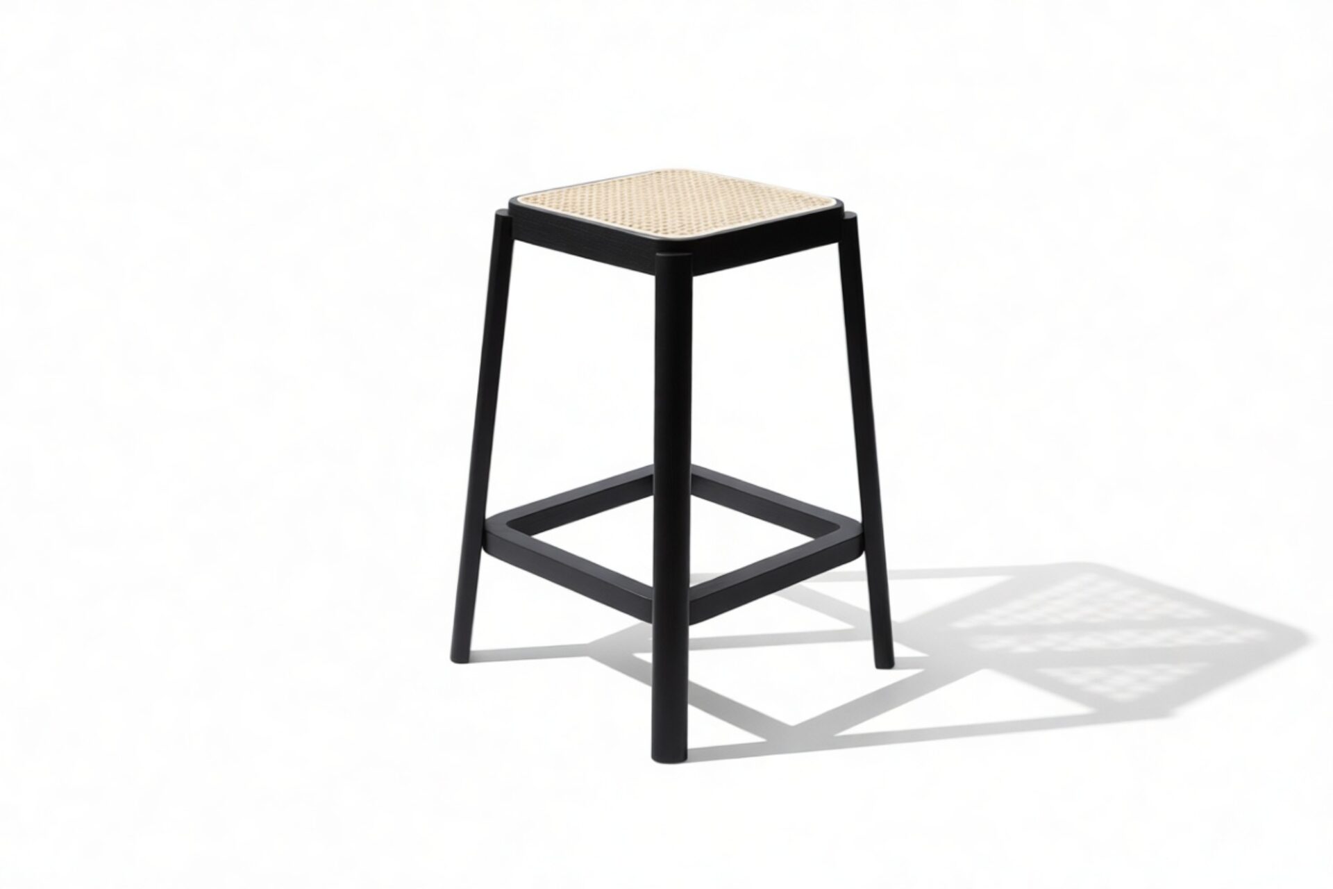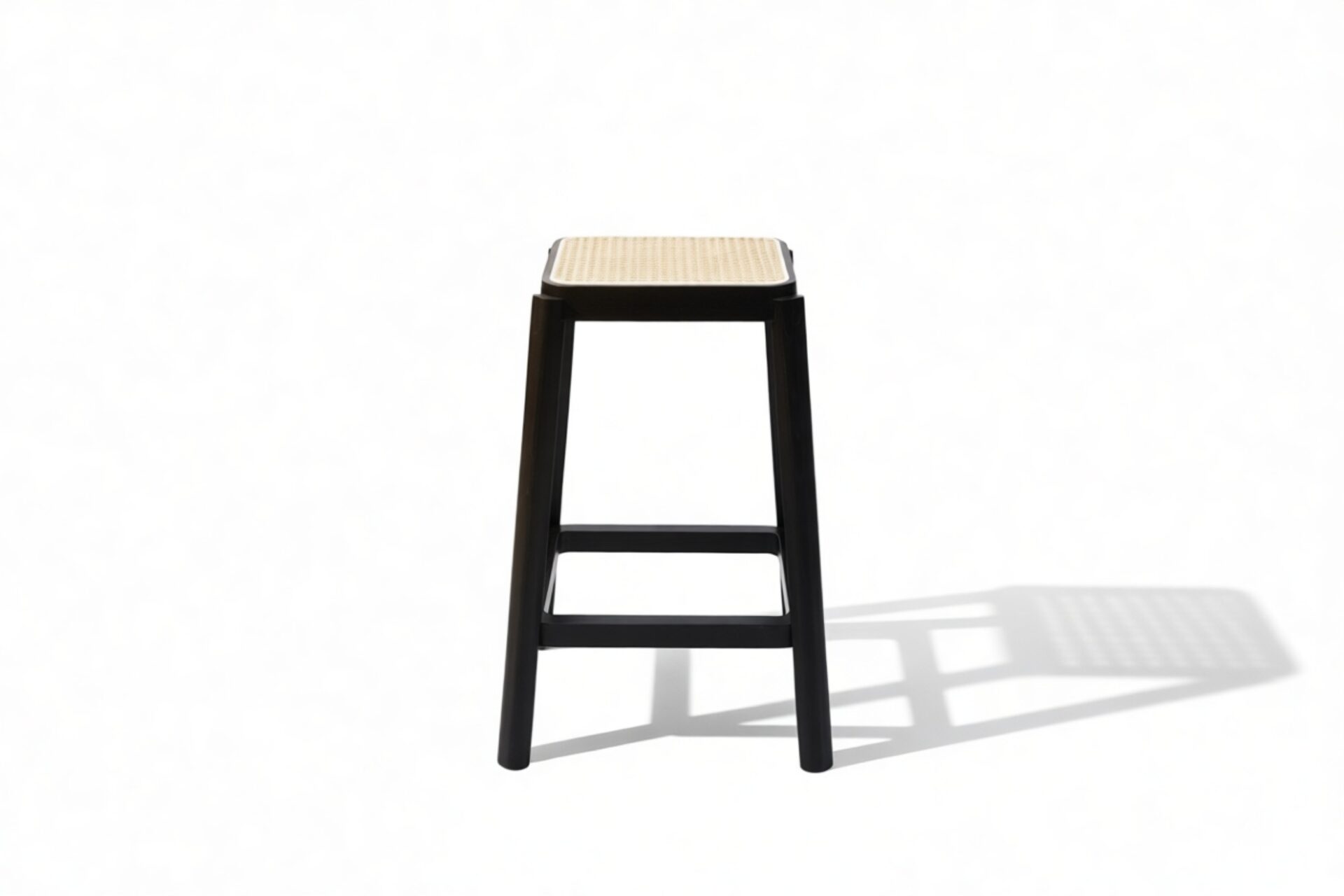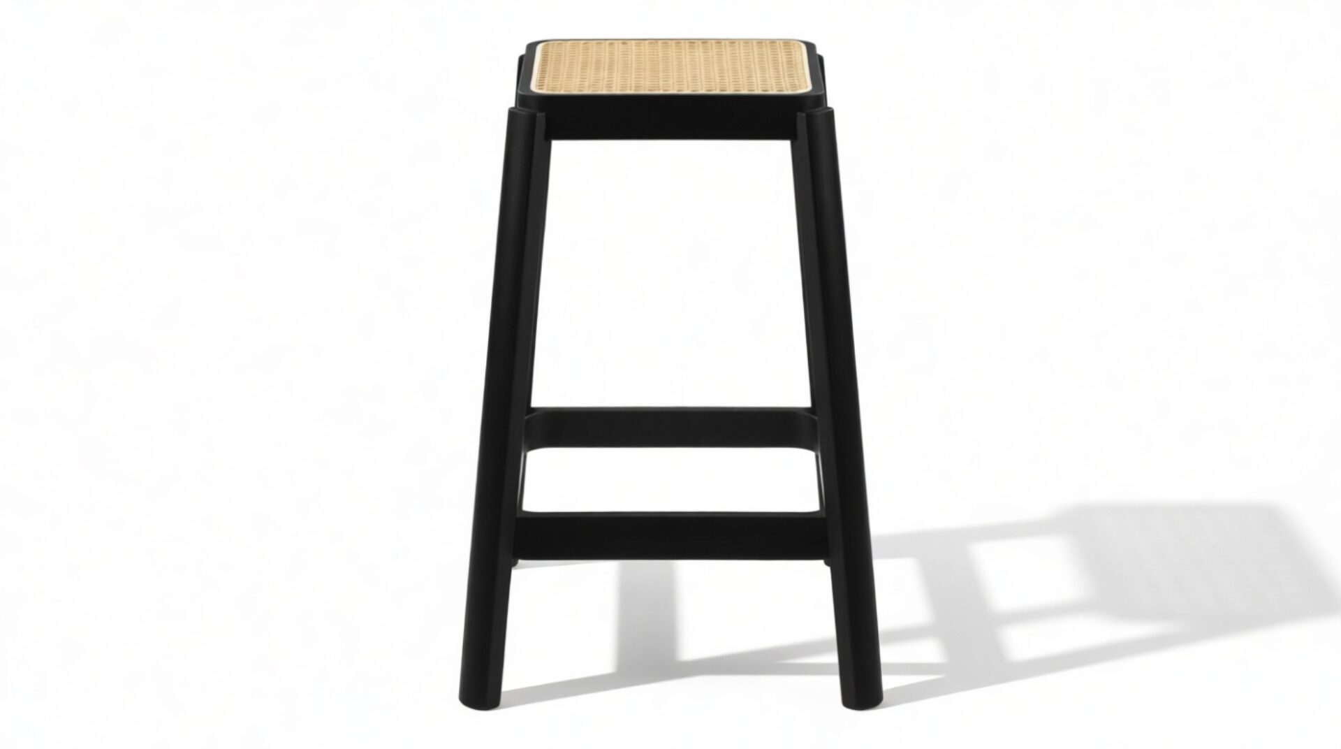 Elevate your kitchen or dining area with the sleek and stylish Pierre Jeanneret Counter Stool in Black, featuring a square rattan seat. Crafted to seamlessly blend contemporary design with natural allure, this stool exudes understated elegance. Embrace the timeless appeal of the artisanal rattan craftsmanship set against a solid black wood frame, perfect for modern interiors.