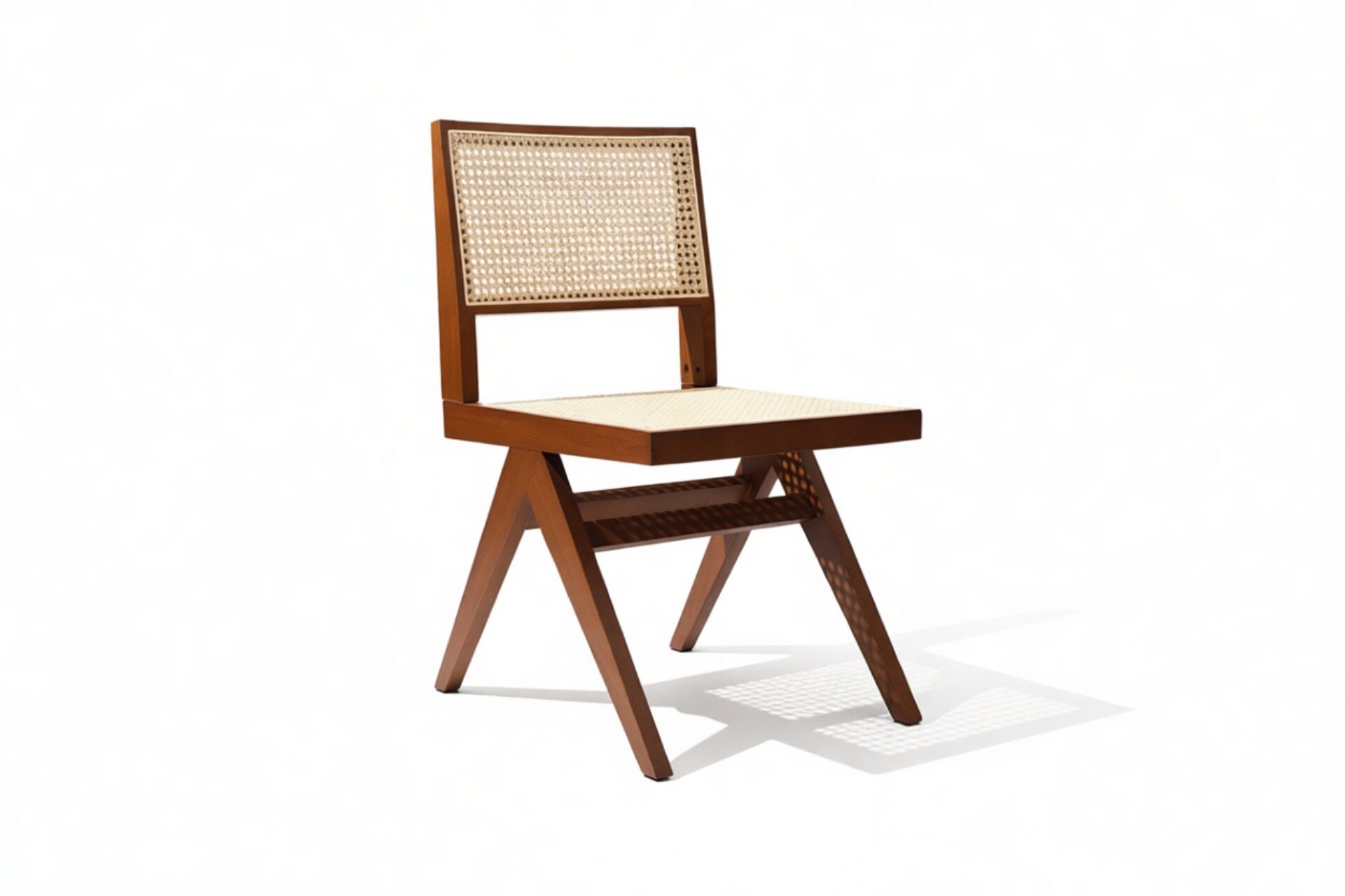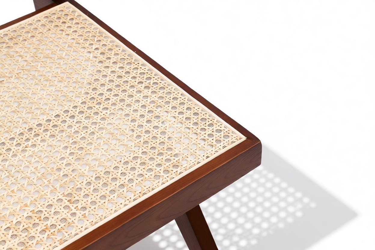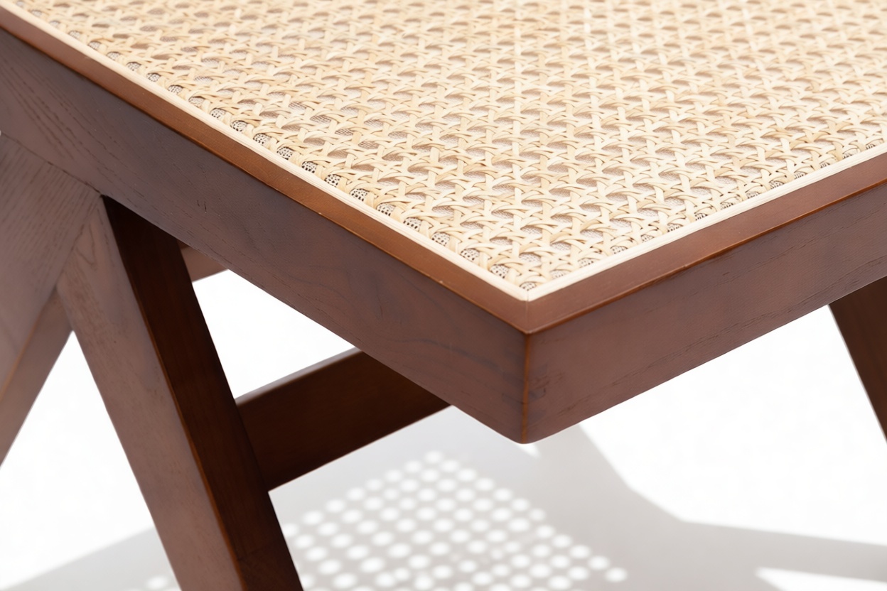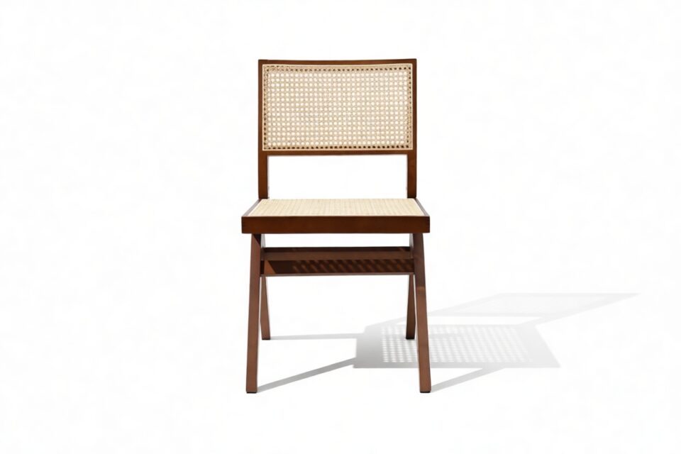 Demonstrating that attention to detail is paramount, the Pierre Jeanneret Dining Chair showcases a rattan seat and back expertly handcrafted by skilled artisans.