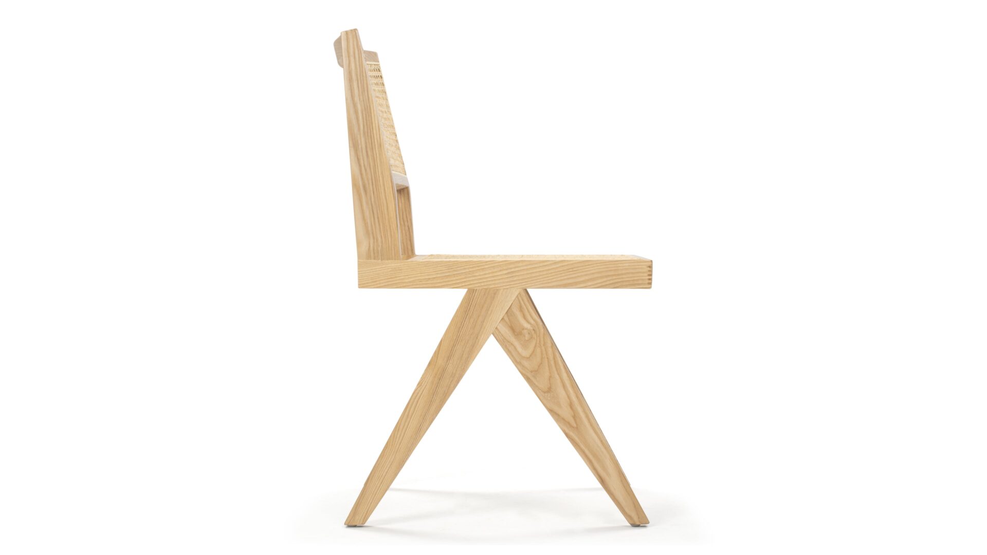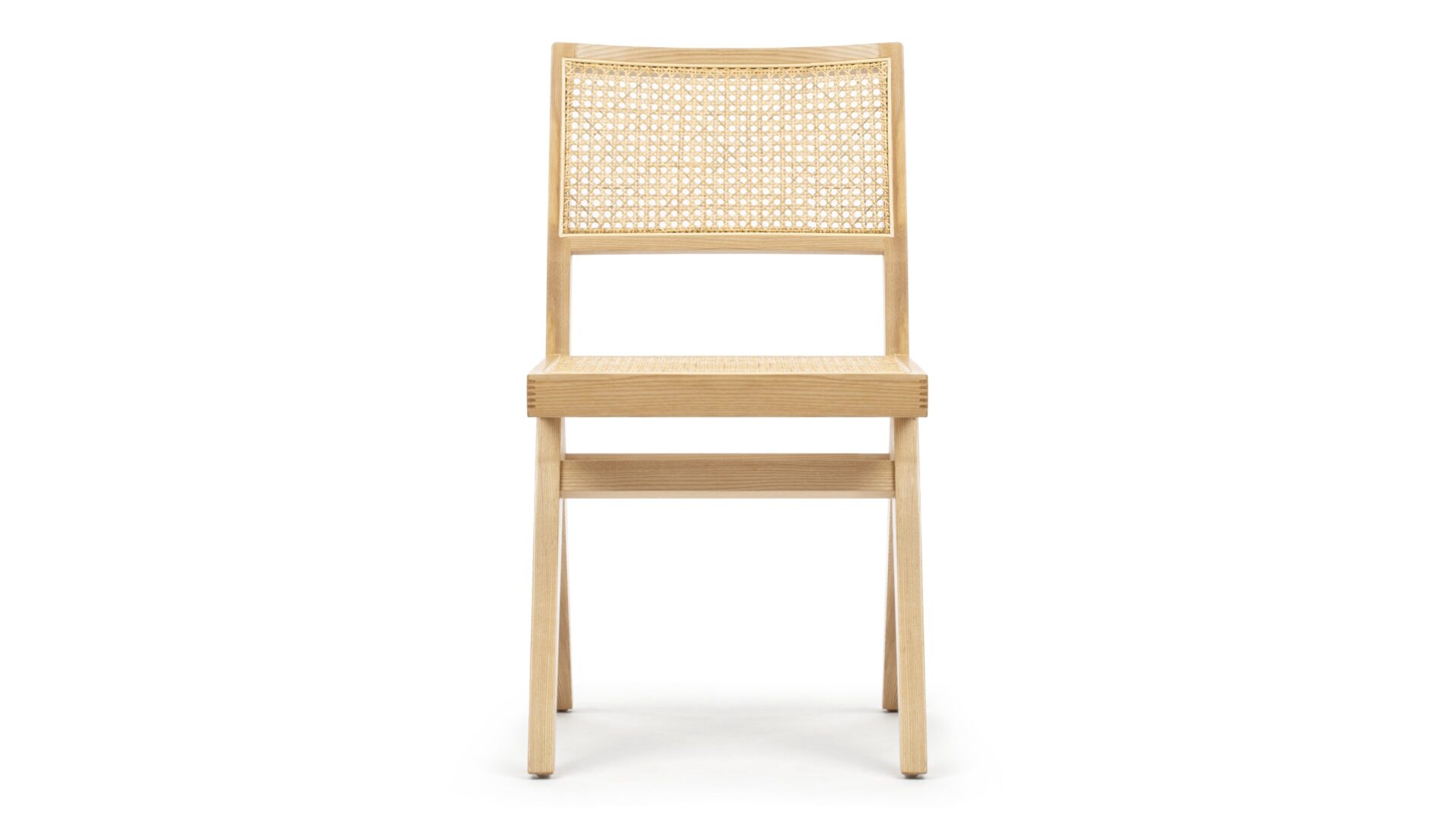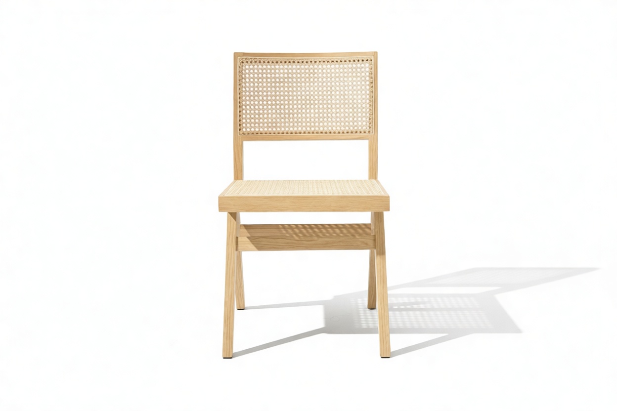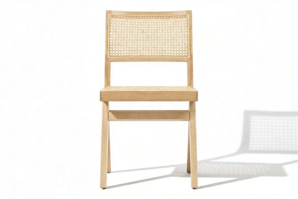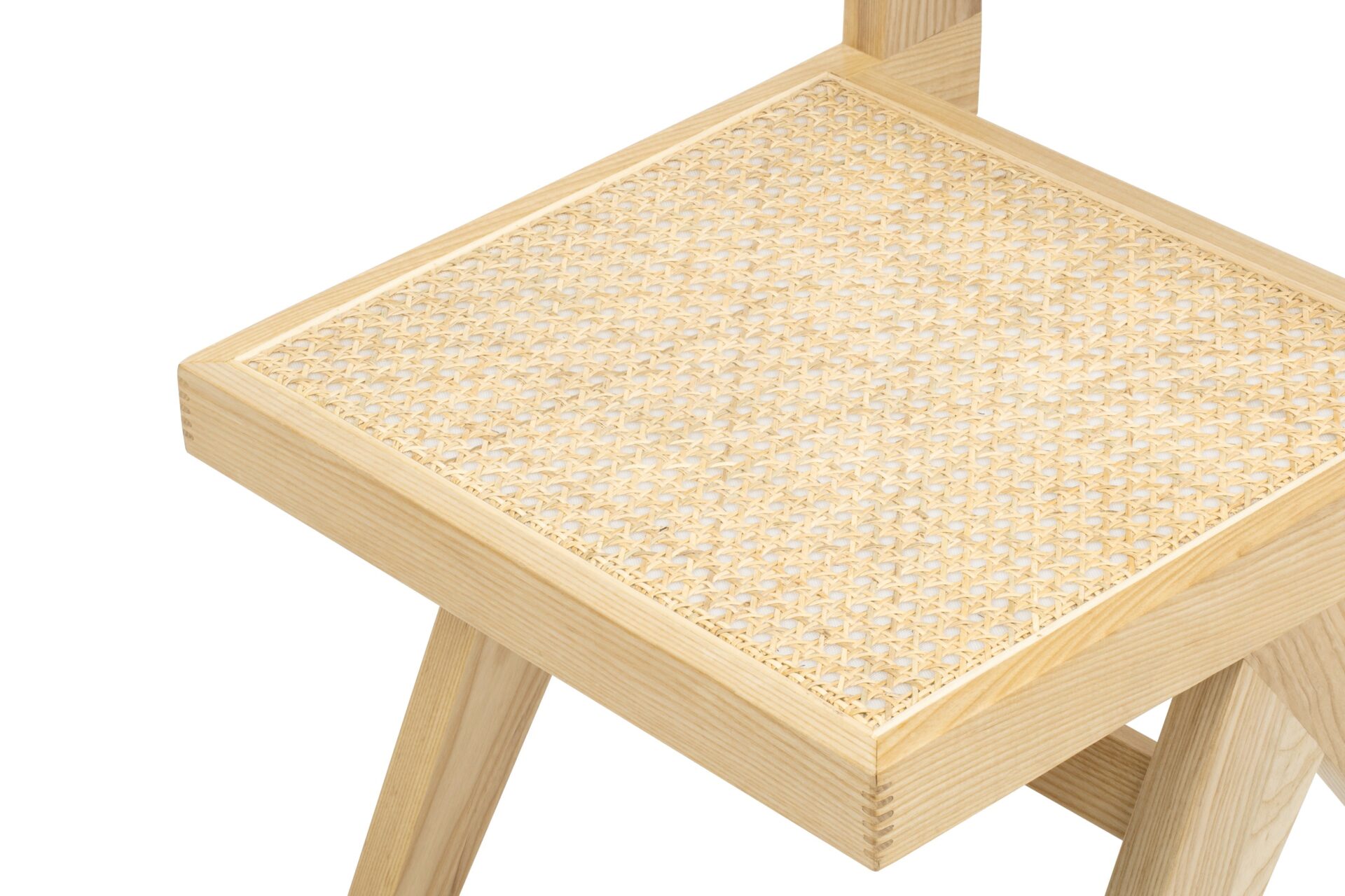Transporting you back to the stylish 1950s era, the Pierre Jeanneret Dining Chair beautifully embodies mid-century design trends. Influenced by campaign-style furniture, this chic chair showcases natural Ash wood and rattan. Crafted for lasting comfort, its sturdy wooden frame and seamless blend of style and functionality make it perfect for family gatherings.
