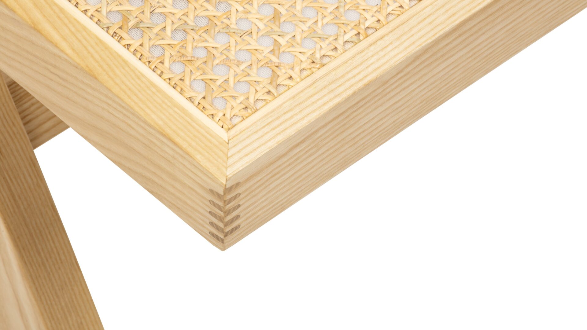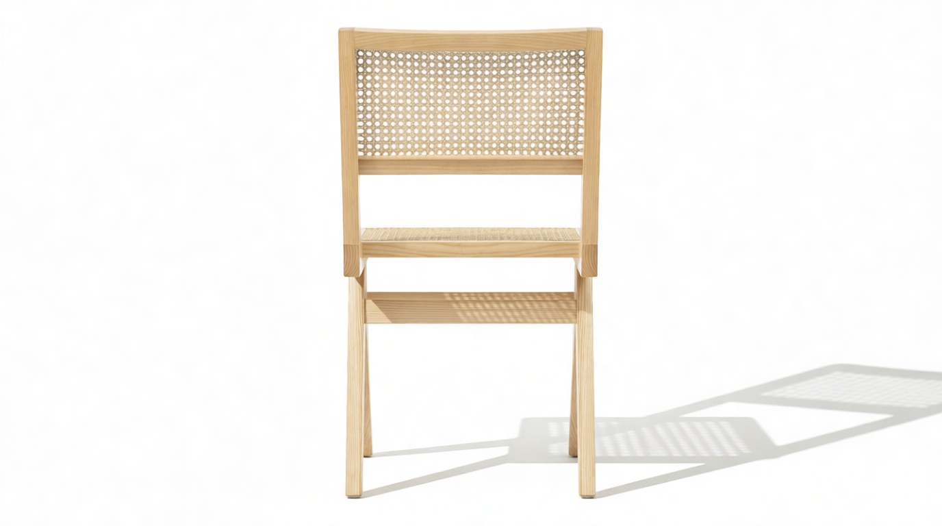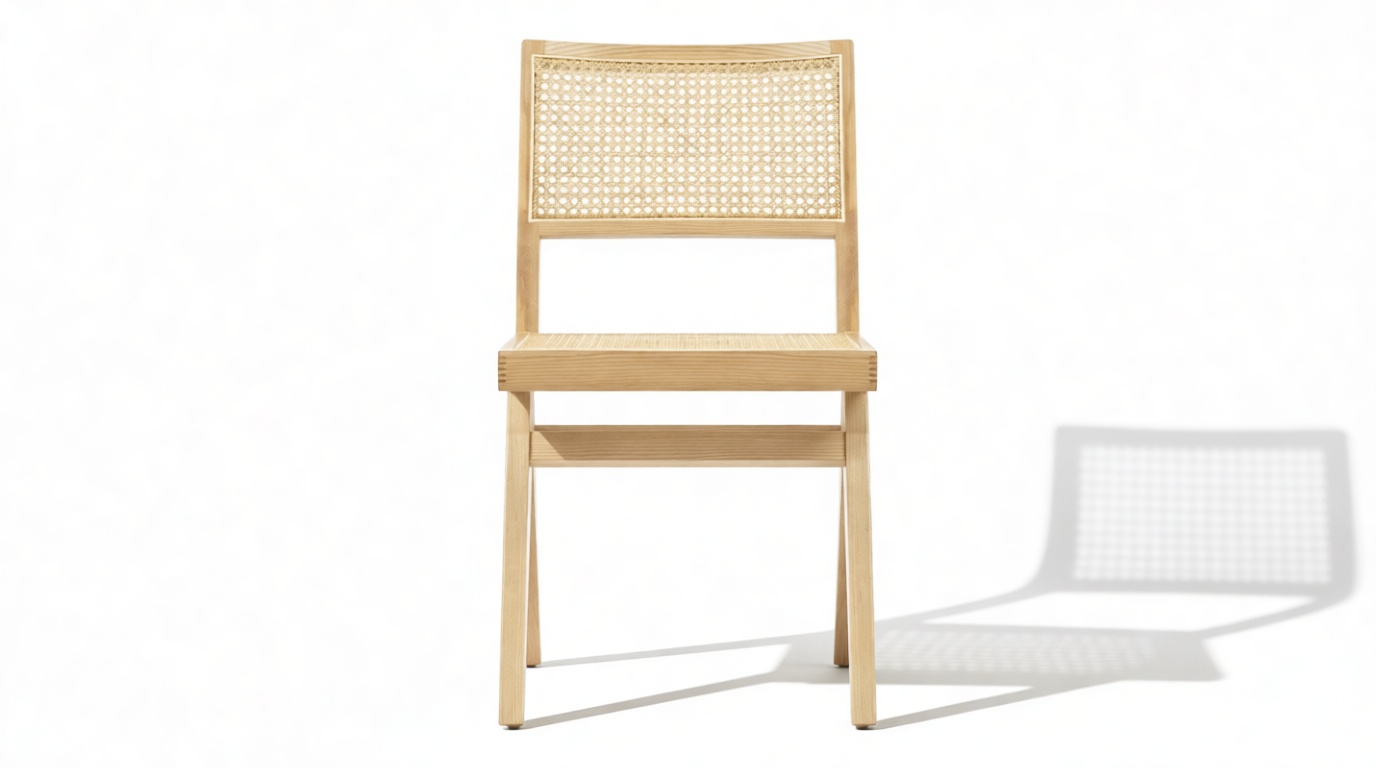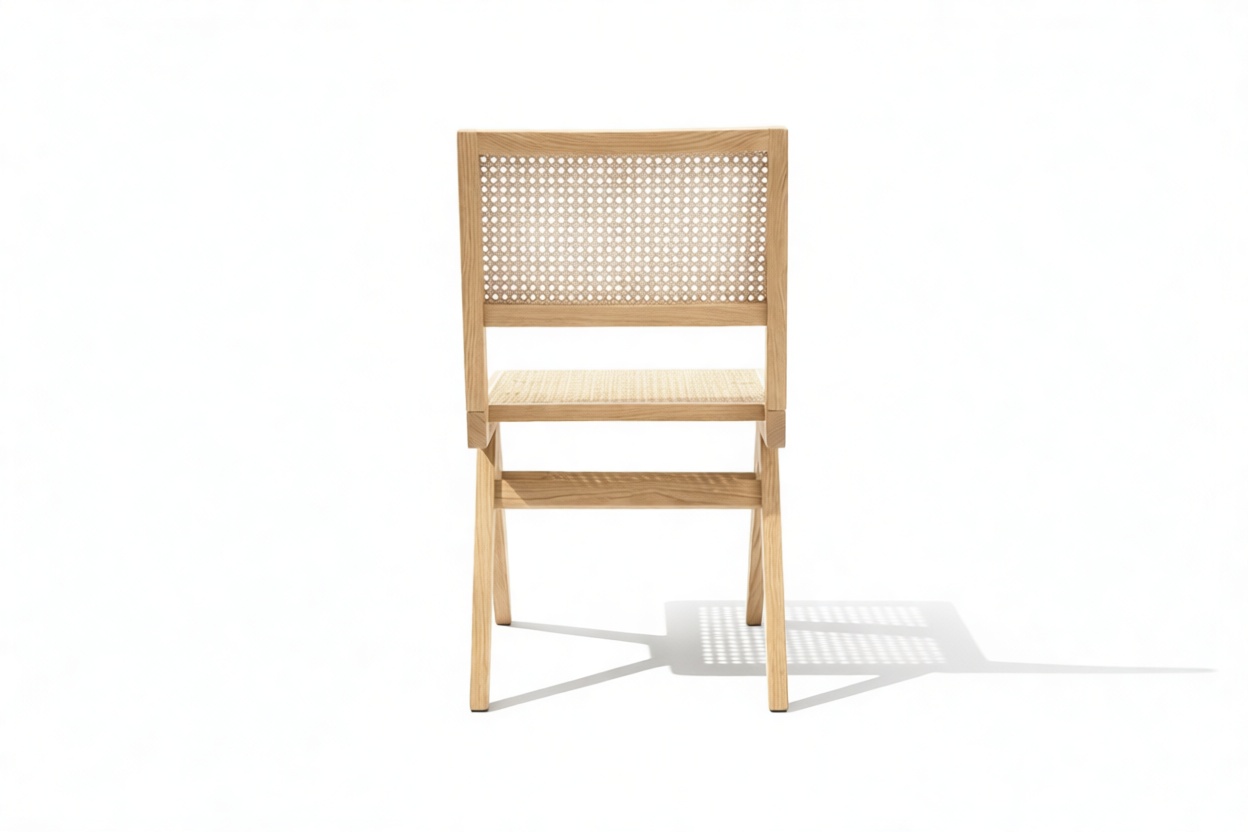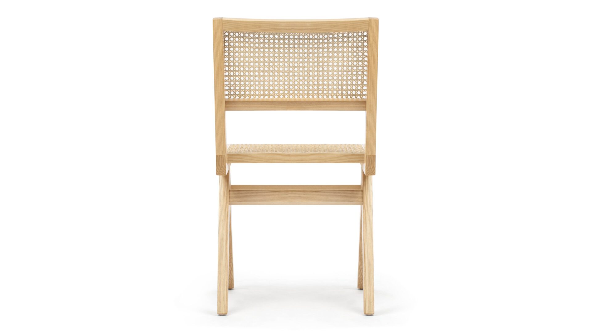 Transporting you back to the stylish 1950s era, the Pierre Jeanneret Dining Chair beautifully embodies mid-century design trends. Influenced by campaign-style furniture, this chic chair showcases natural Ash wood and rattan. Crafted for lasting comfort, its sturdy wooden frame and seamless blend of style and functionality make it perfect for family gatherings.
