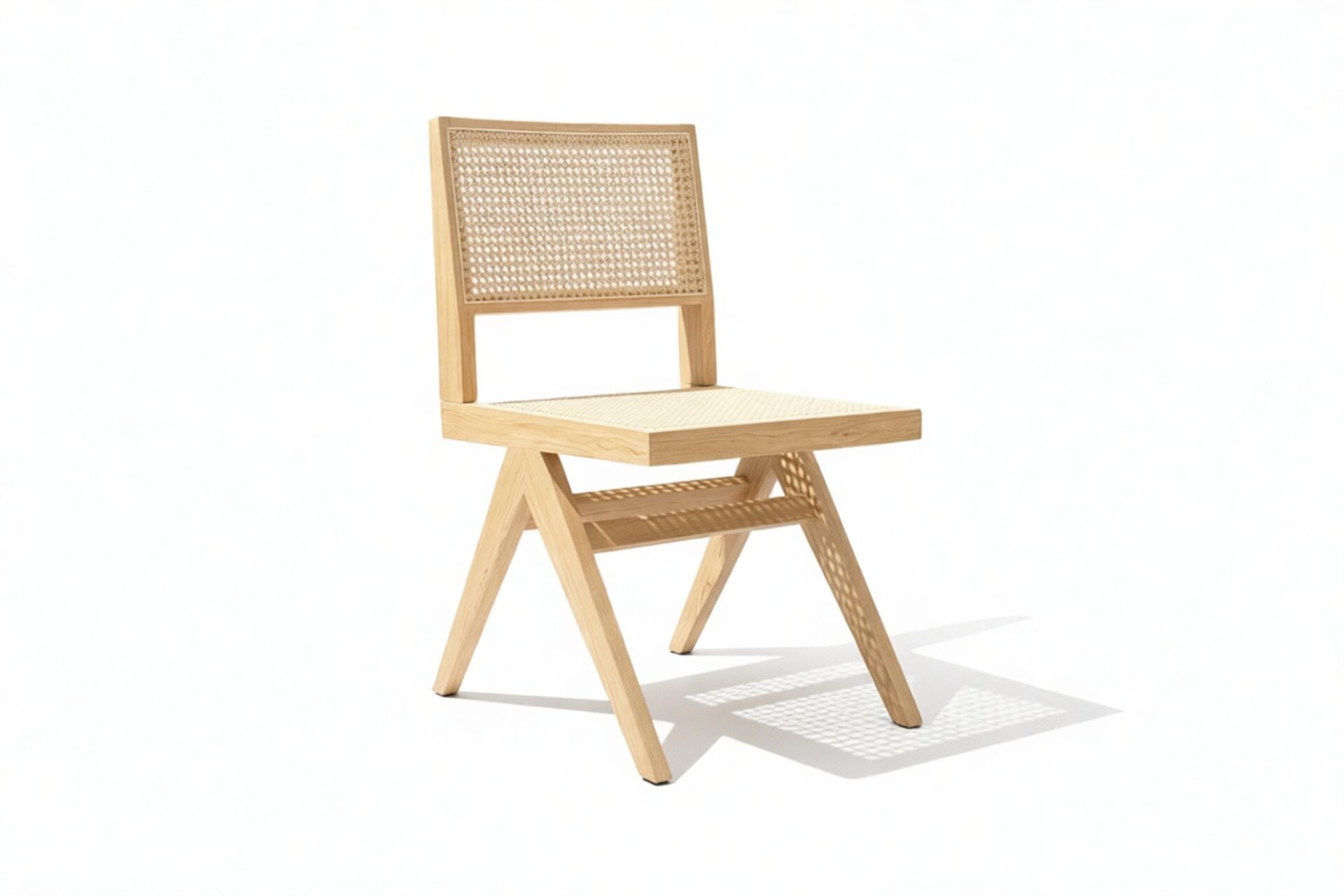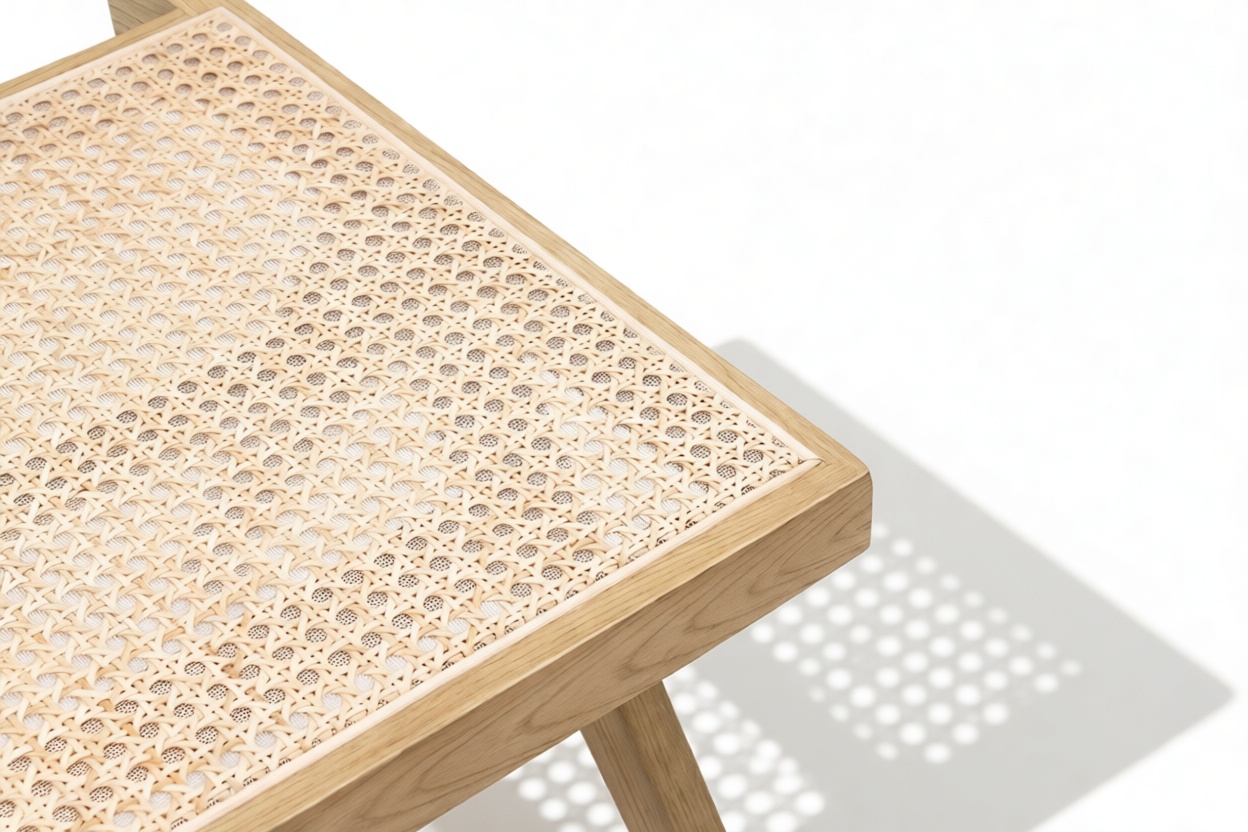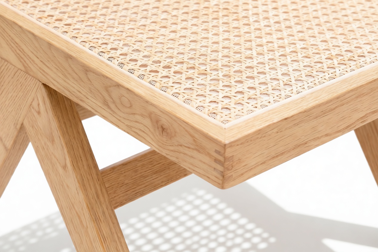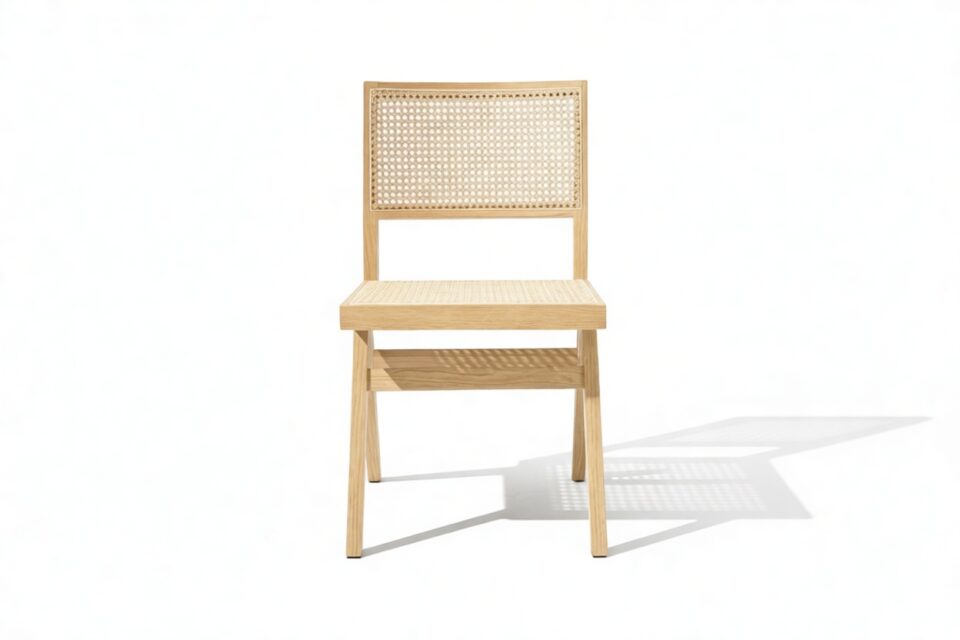 Demonstrating that attention to detail is paramount, the Pierre Jeanneret Dining Chair showcases a rattan seat and back expertly handcrafted by skilled artisans.