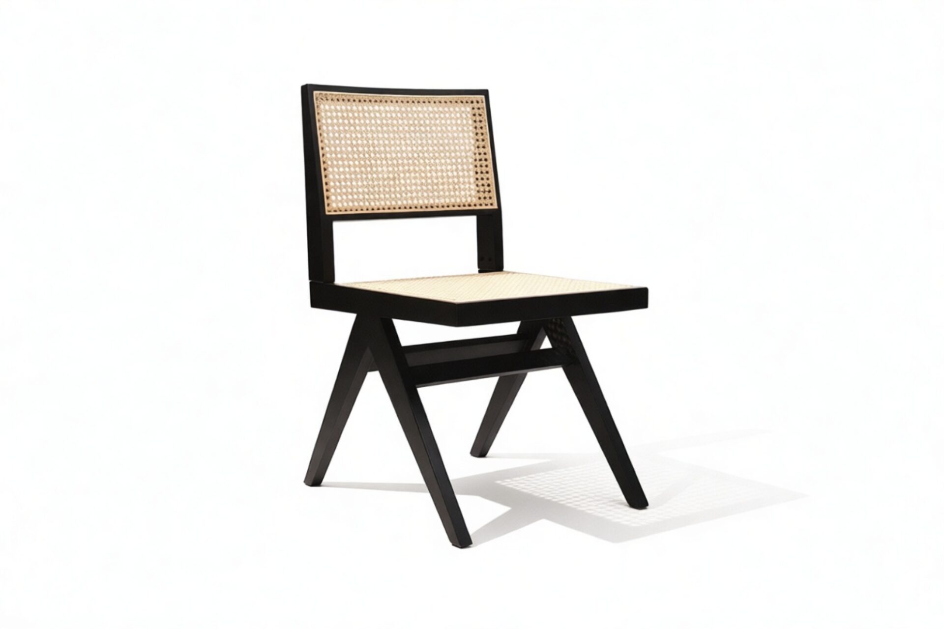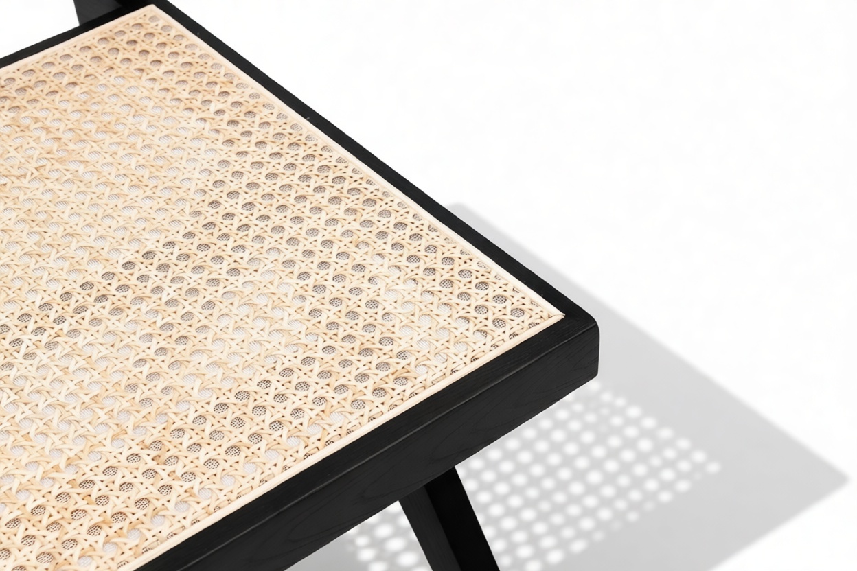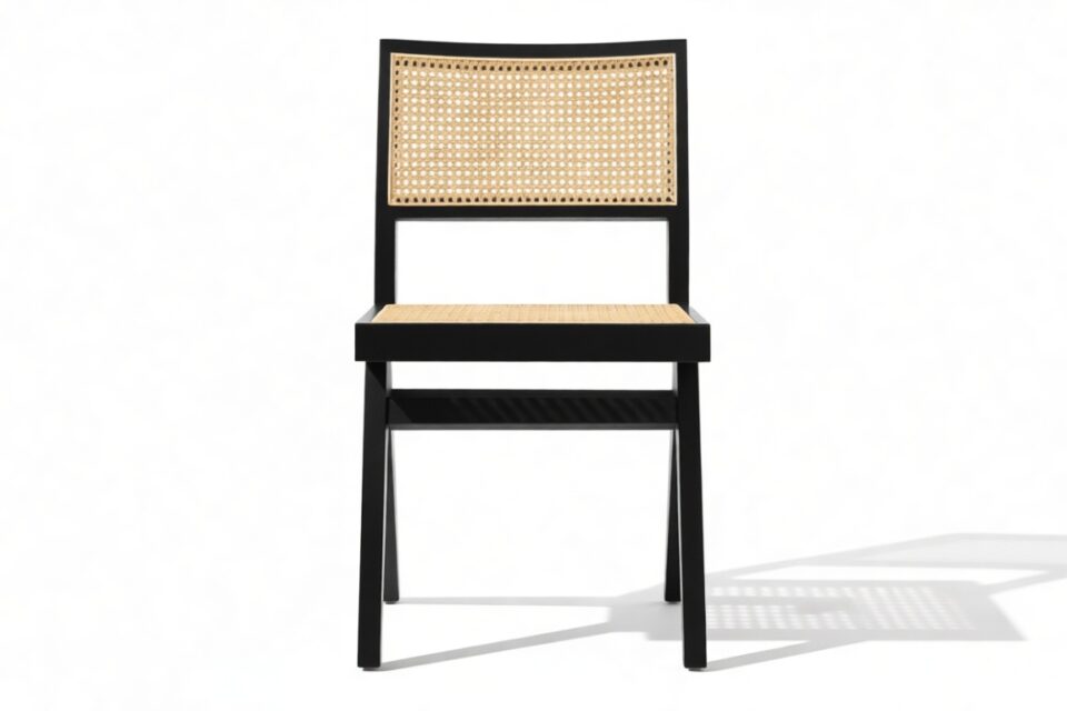 Demonstrating that attention to detail is paramount, the Pierre Jeanneret Dining Chair showcases a rattan seat and back expertly handcrafted by skilled artisans.