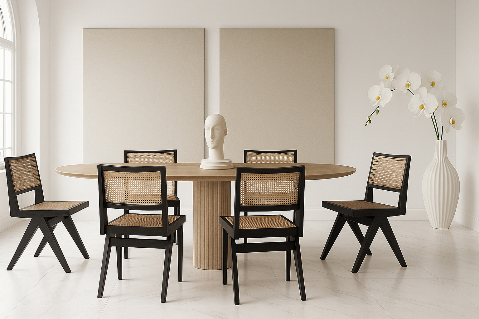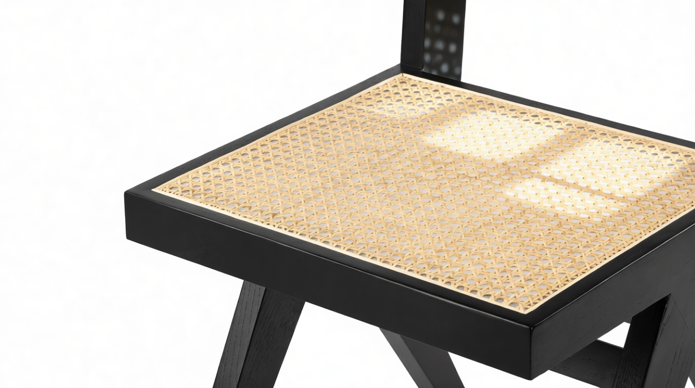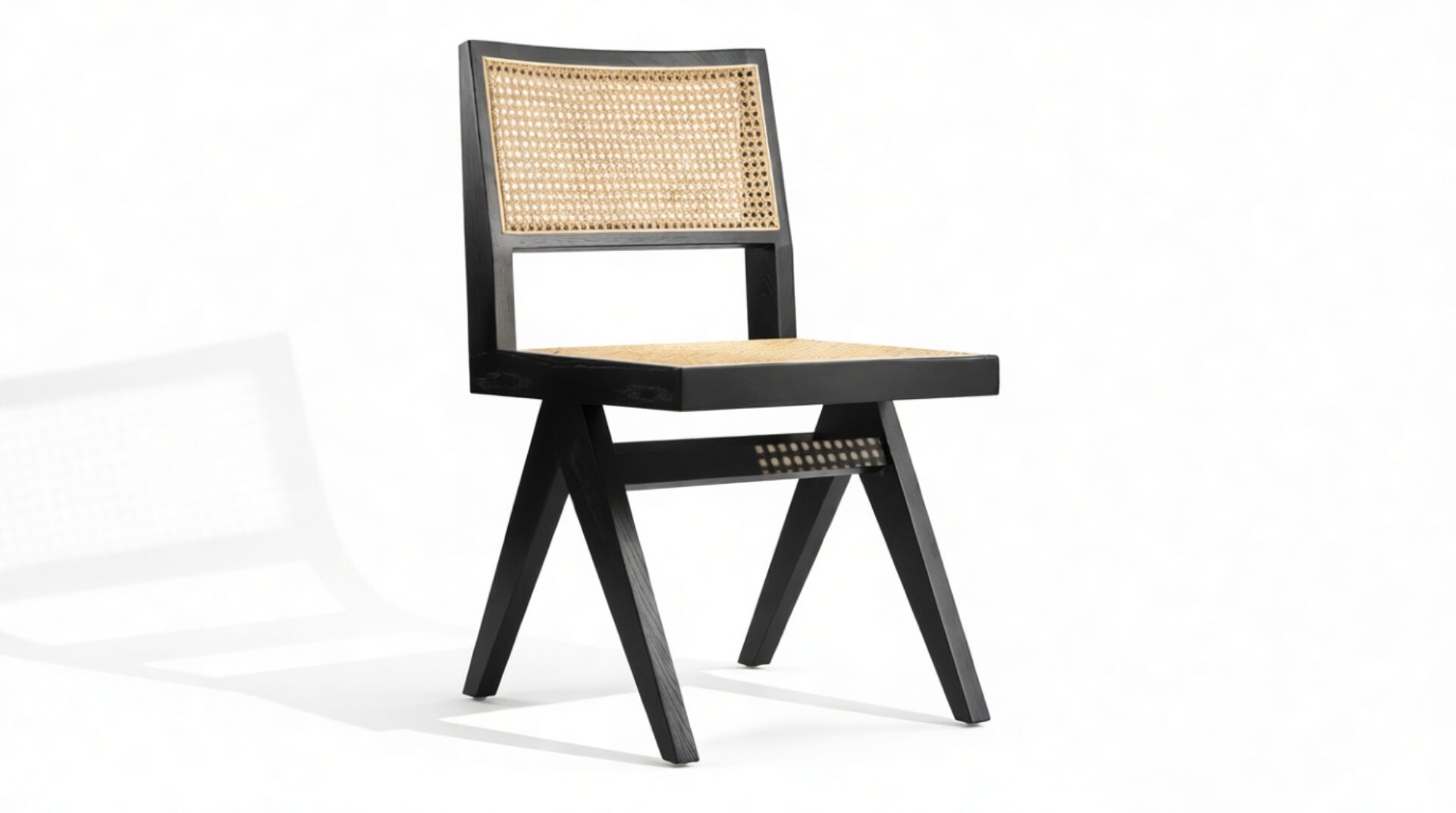 Demonstrating that attention to detail is paramount, the Pierre Jeanneret Dining Chair showcases a rattan seat and back expertly handcrafted by skilled artisans.