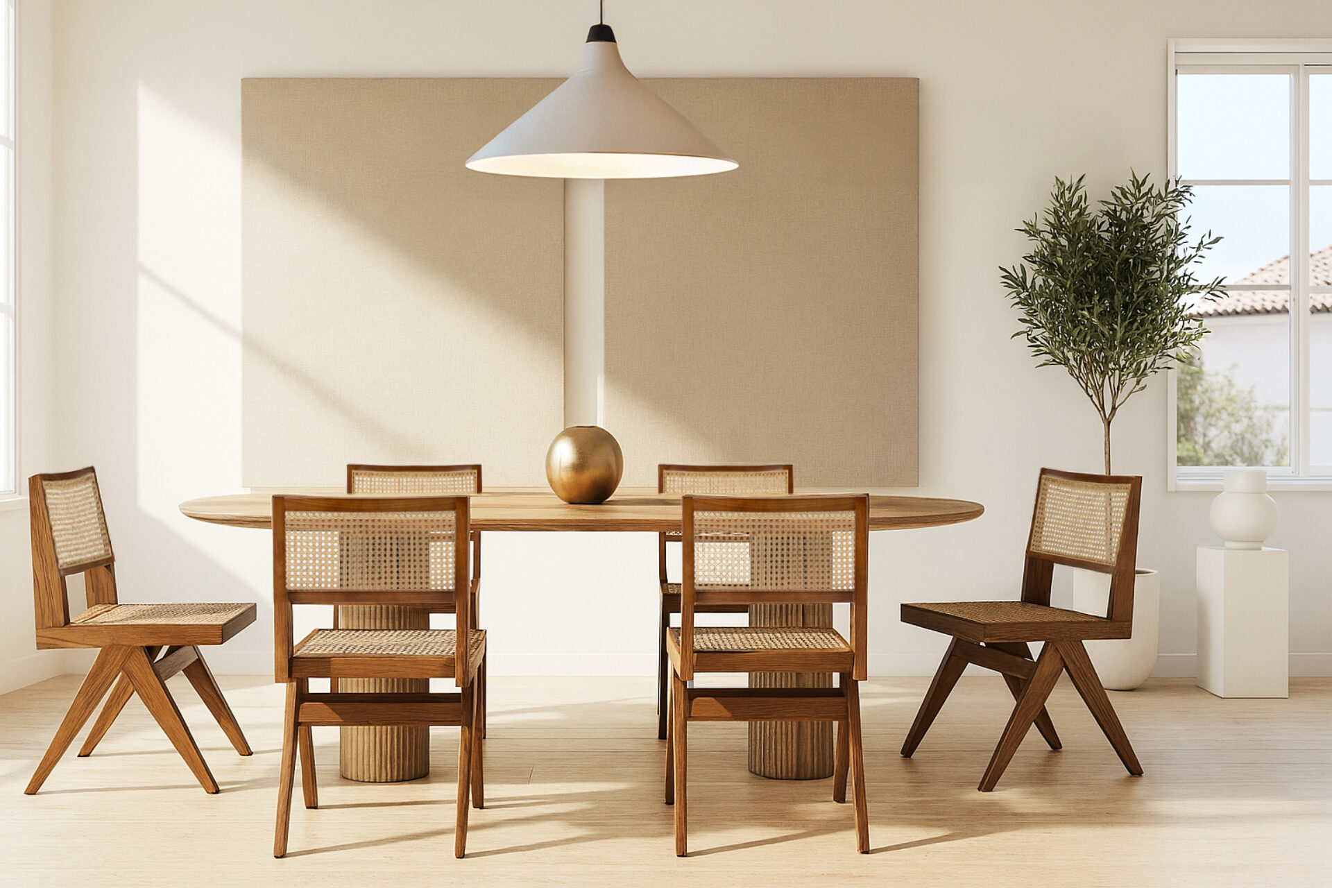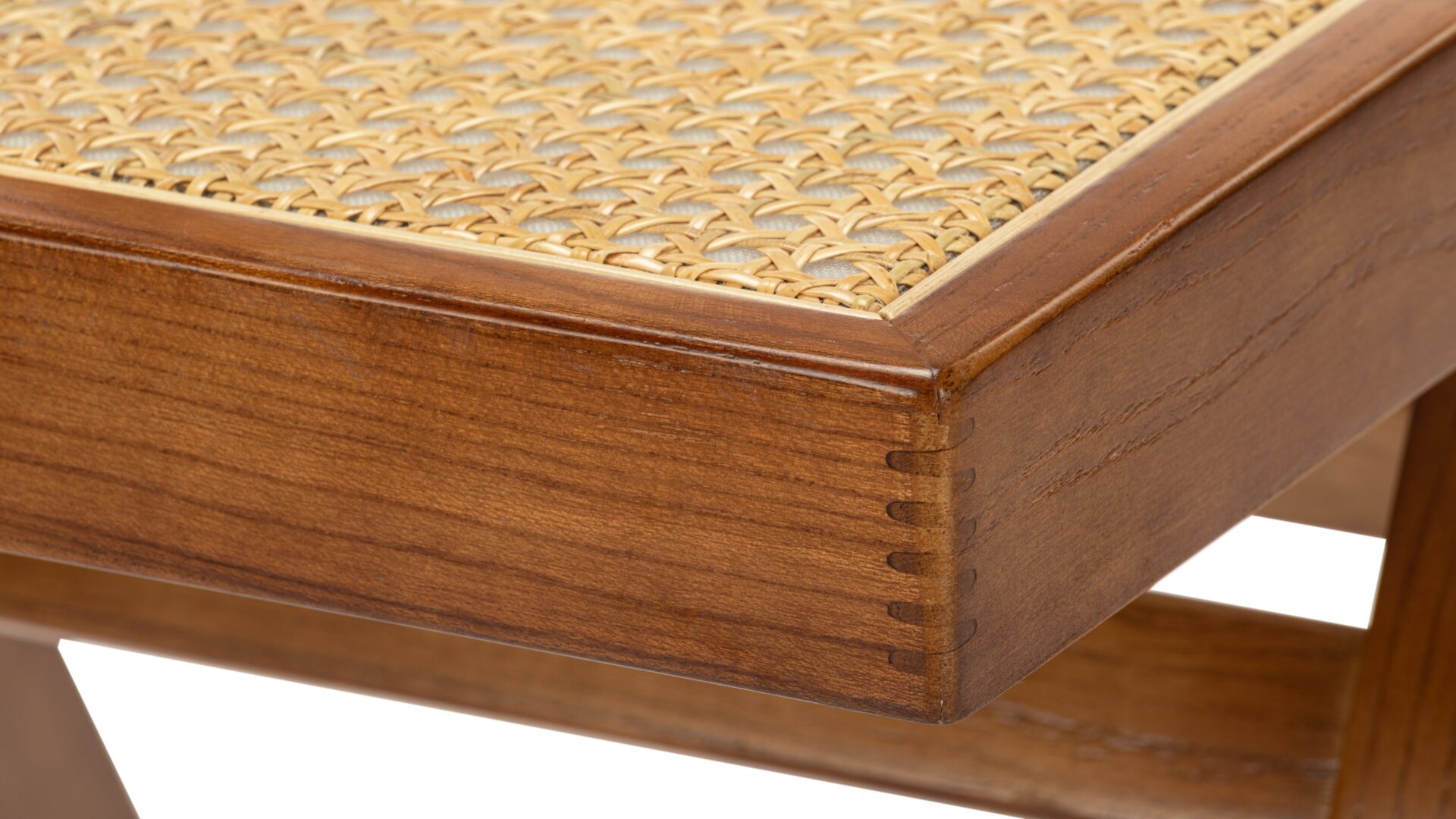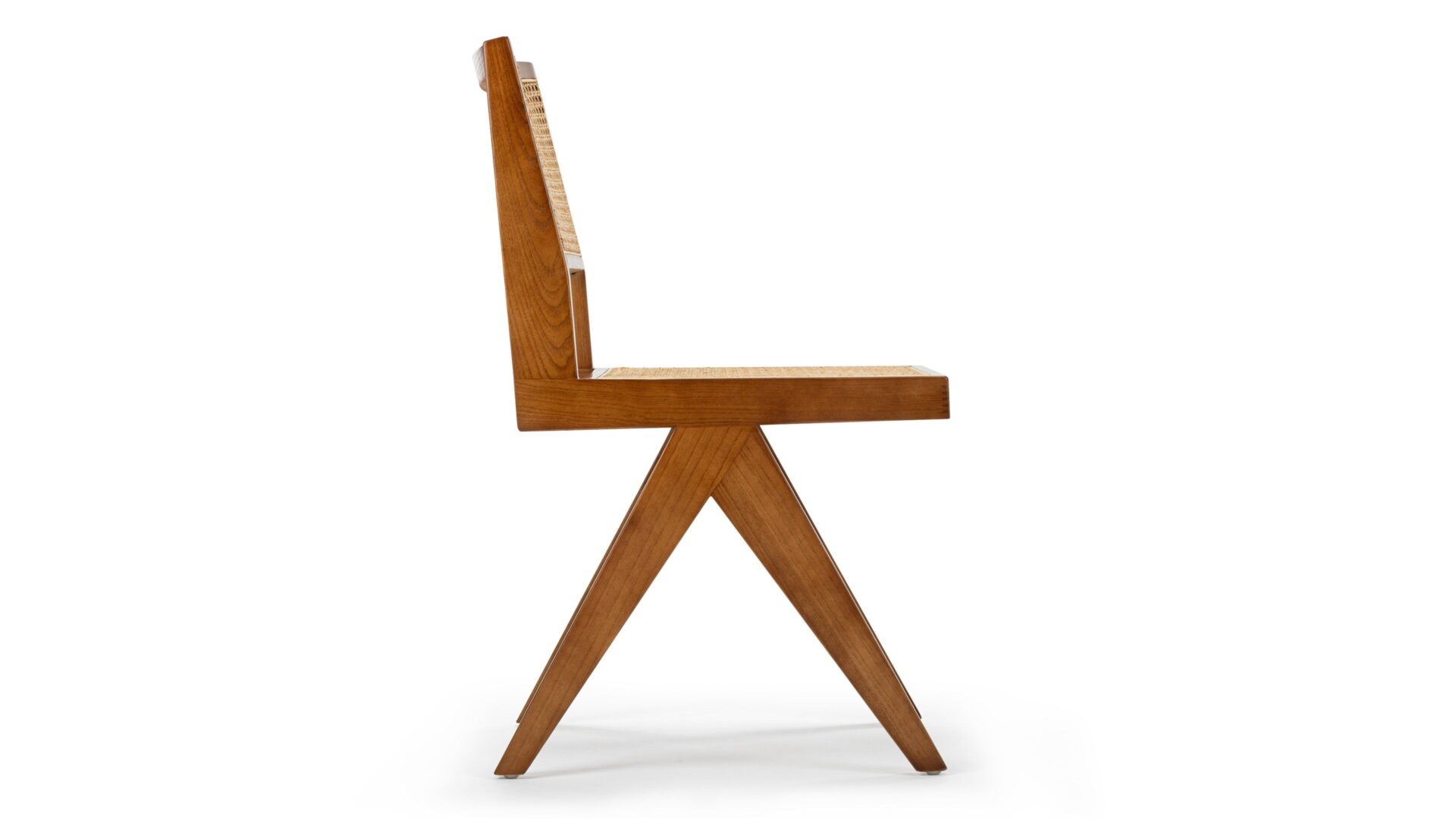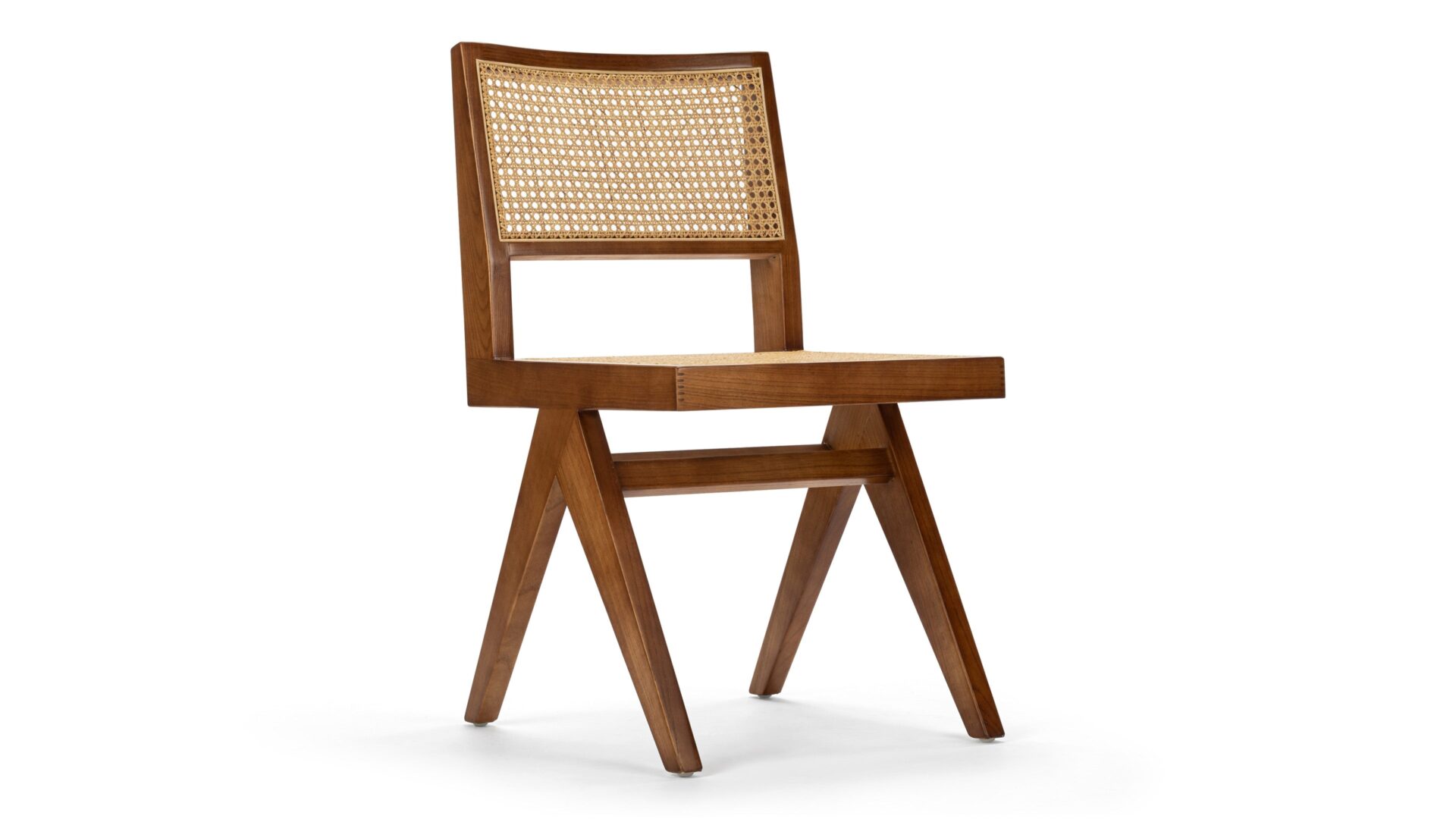 Demonstrating that attention to detail is paramount, the Pierre Jeanneret Dining Chair showcases a rattan seat and back expertly handcrafted by skilled artisans.
