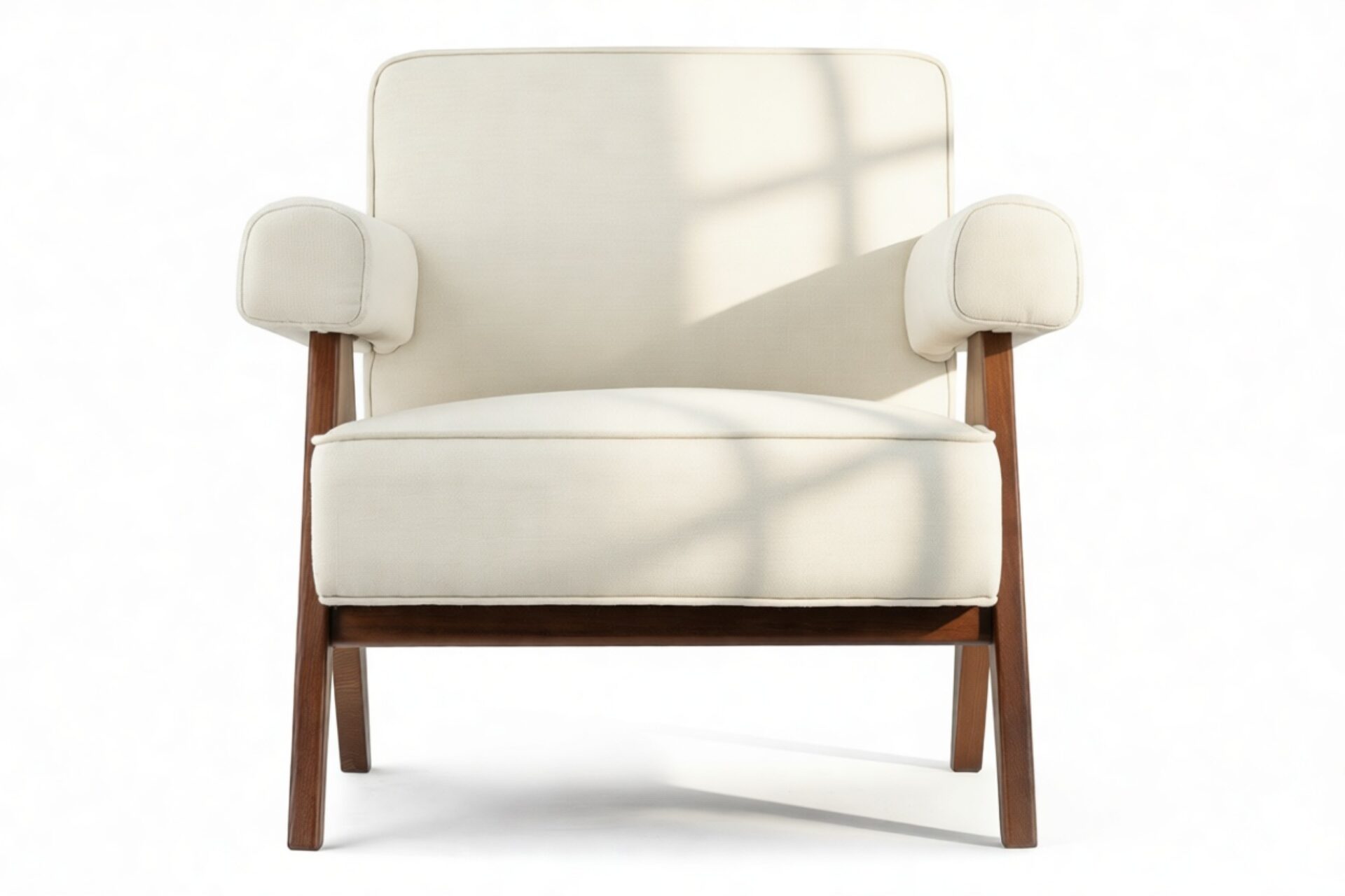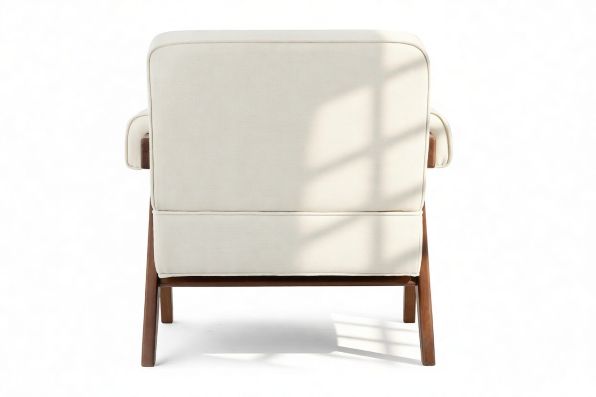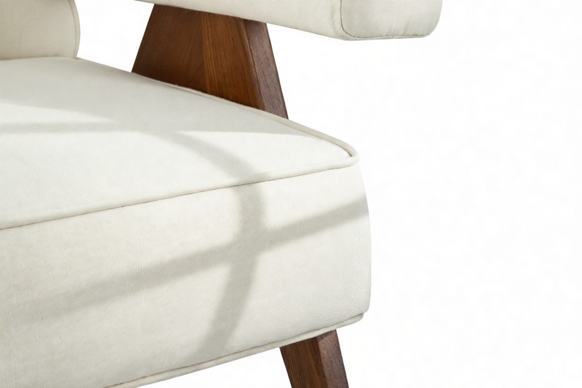 Introducing the iconic Pierre Jeanneret Armchair, a versatile blend of style and comfort. Its mid-century modern design with sleek lines and natural shapes enhances contemporary, minimalist, or eclectic spaces. Crafted with attention to detail, the Armando Armchair features a durable solid wood frame in Cream Linen, introducing organic beauty to any setting. Experience exceptional comfort and support with its ergonomic design.