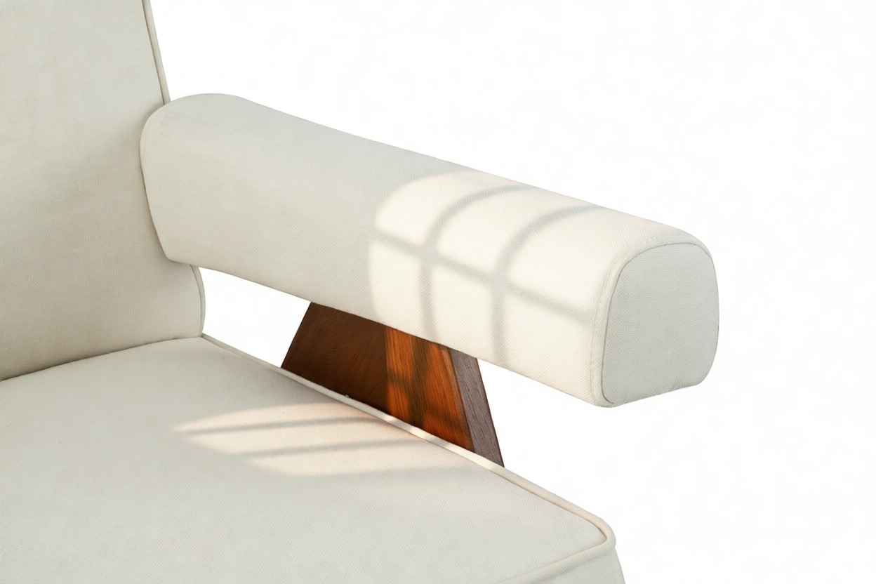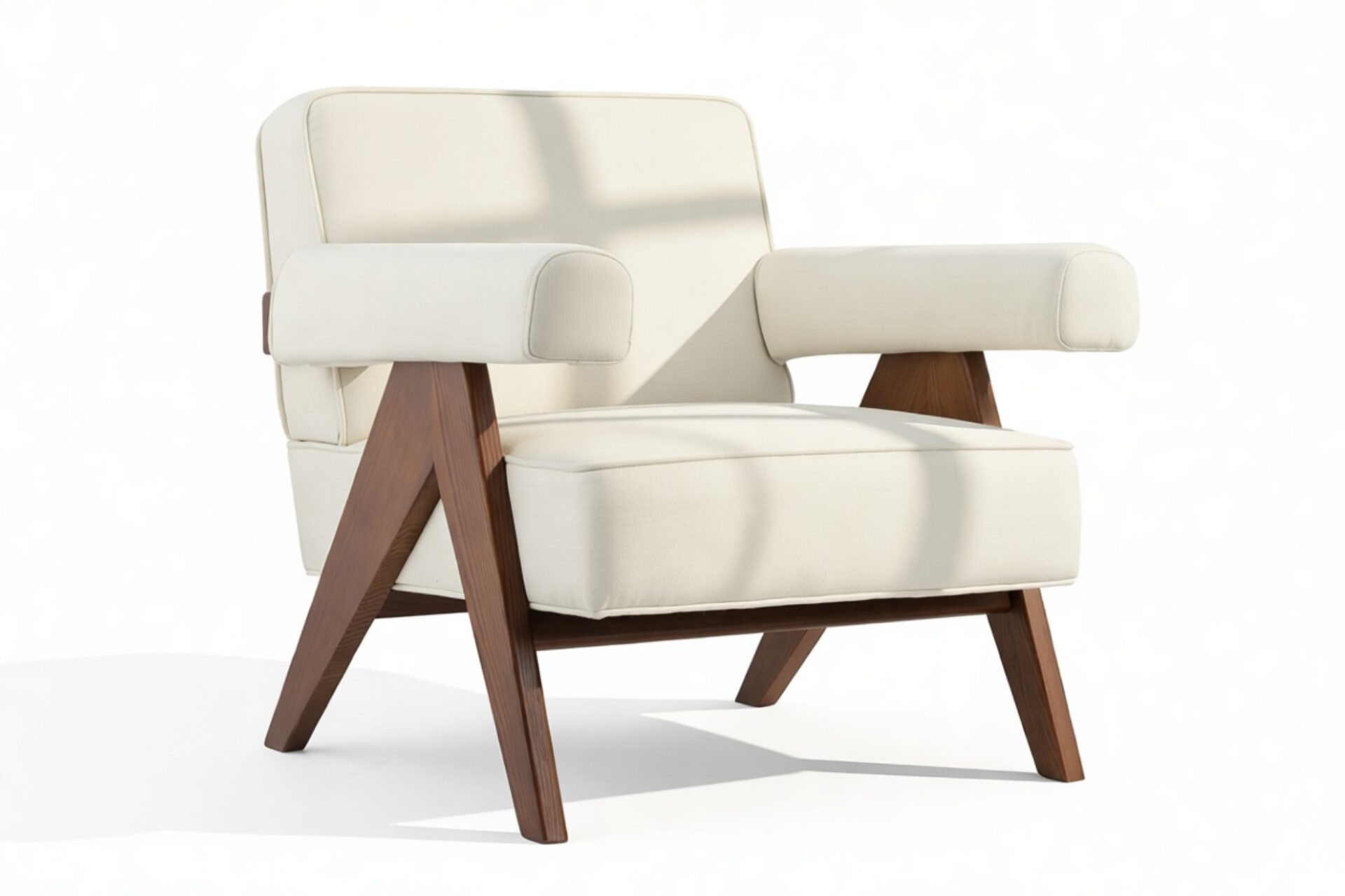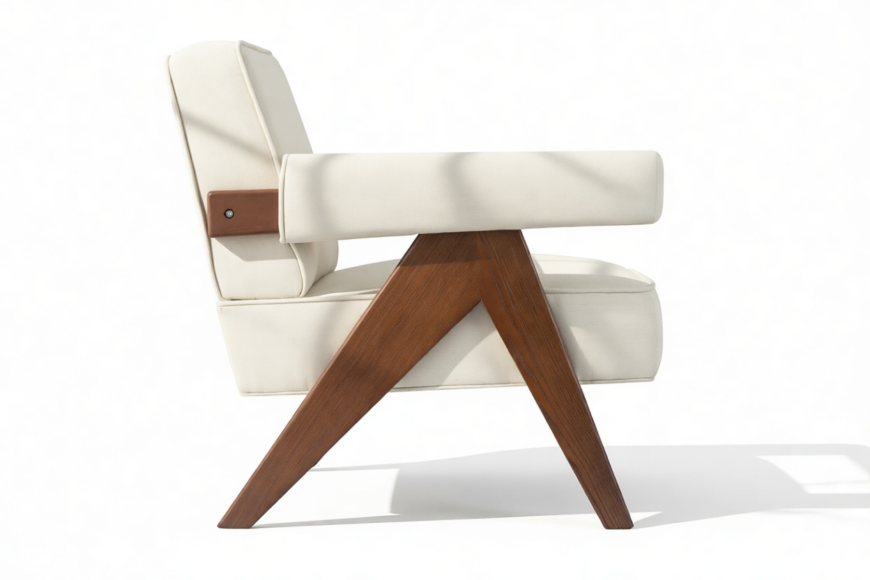 Introducing the iconic Pierre Jeanneret Armchair, a versatile blend of style and comfort. Its mid-century modern design with sleek lines and natural shapes enhances contemporary, minimalist, or eclectic spaces. Crafted with attention to detail, the Armando Armchair features a durable solid wood frame in Cream Linen, introducing organic beauty to any setting. Experience exceptional comfort and support with its ergonomic design.