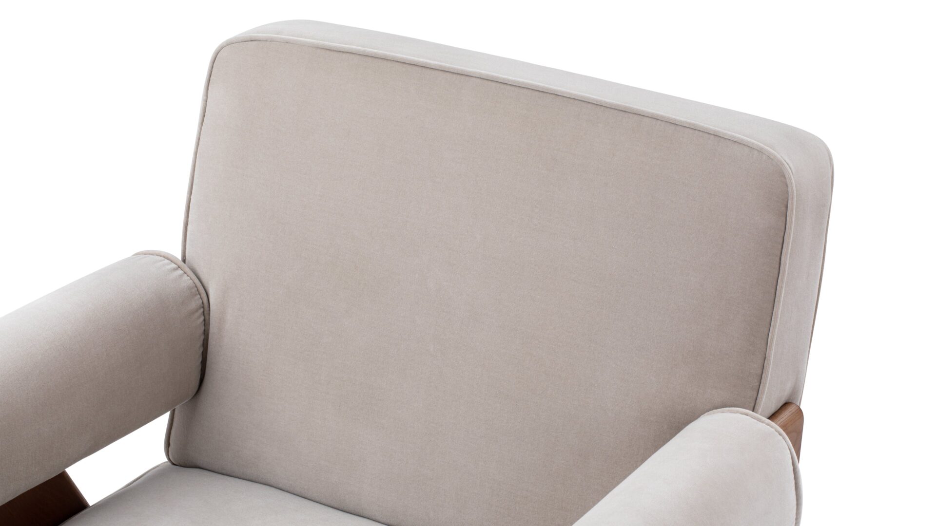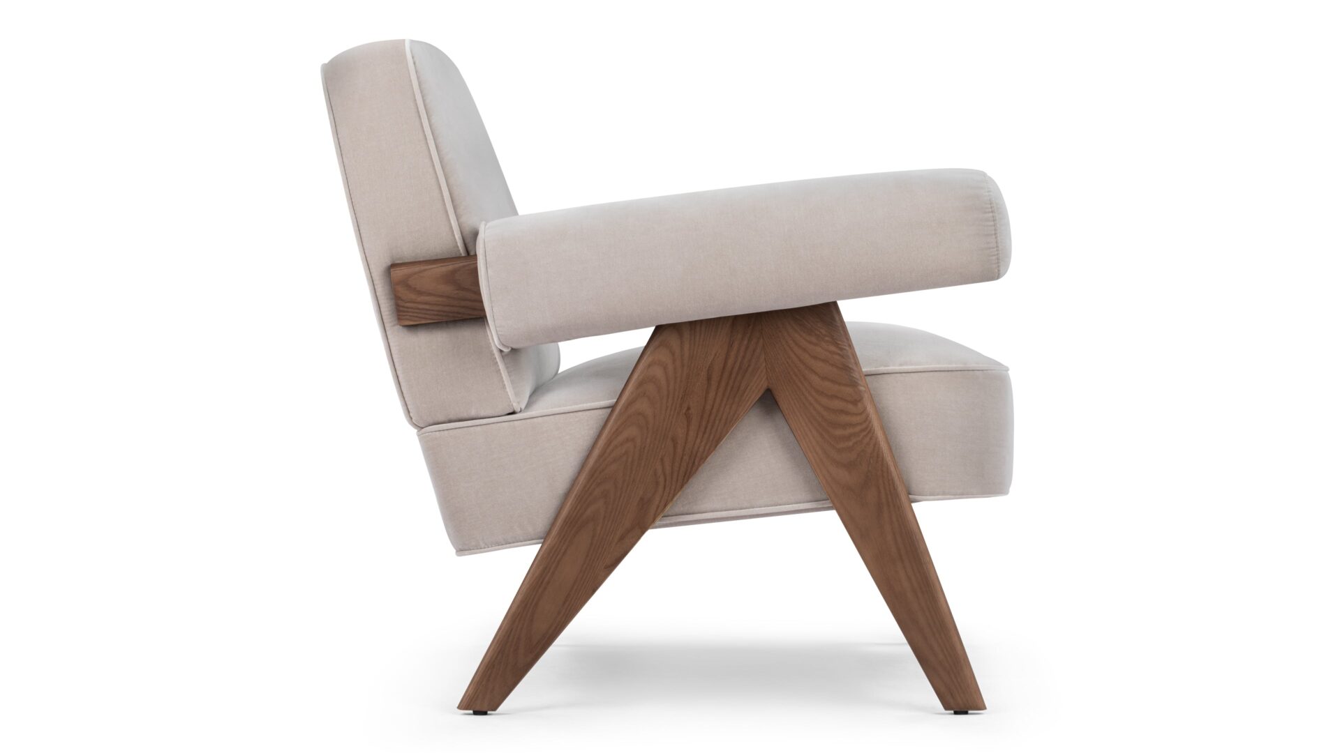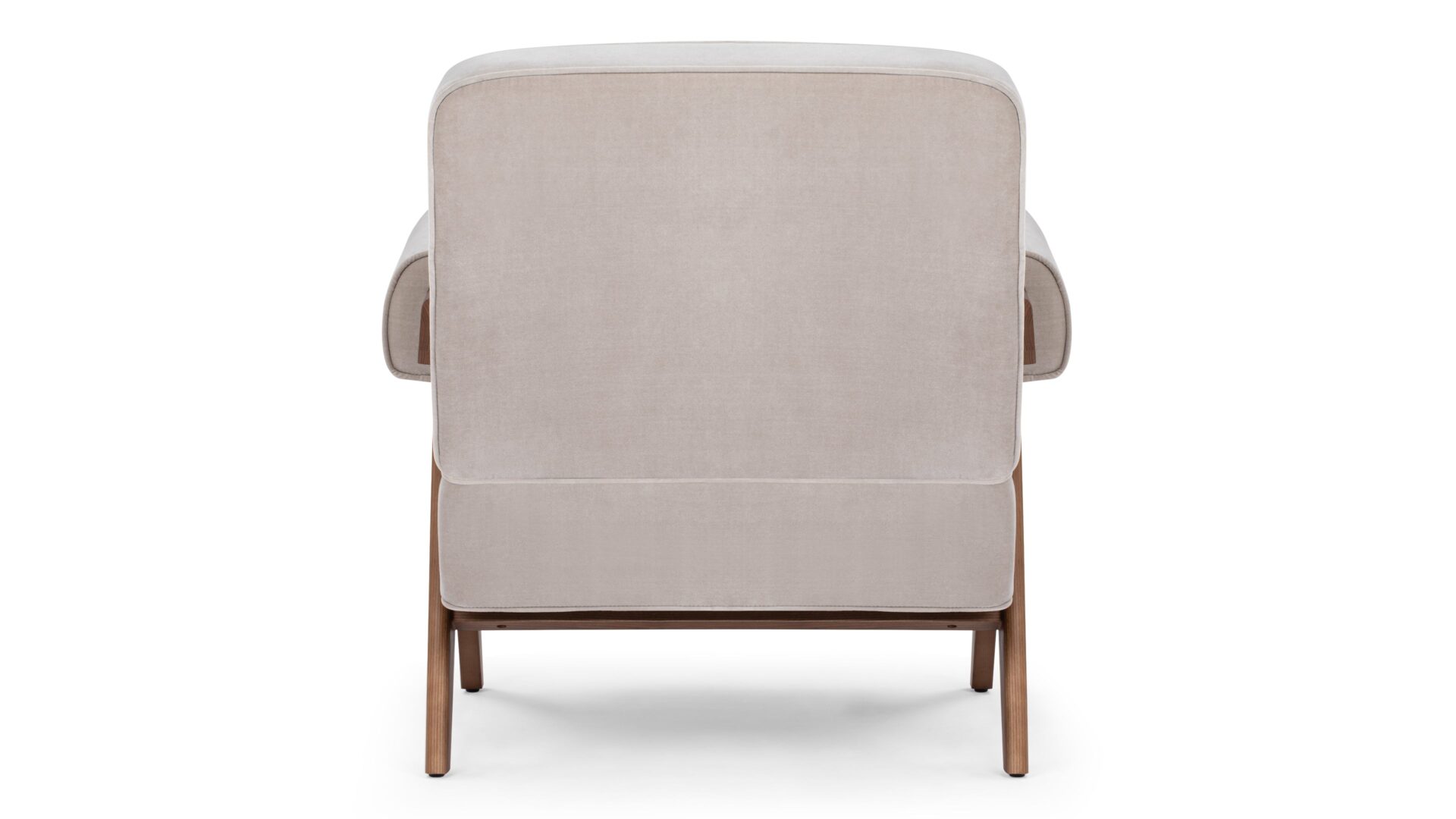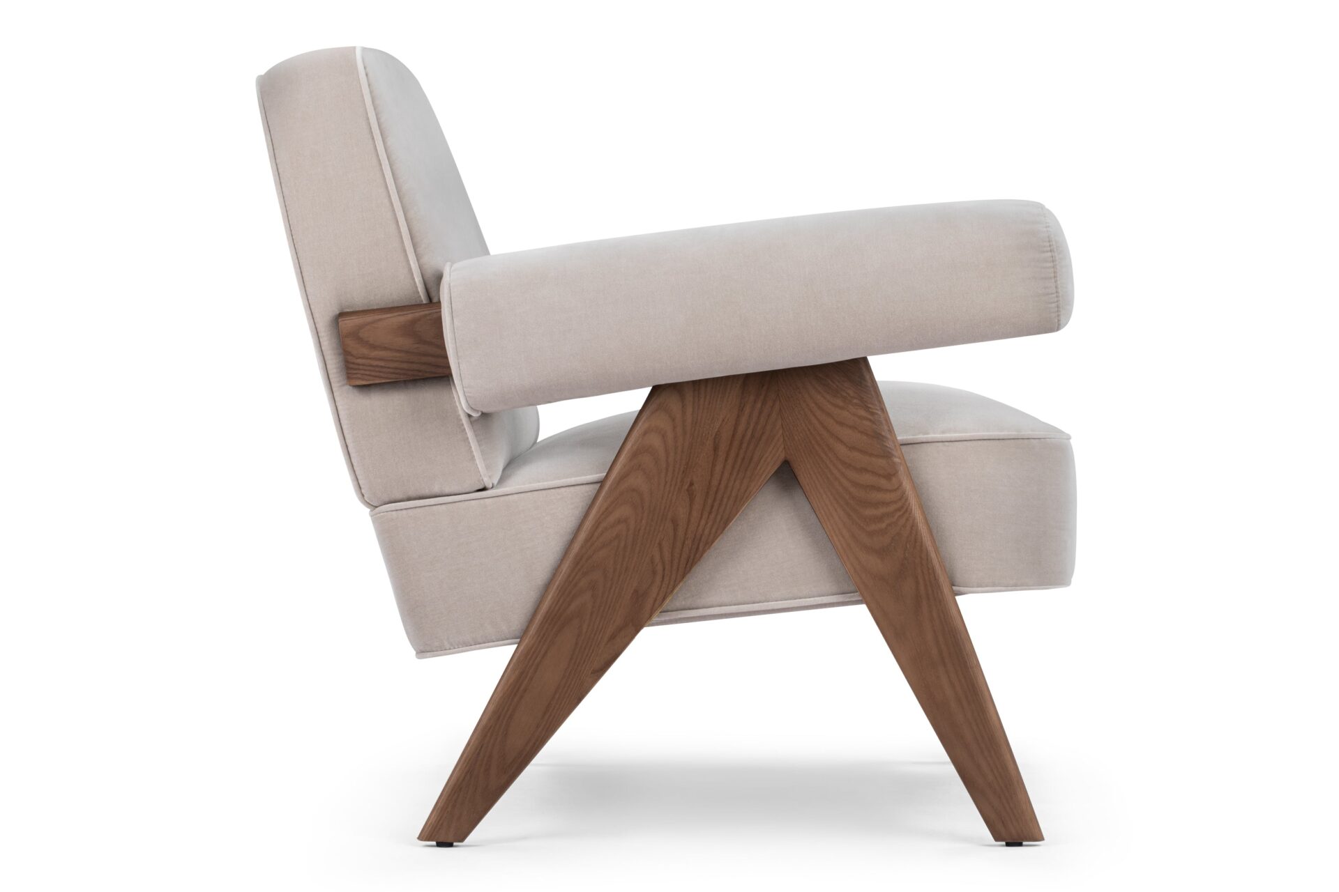 Discover the iconic Pierre Jeanneret Armchair, a versatile piece combining style and comfort. With its sleek lines and practical elegance, this mid-century modern chair is a perfect fit for contemporary, minimalist, or eclectic spaces. The Armando Armchair features a solid wood frame in a warm Oyster Luxe velvet finish, exuding timeless beauty and durability.