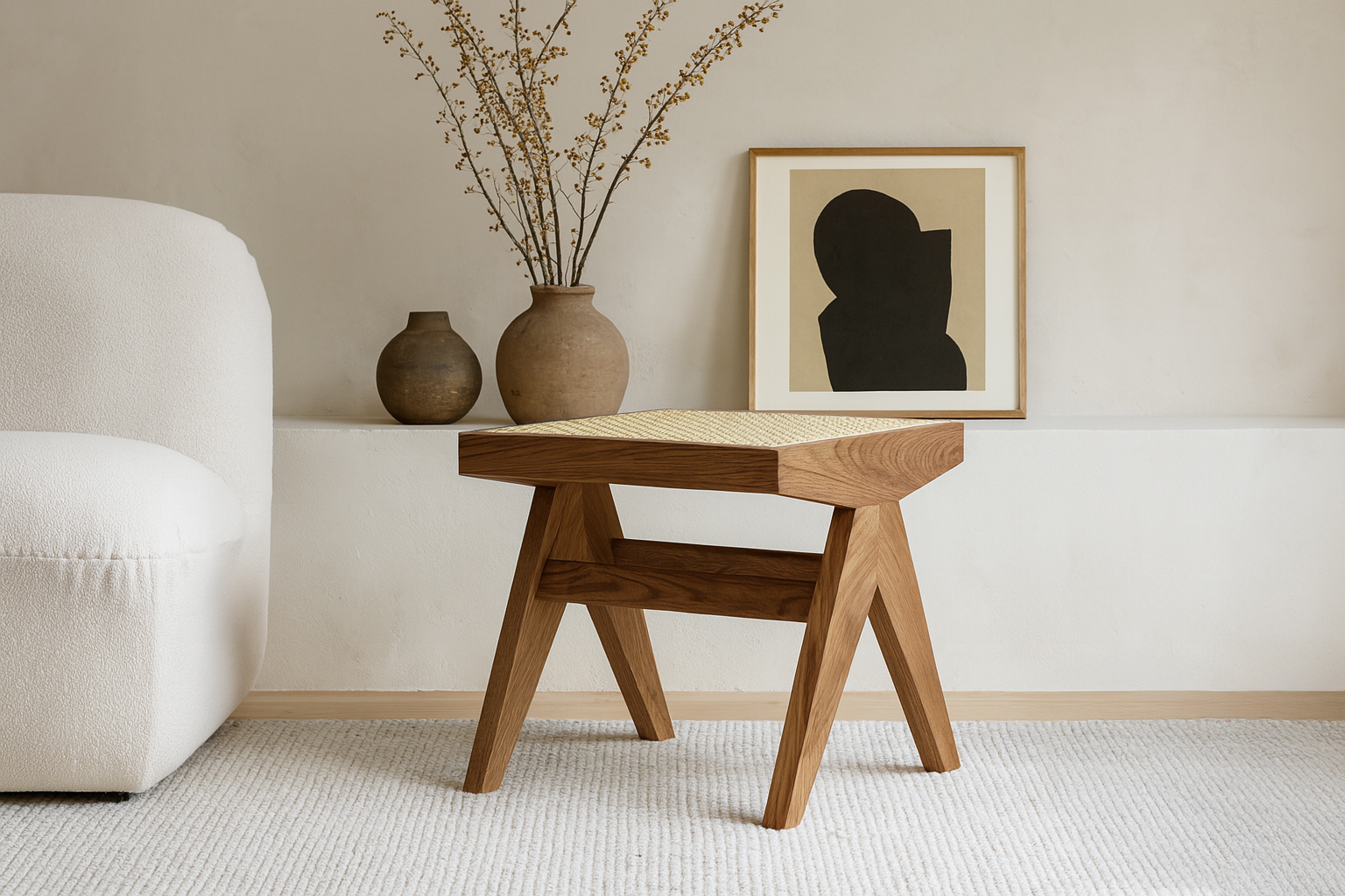 Discover the practicality and versatility that the Pierre Jeanneret Stool has to offer. Its elegant aesthetics and clean, uncluttered design make it a seamless addition to a range of interior styles, including mid-century modern, contemporary, and minimalist spaces.