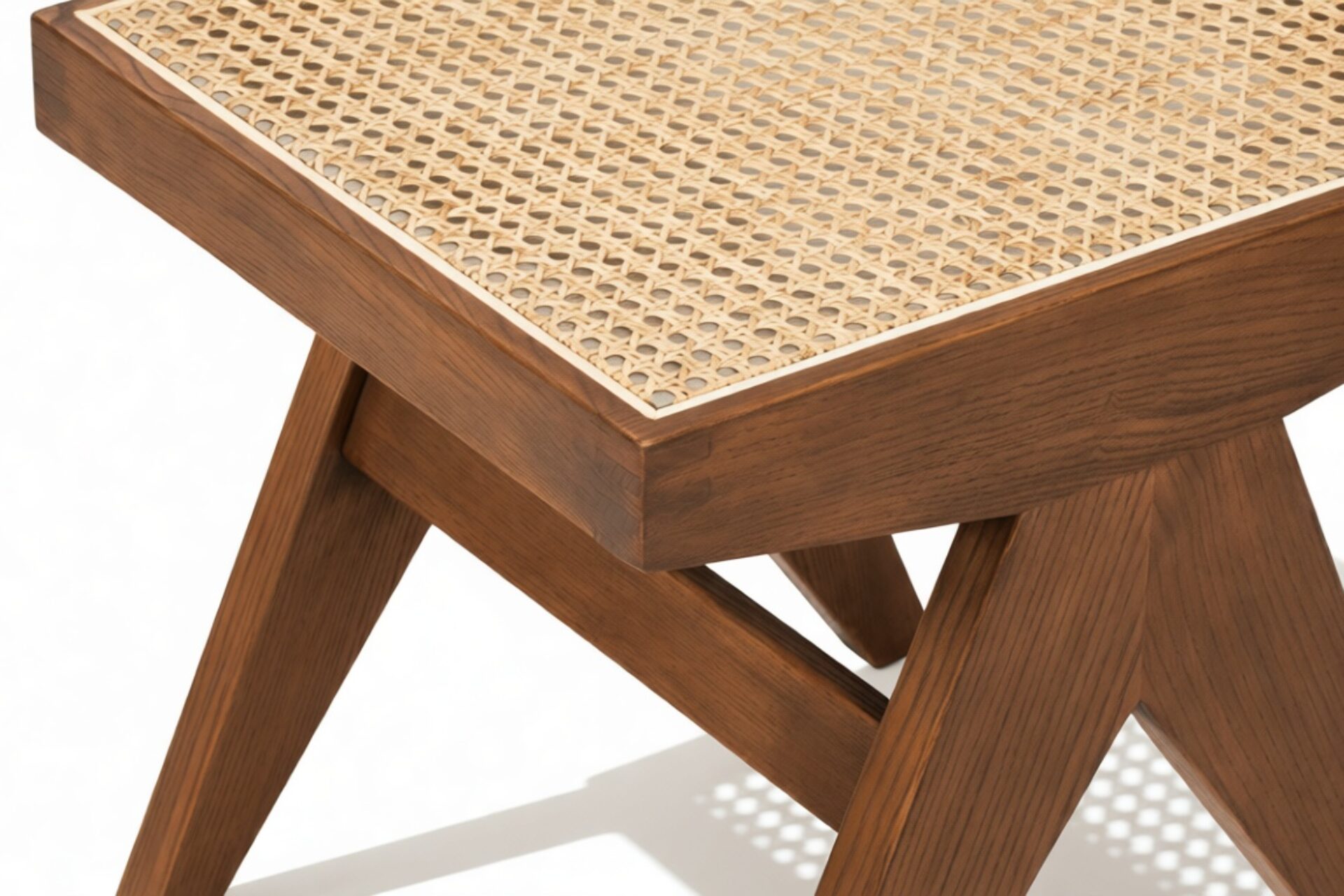 Experience the exquisite craftsmanship of the Pierre Jeanneret Stool, showcasing meticulous attention to detail and unwavering dedication to quality. Built with solid wood for lasting durability, this stool boasts thoughtful proportions and cane seats that offer a perfect balance of comfort and aesthetic charm.