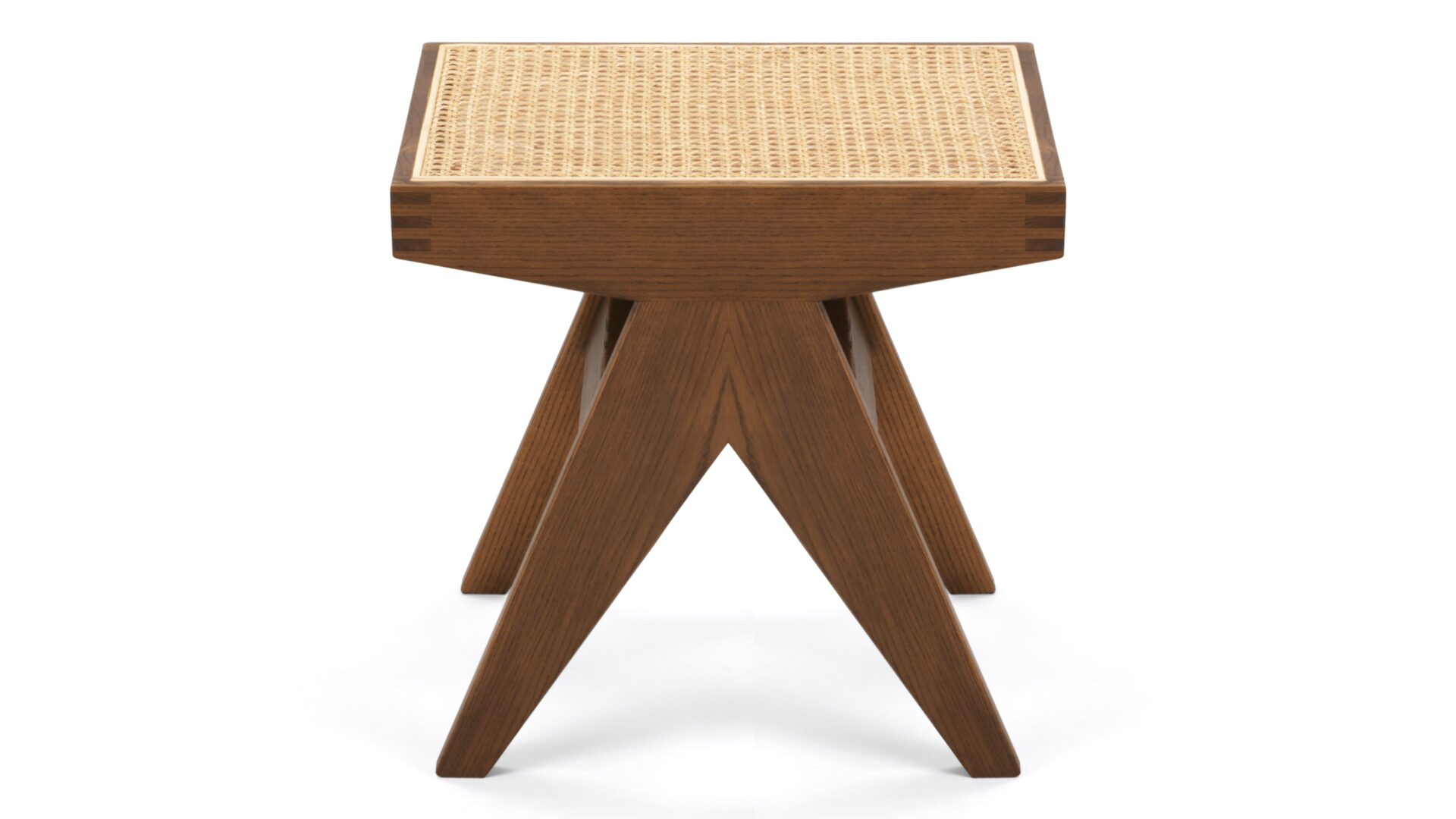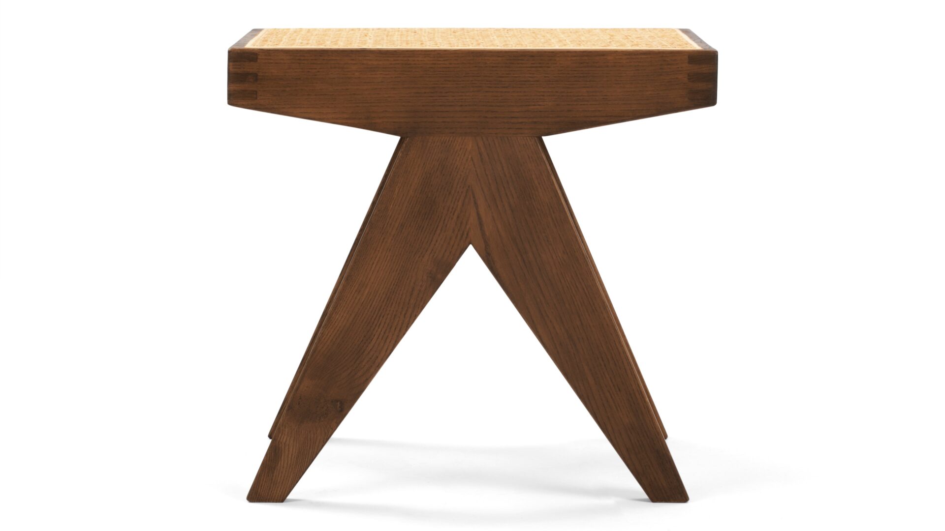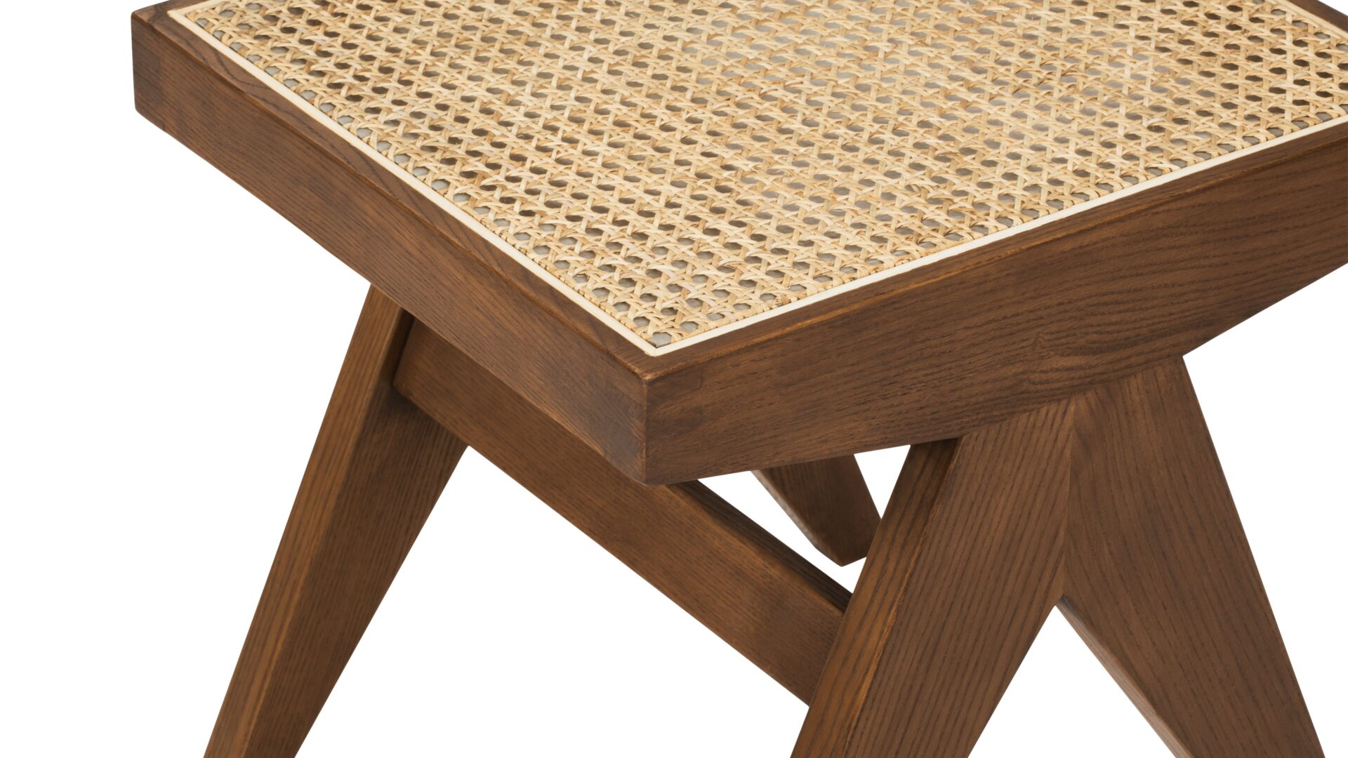 Experience the exquisite craftsmanship of the Pierre Jeanneret Stool, showcasing meticulous attention to detail and unwavering dedication to quality. Built with solid wood for lasting durability, this stool boasts thoughtful proportions and cane seats that offer a perfect balance of comfort and aesthetic charm.