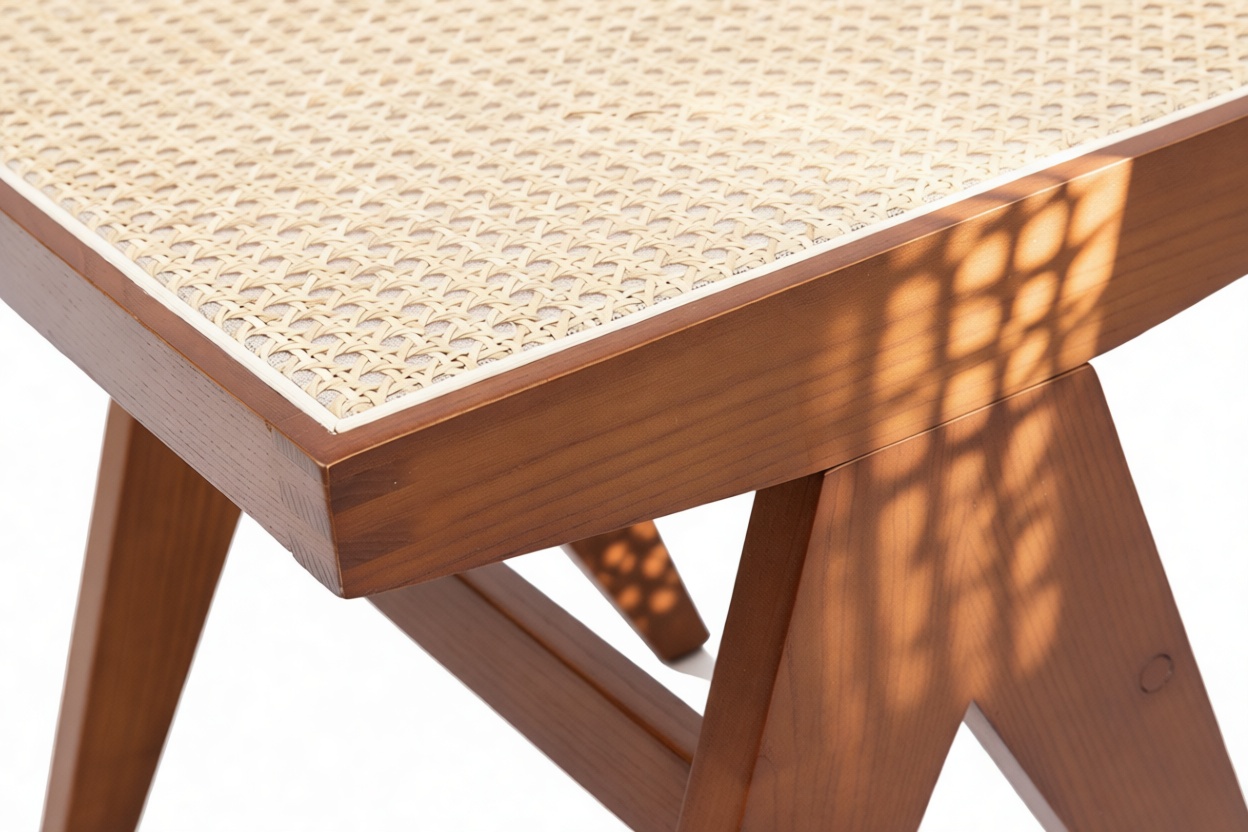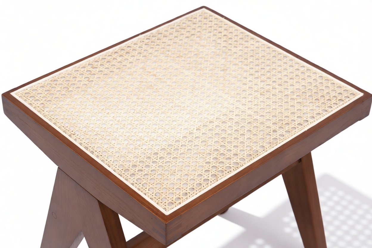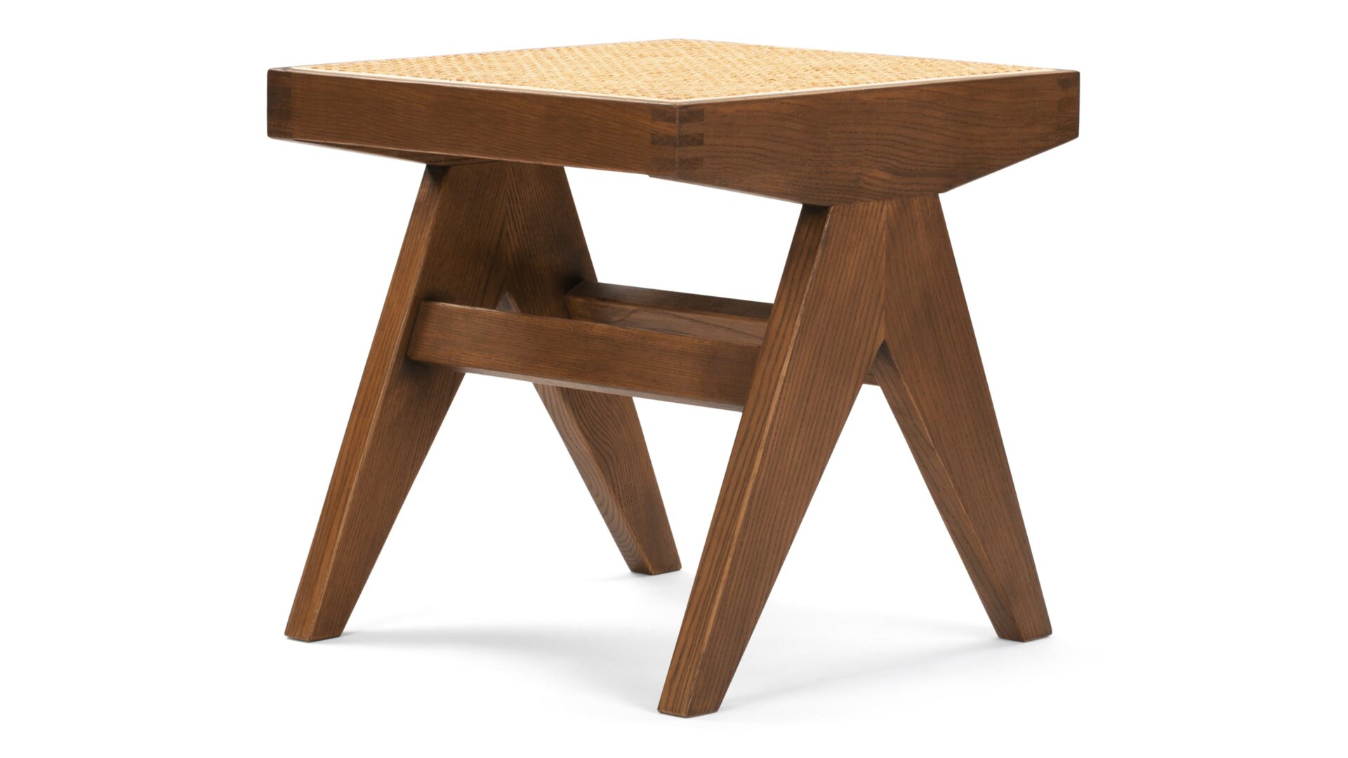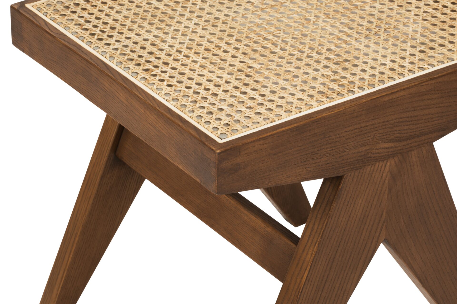 Experience the exquisite craftsmanship of the Pierre Jeanneret Stool, showcasing meticulous attention to detail and unwavering dedication to quality. Built with solid wood for lasting durability, this stool boasts thoughtful proportions and cane seats that offer a perfect balance of comfort and aesthetic charm.
