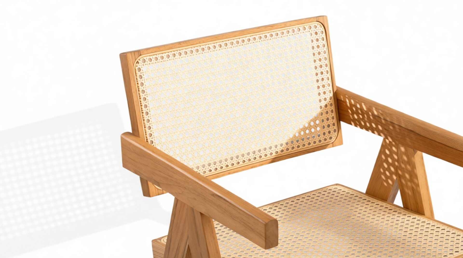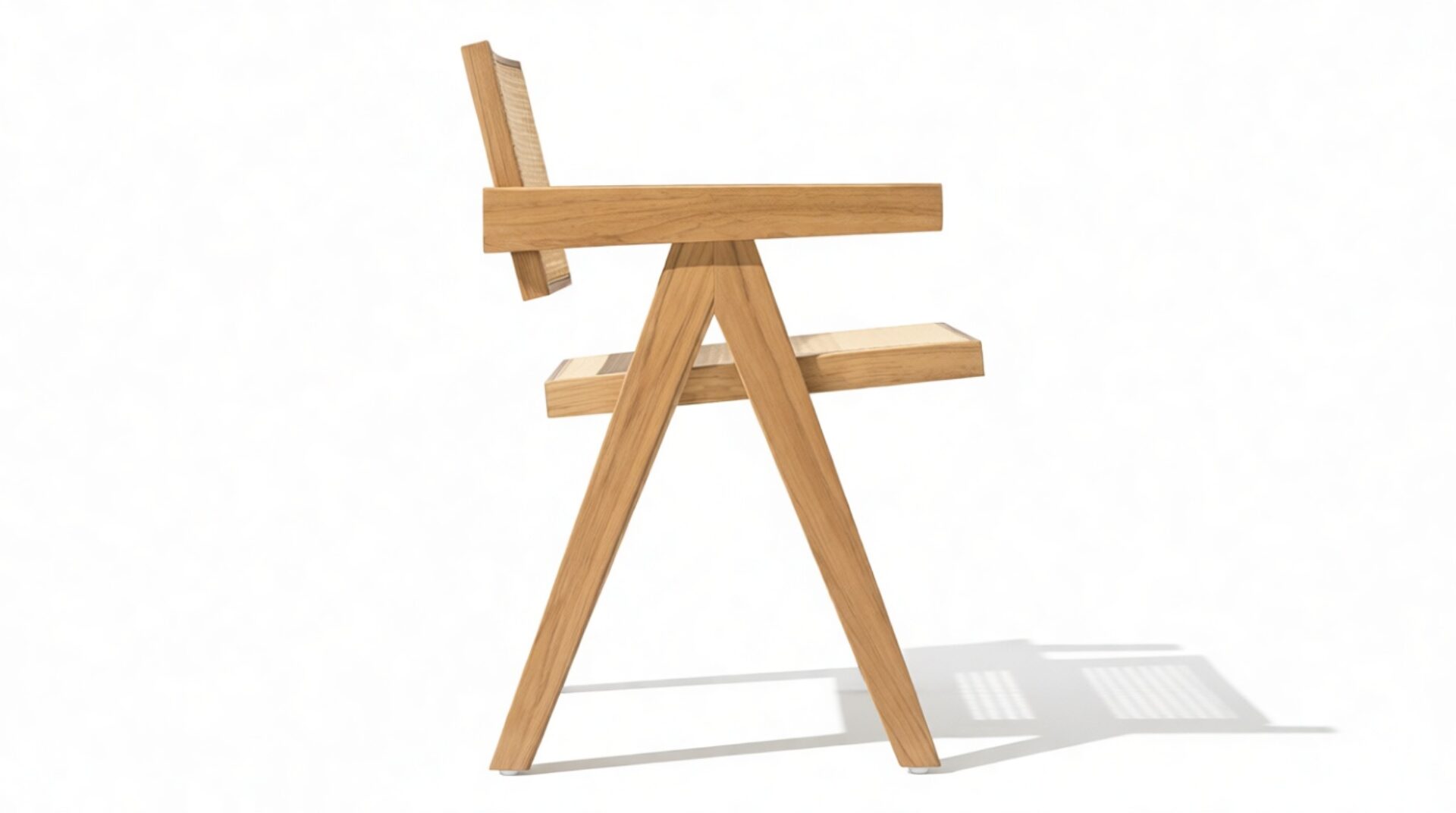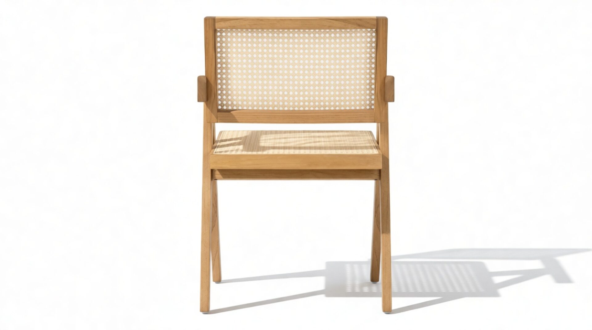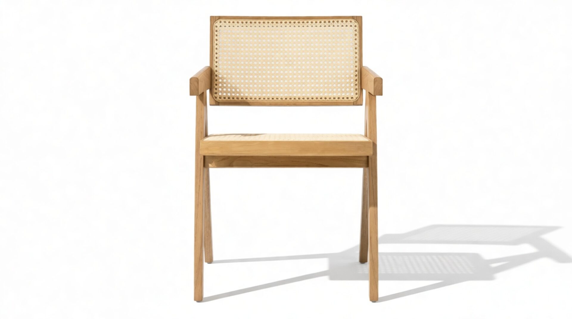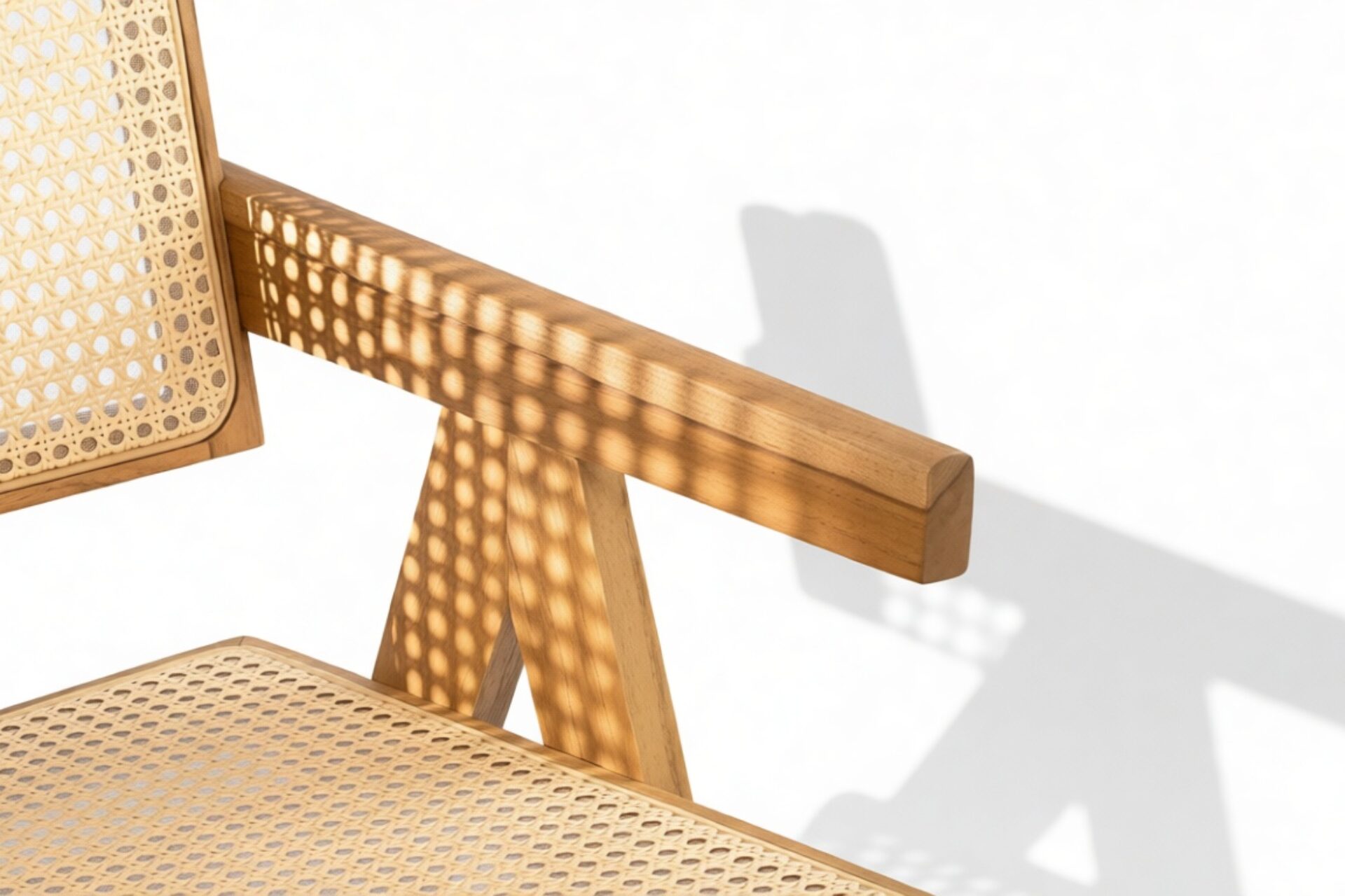 Embodying the utilitarian charm of the 1950s, the Pierre Jeanneret Outdoor Armchair combines authentic teak and resilient rattan to create a durable and stylish seating option for outdoor spaces. Crafted from natural teak with weather-resistant rattan, this chair offers breathable support and a sophisticated mid-century modern design that gracefully ages over time, perfect for outdoor dining and relaxation.