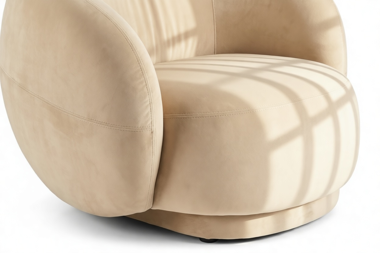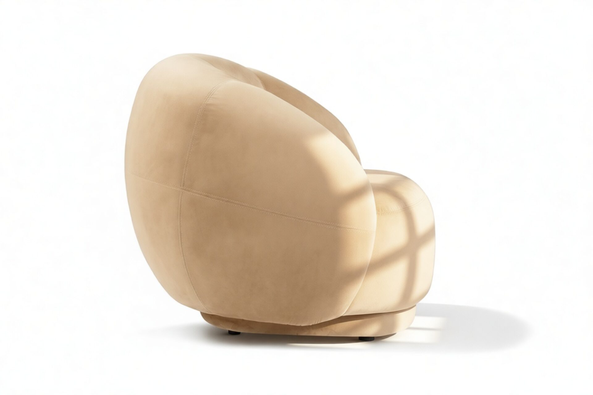 Introducing the Rapture Armchair, a piece that embraces you in its soft, enveloping shape, making it the perfect addition to contemporary living areas, cozy reading corners, and chic bedrooms.
