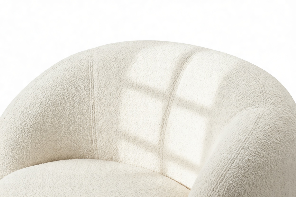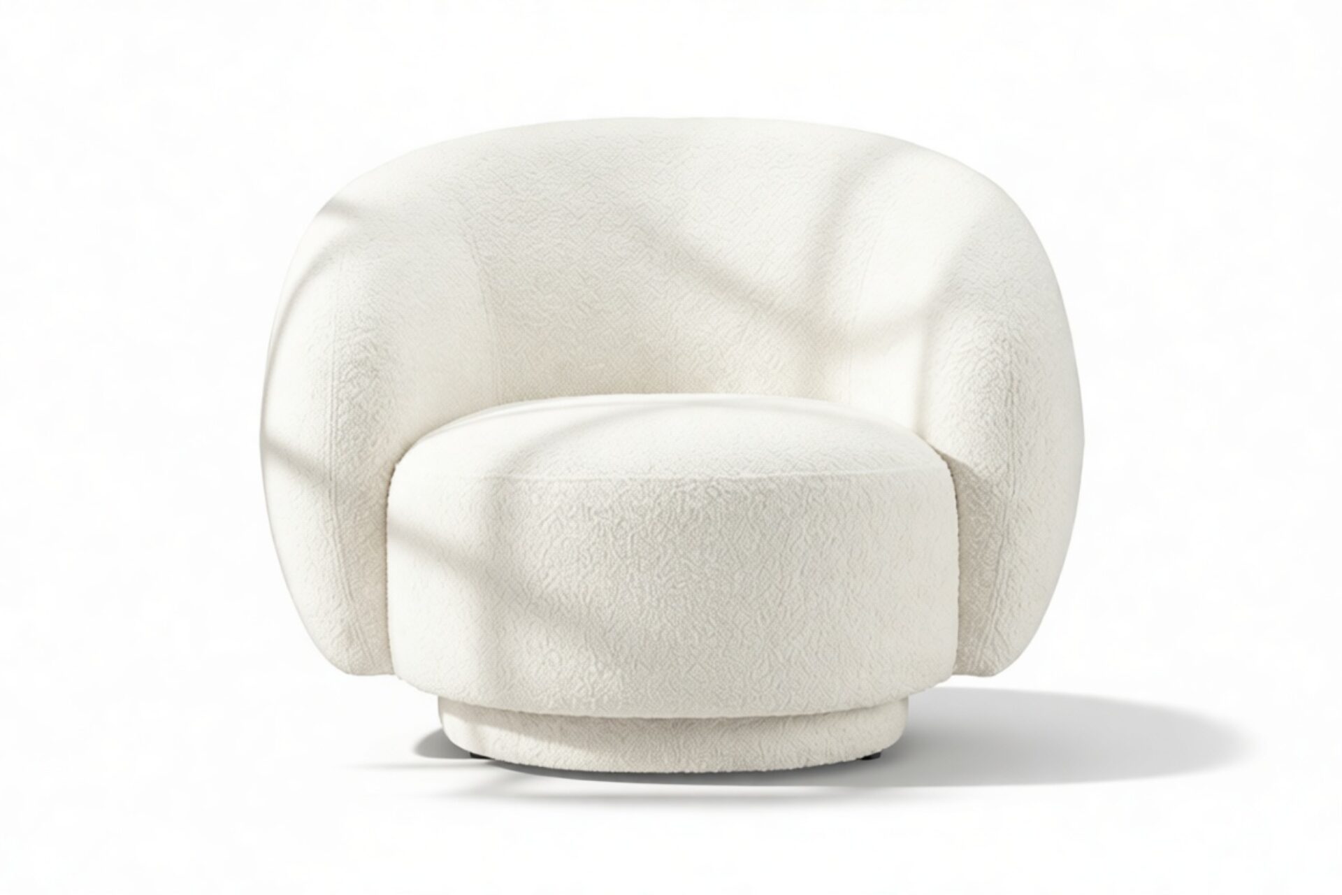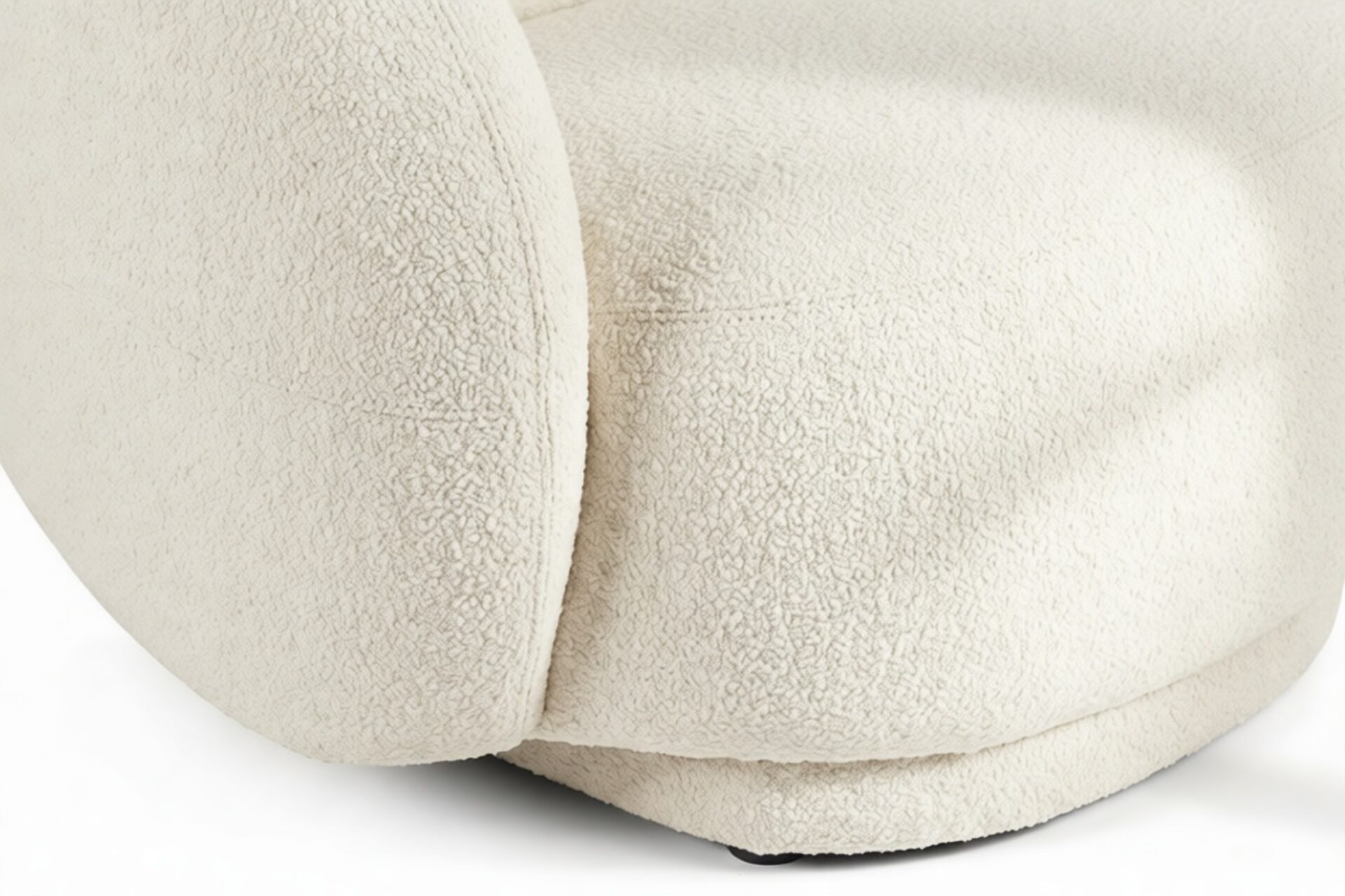 Explore the captivating allure of the Julep collection, blending graphic simplicity with a touch of whimsy for a harmonious fusion of form and function. The iconic silhouette reimagines midcentury modern design ethos with a vibrant and rejuvenated aesthetic. Embrace cozy comfort with the cocoon-like White Boucle Julep armchair, a modern classic seamlessly melding vintage charm and contemporary sophistication.