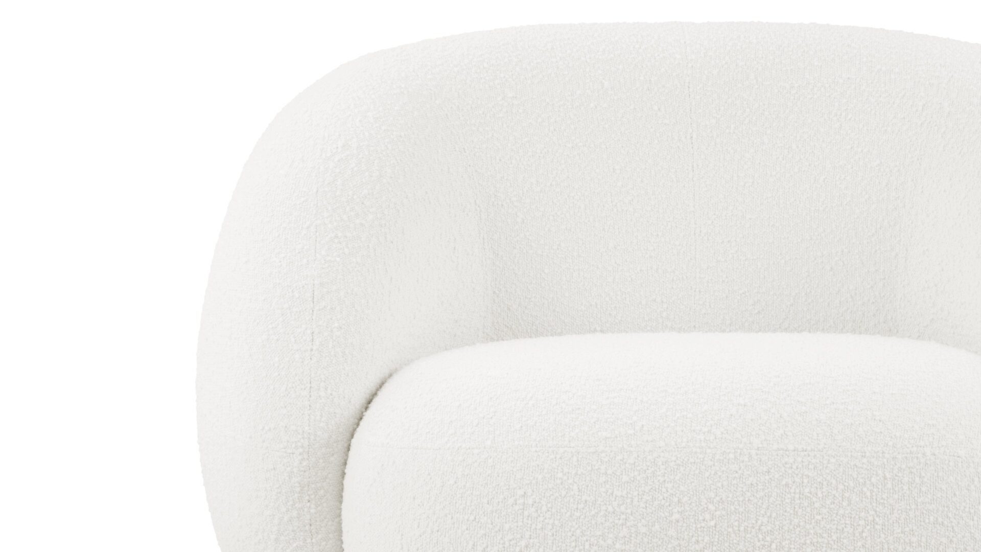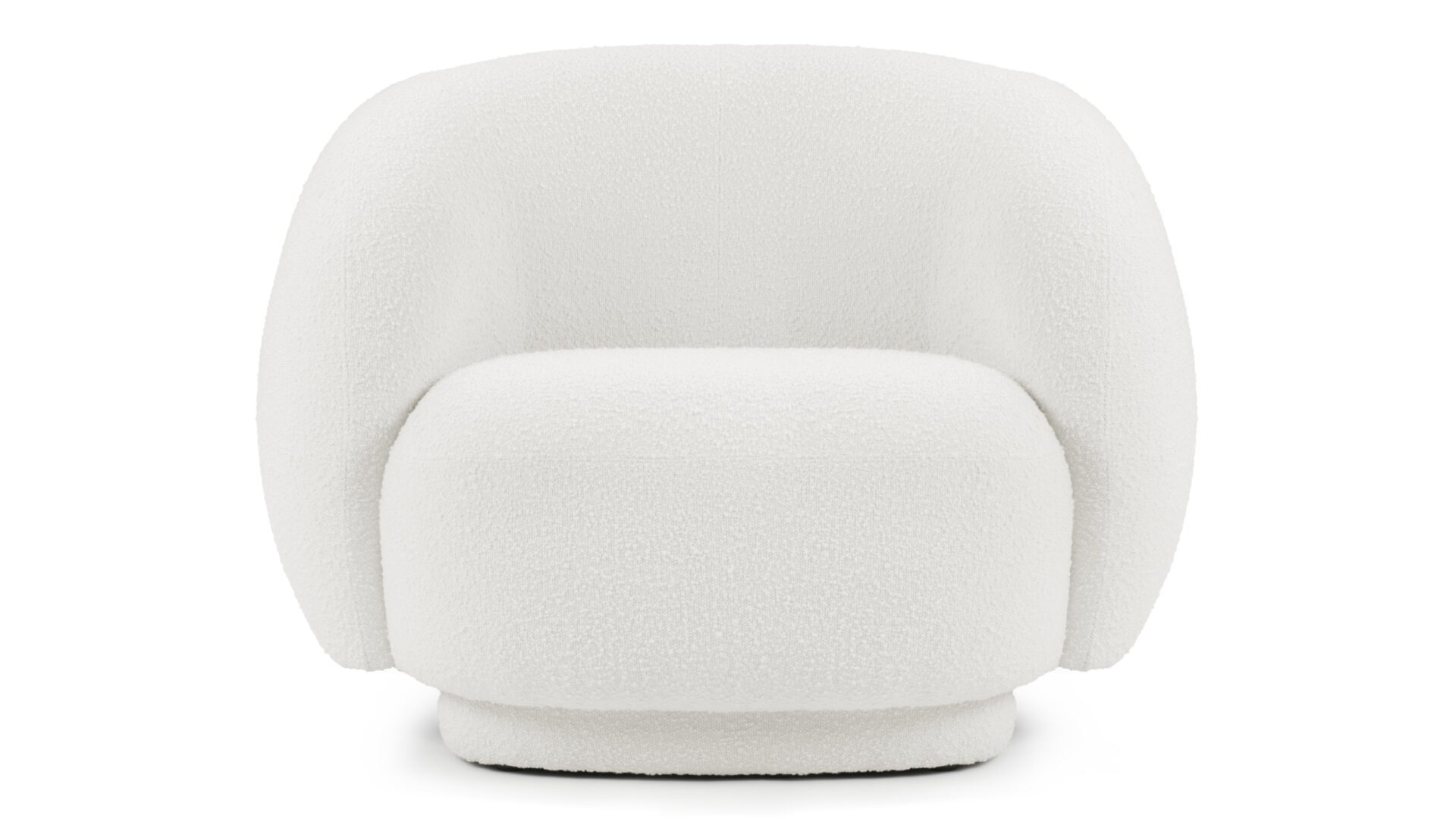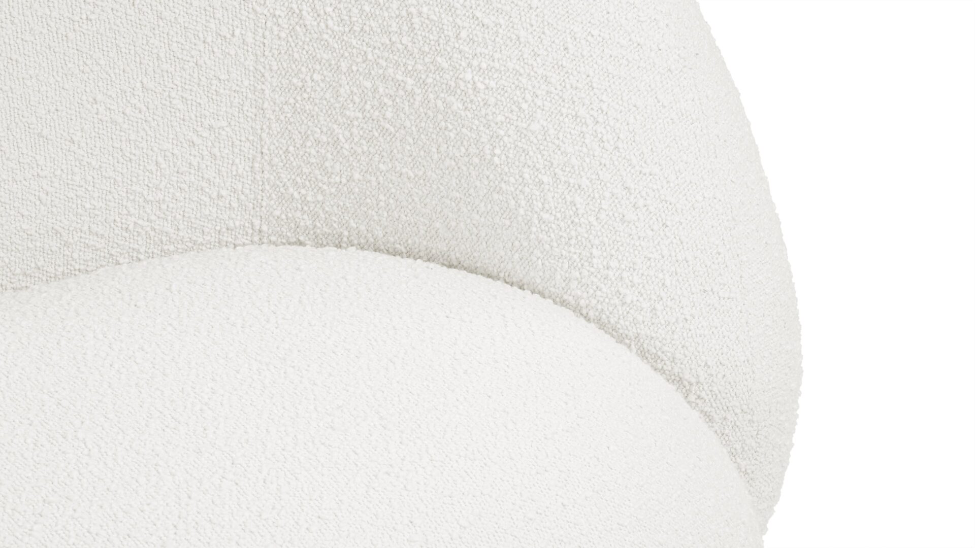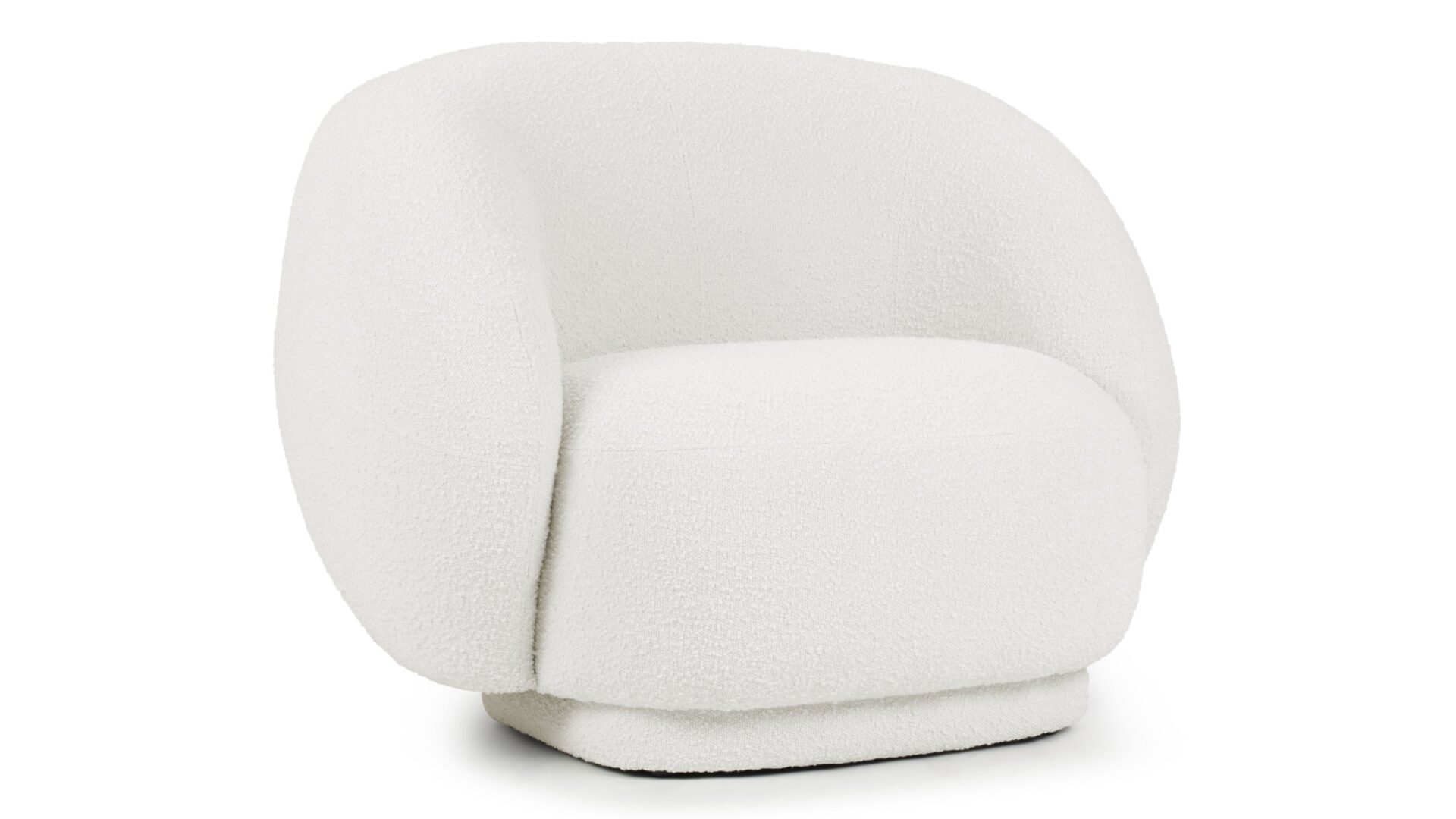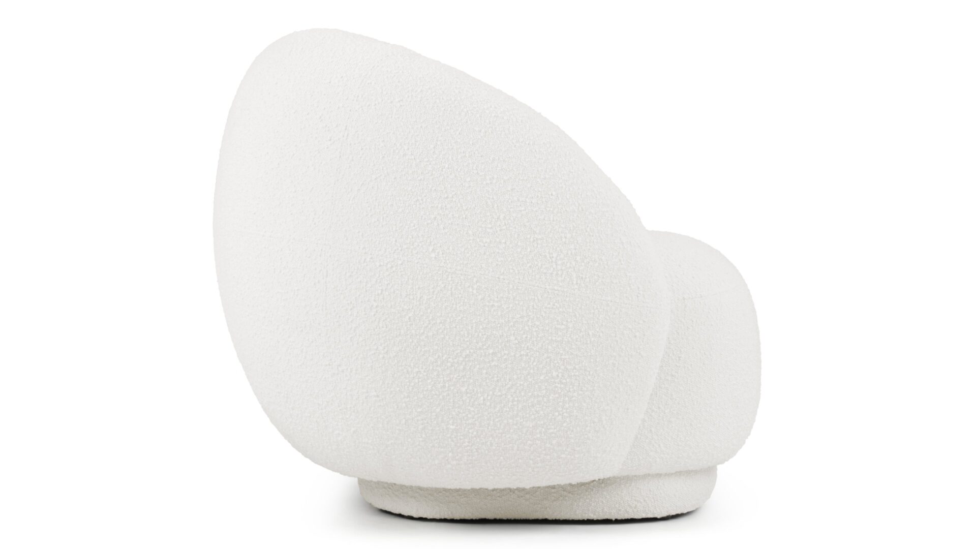 Explore the captivating allure of the Julep collection, blending graphic simplicity with a touch of whimsy for a harmonious fusion of form and function. The iconic silhouette reimagines midcentury modern design ethos with a vibrant and rejuvenated aesthetic. Embrace cozy comfort with the cocoon-like White Boucle Julep armchair, a modern classic seamlessly melding vintage charm and contemporary sophistication.