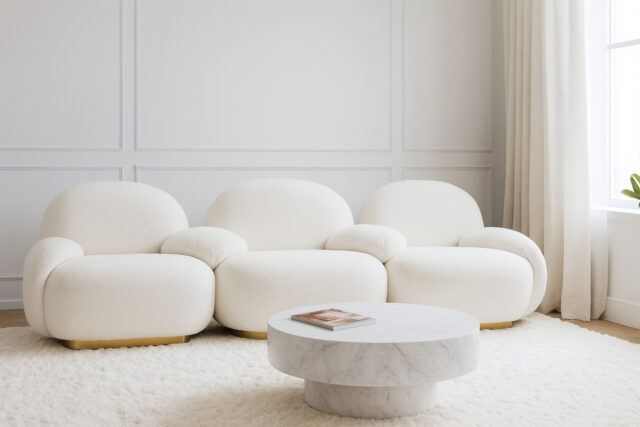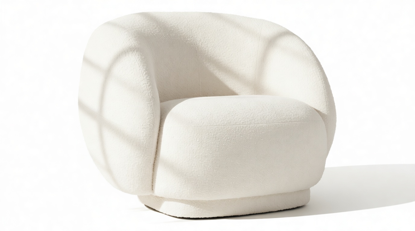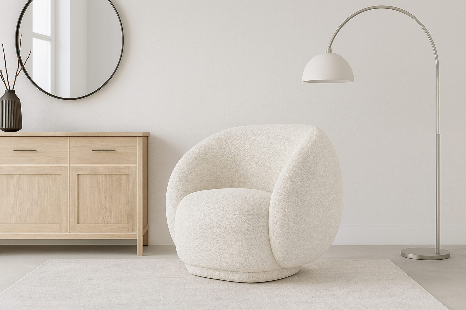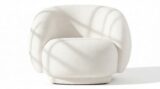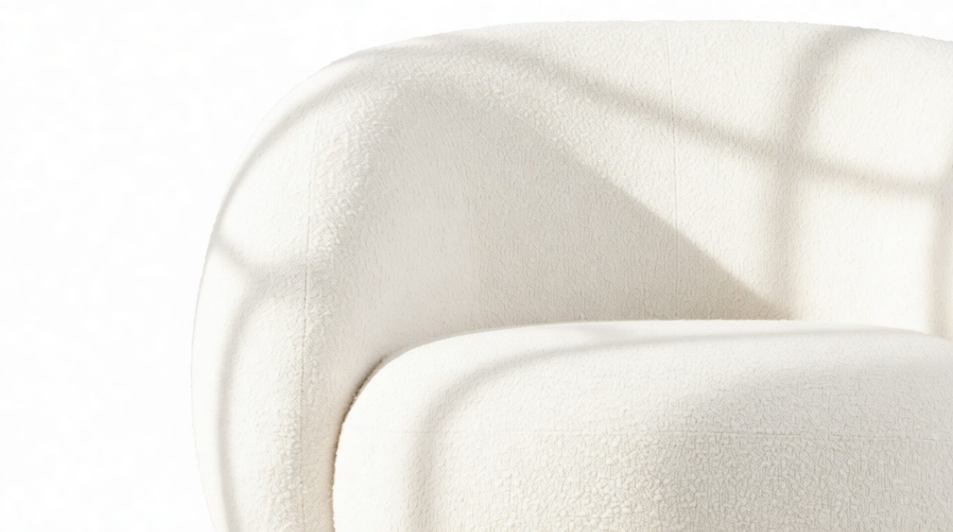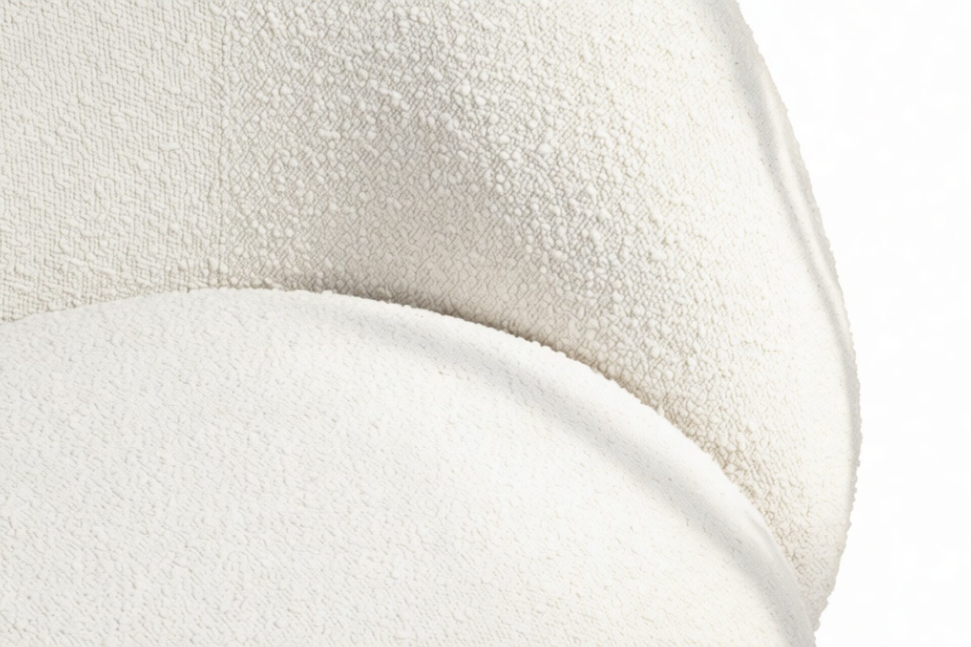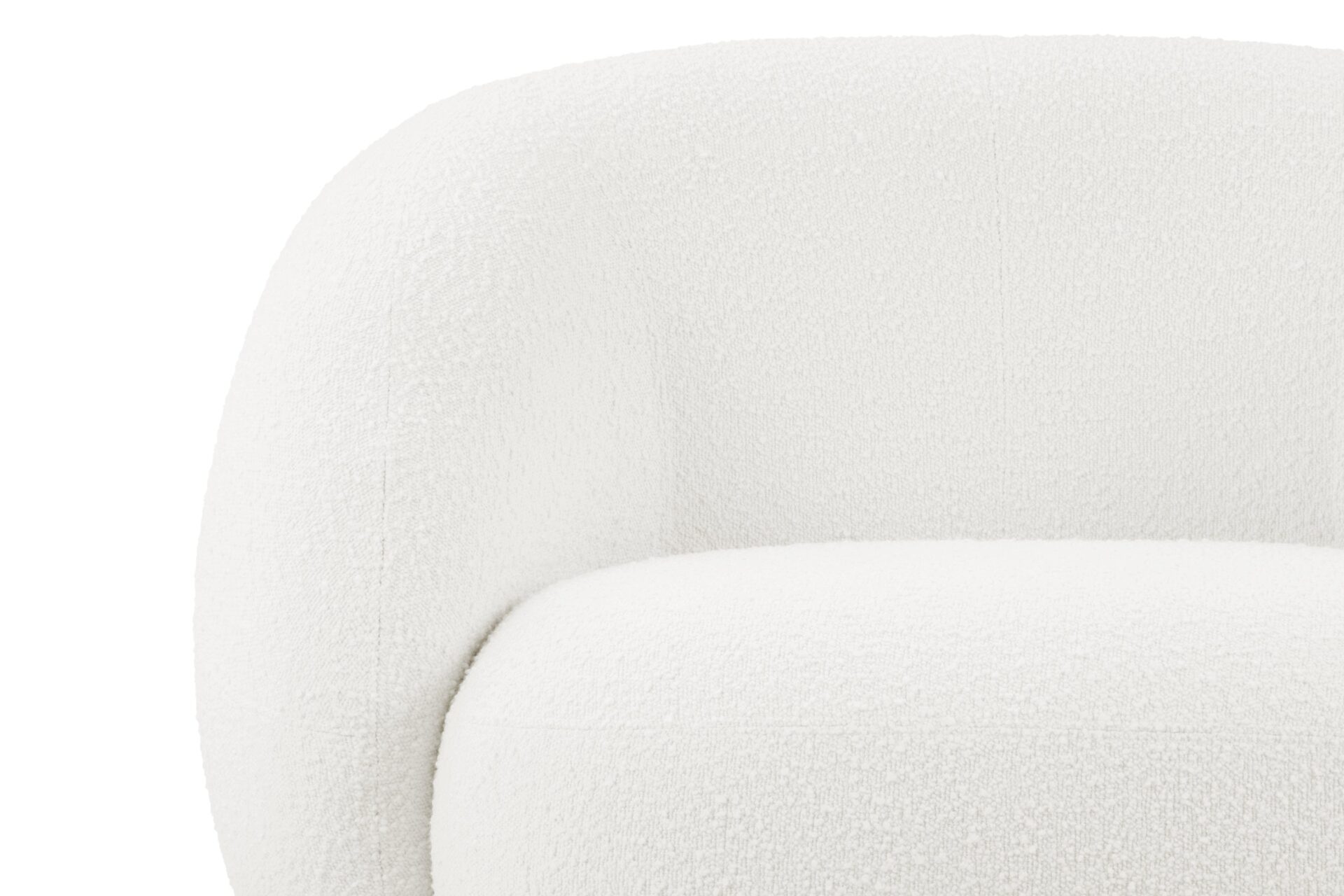 Explore the captivating allure of the Julep collection, blending graphic simplicity with a touch of whimsy for a harmonious fusion of form and function. The iconic silhouette reimagines midcentury modern design ethos with a vibrant and rejuvenated aesthetic. Embrace cozy comfort with the cocoon-like White Boucle Julep armchair, a modern classic seamlessly melding vintage charm and contemporary sophistication.