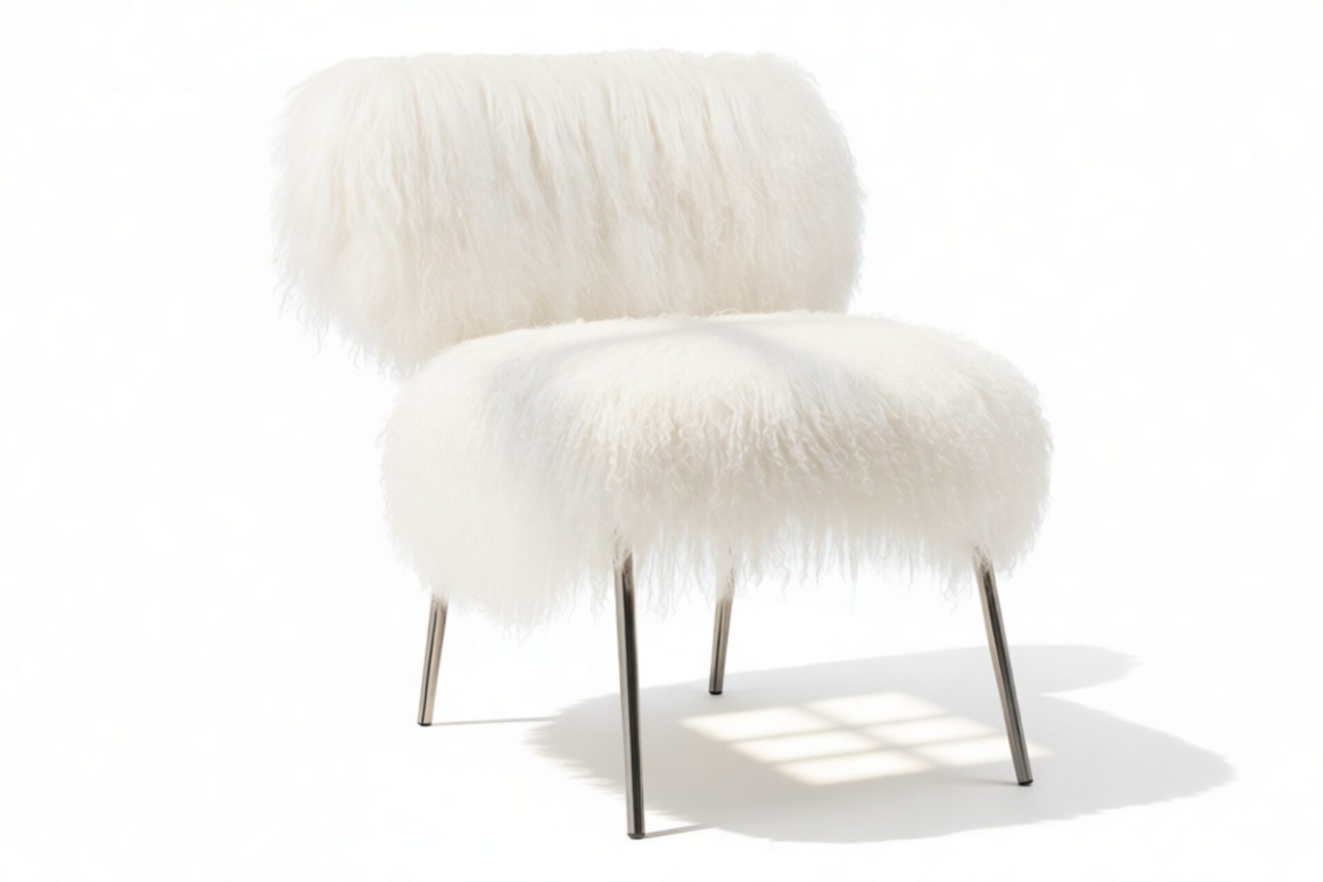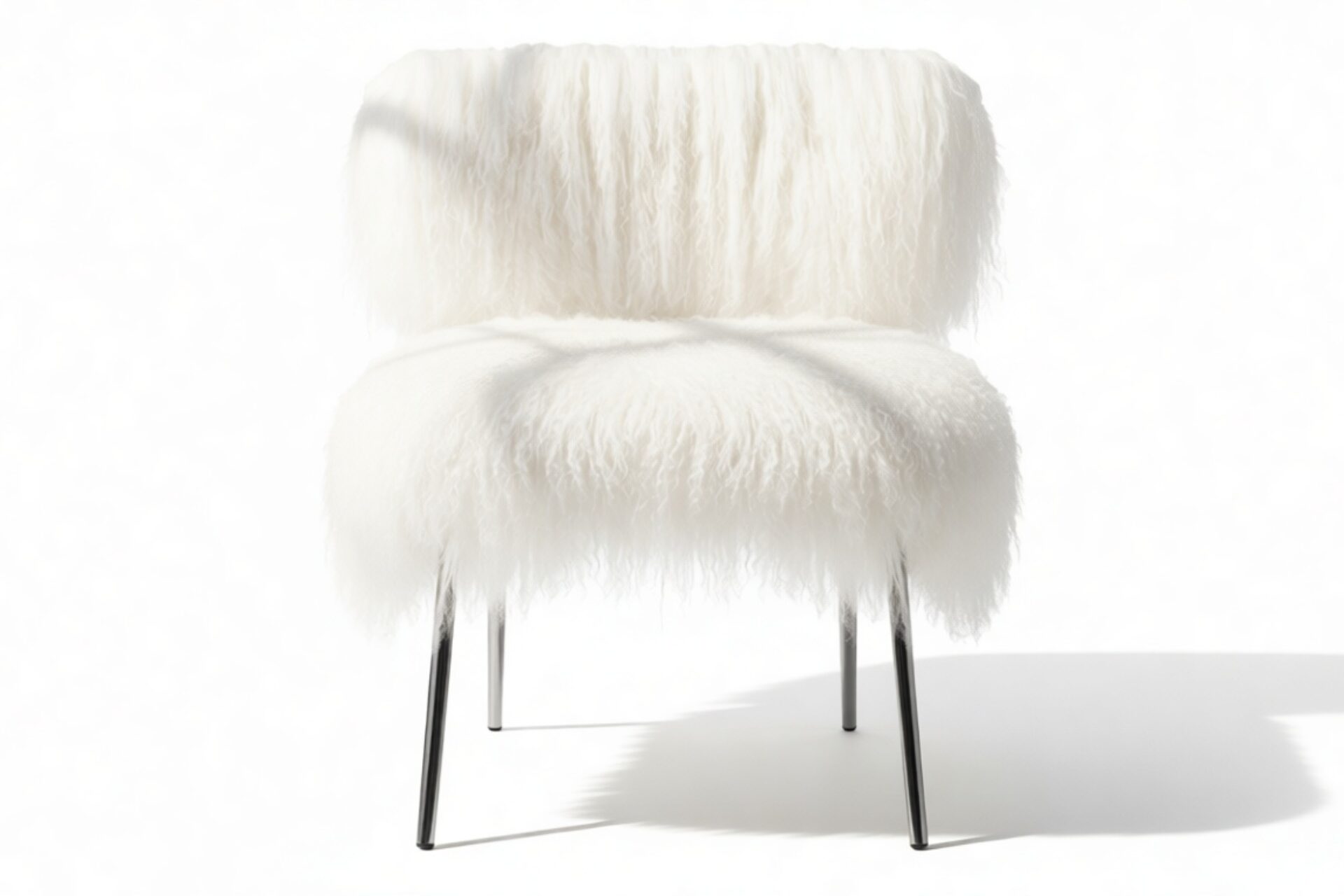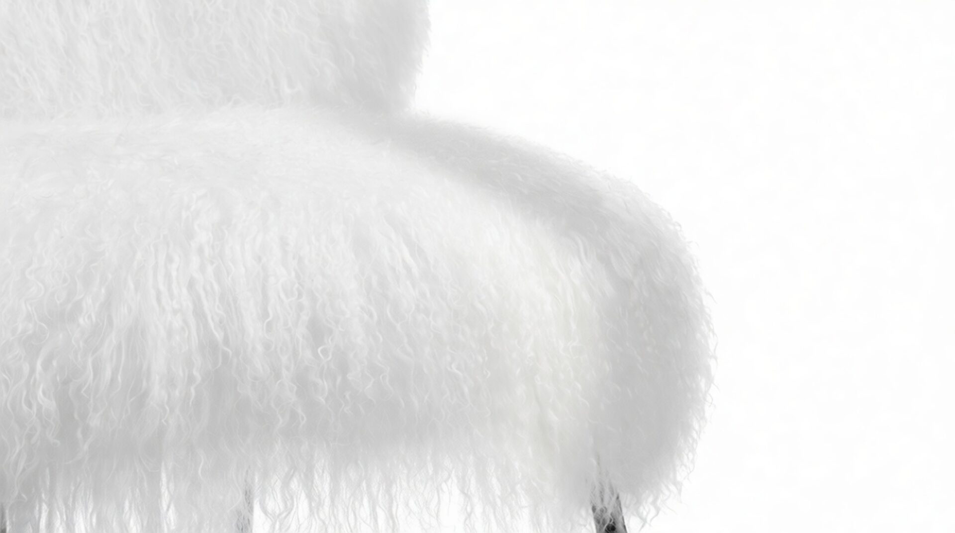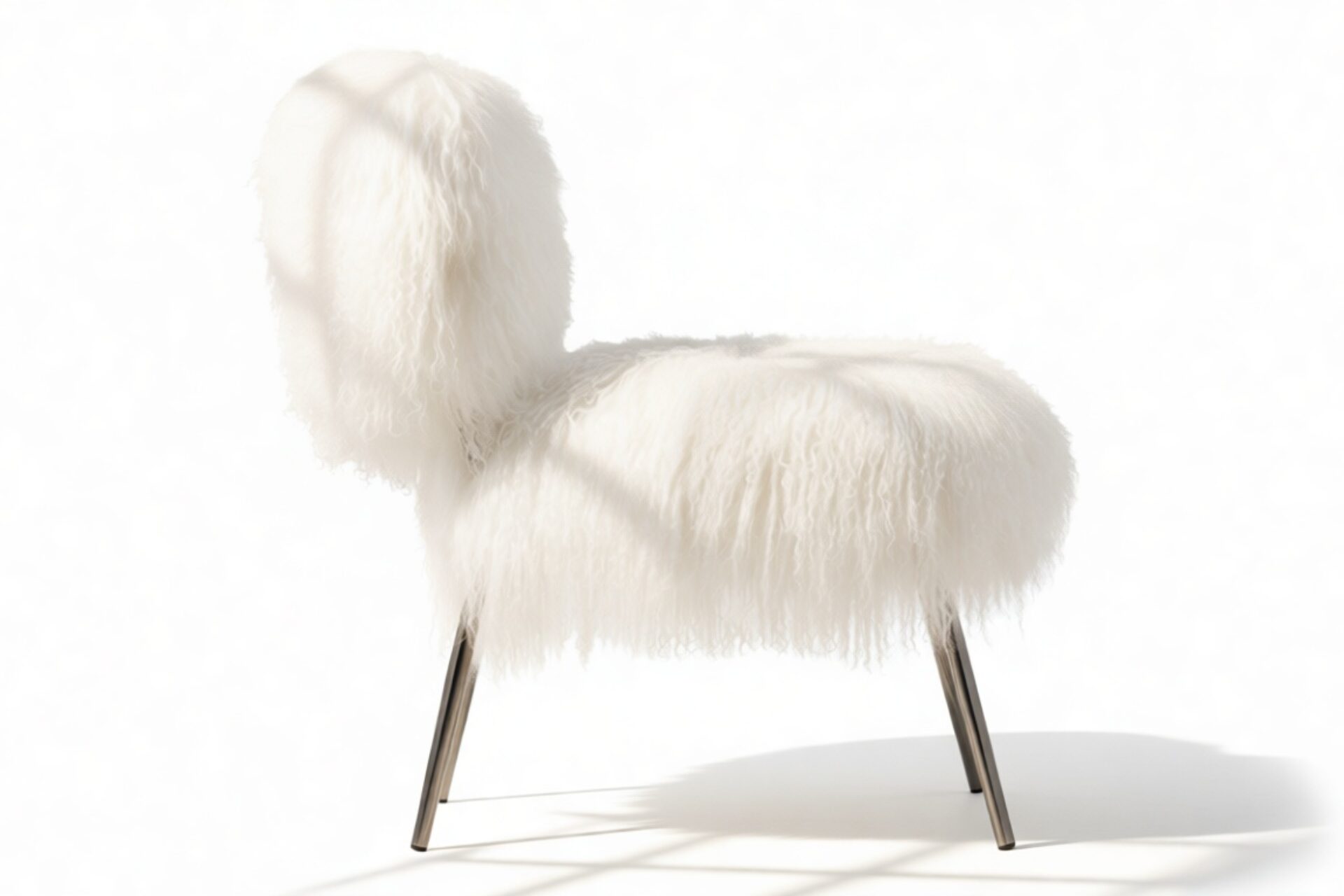 Elevate your space with the Kai Lounge Chair, a contemporary marvel blending sophistication with an exotic touch. Featuring exquisite white Mongolian wool upholstery, it exudes charm and vitality, inviting you to indulge in luxury and repose. This chair seamlessly merges modern design with sumptuous comfort, creating a serene atmosphere that adds a bold focal point to your décor or a cozy corner to unwind.