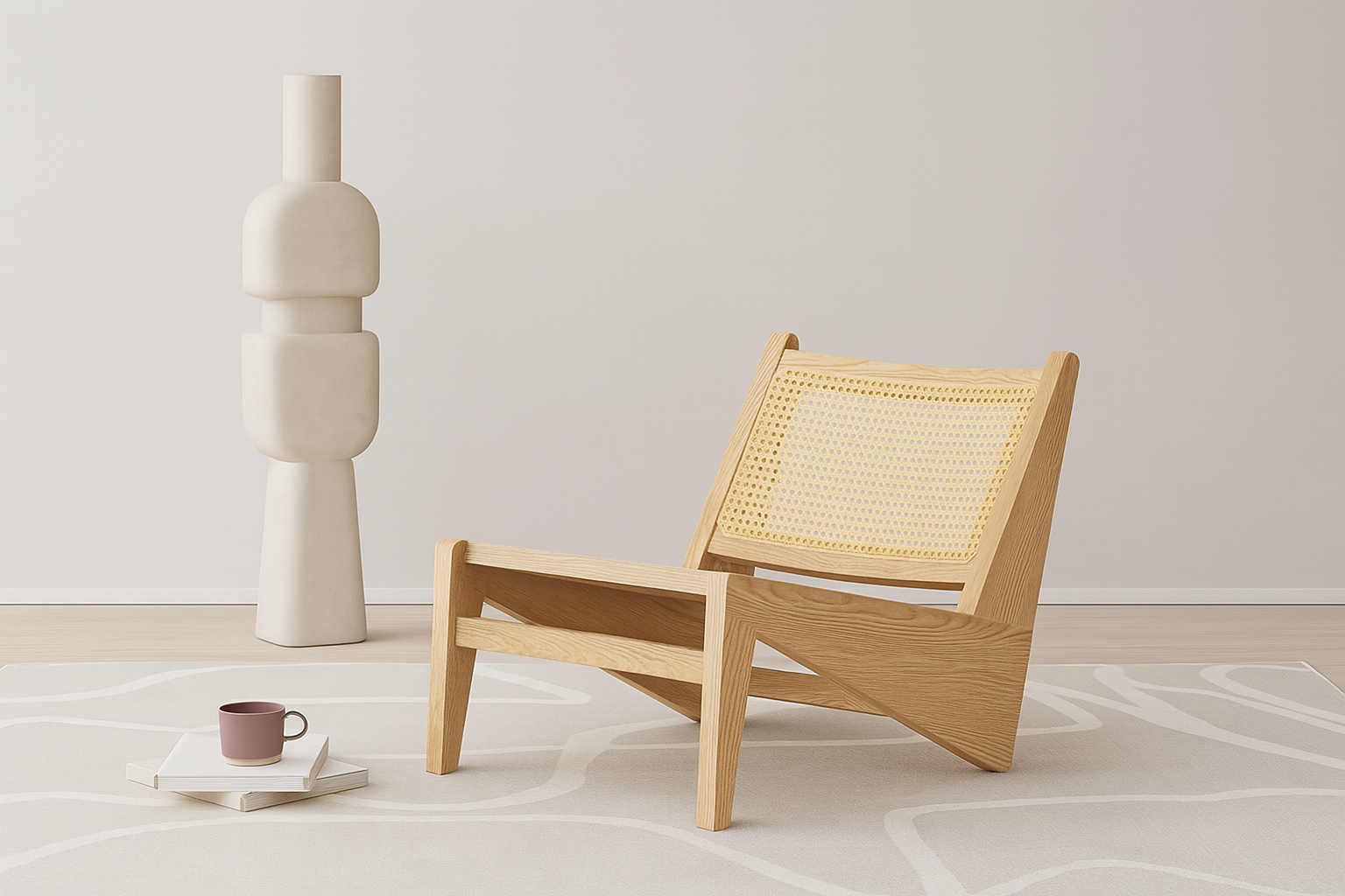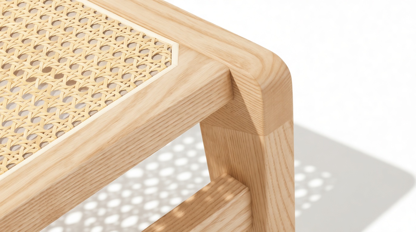 - Material: Solid ash with oiled finish, natural rattan seat and backrest
