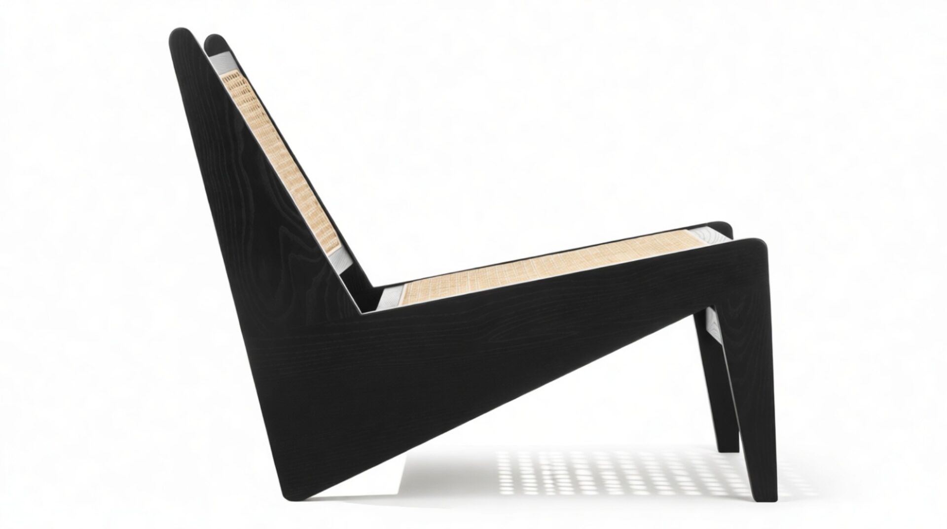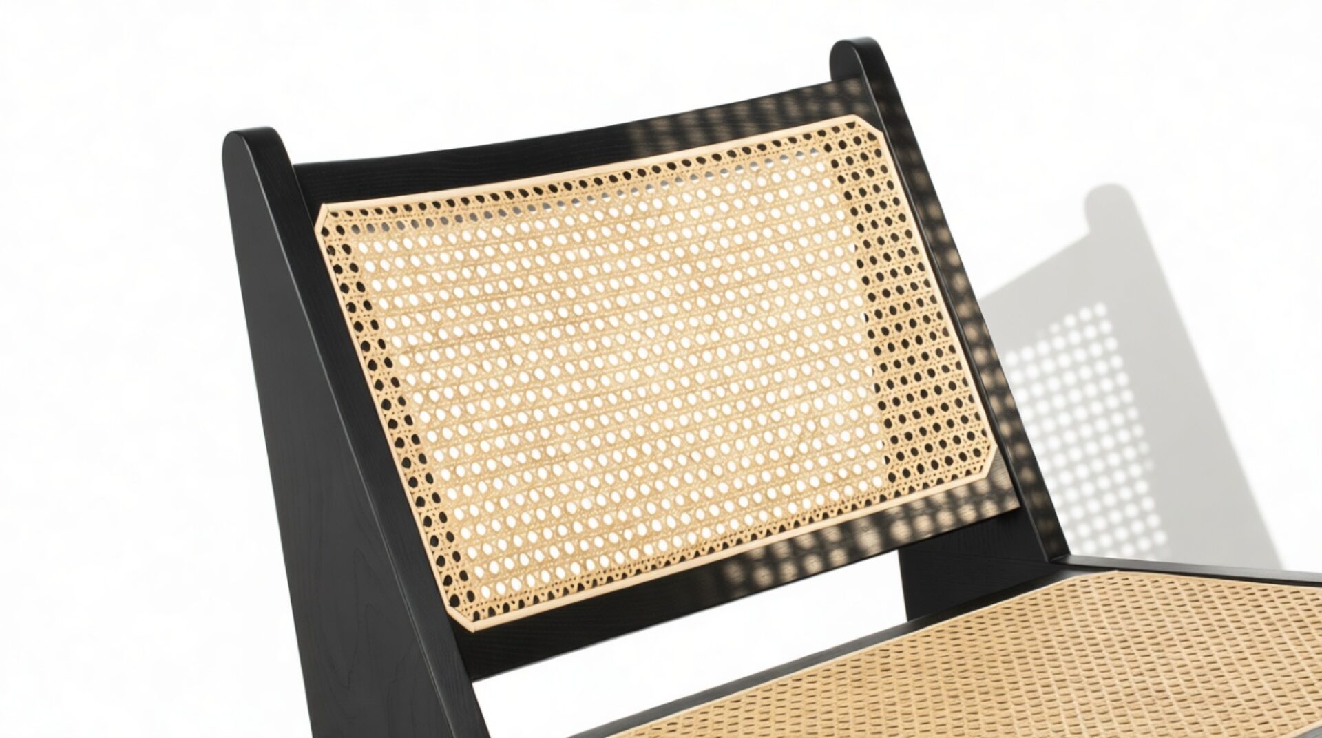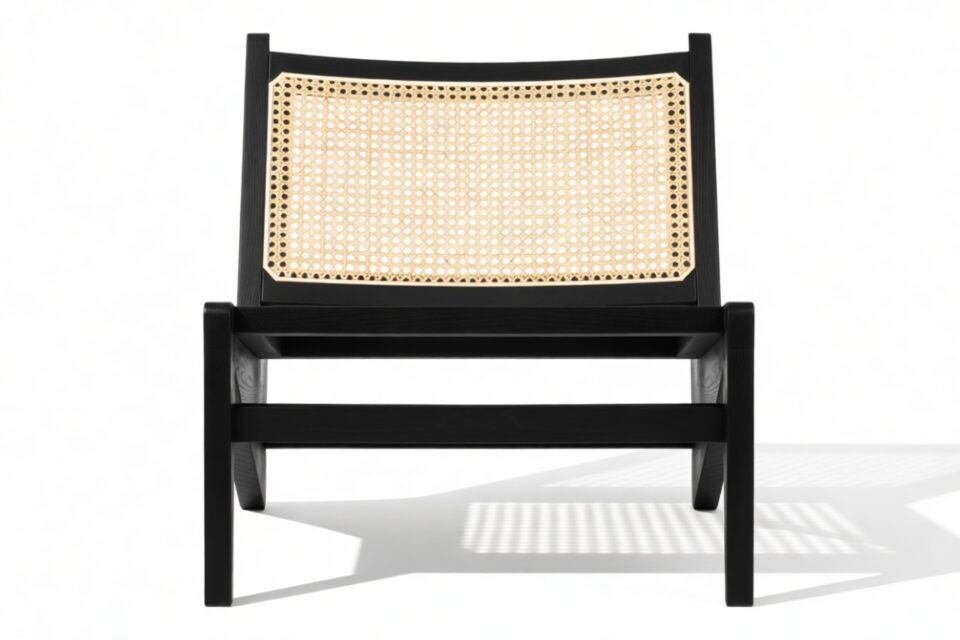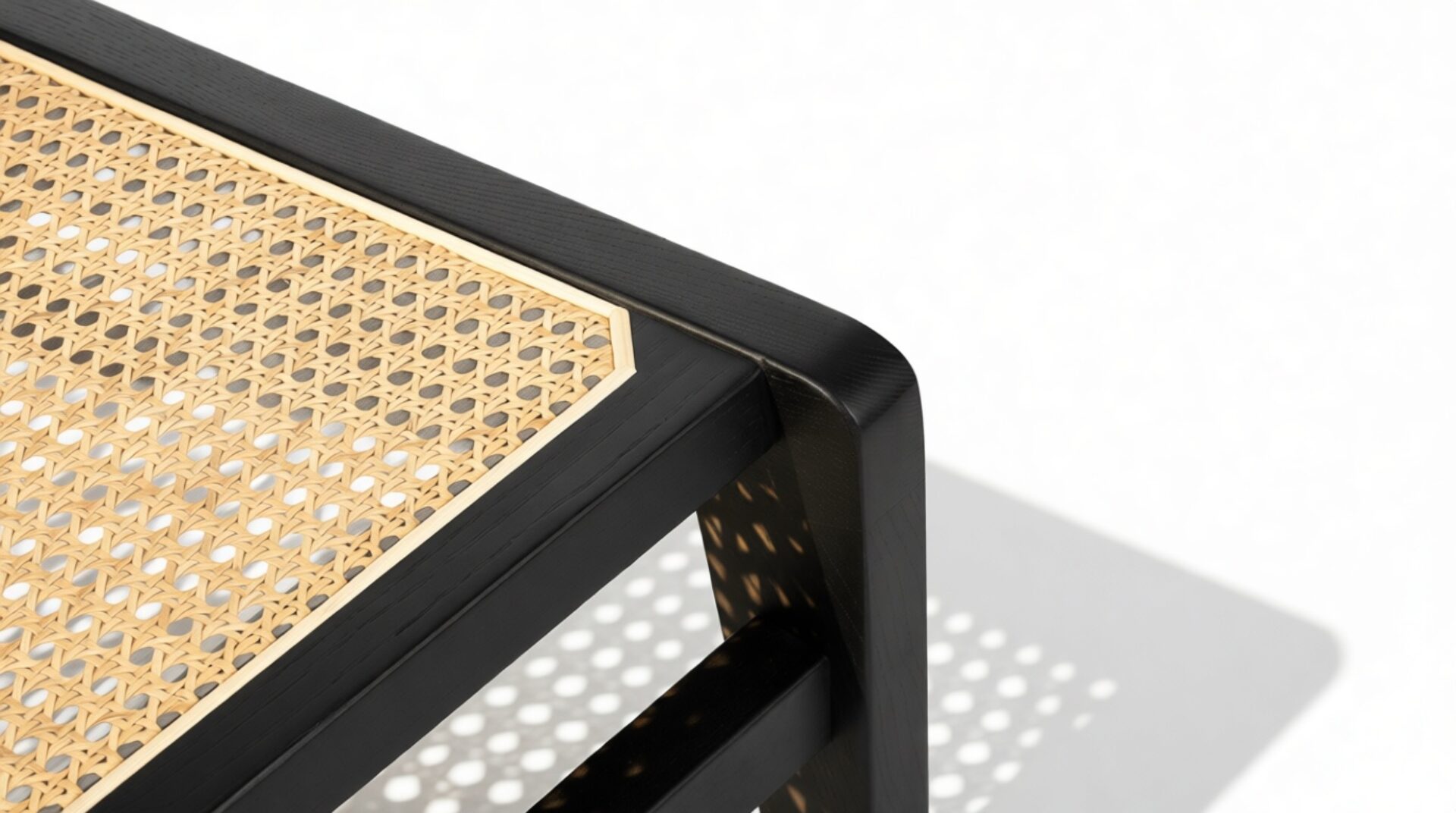 - Material: Solid ash with black painted finish, natural rattan seat and backrest