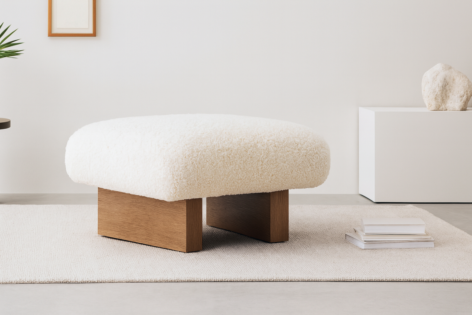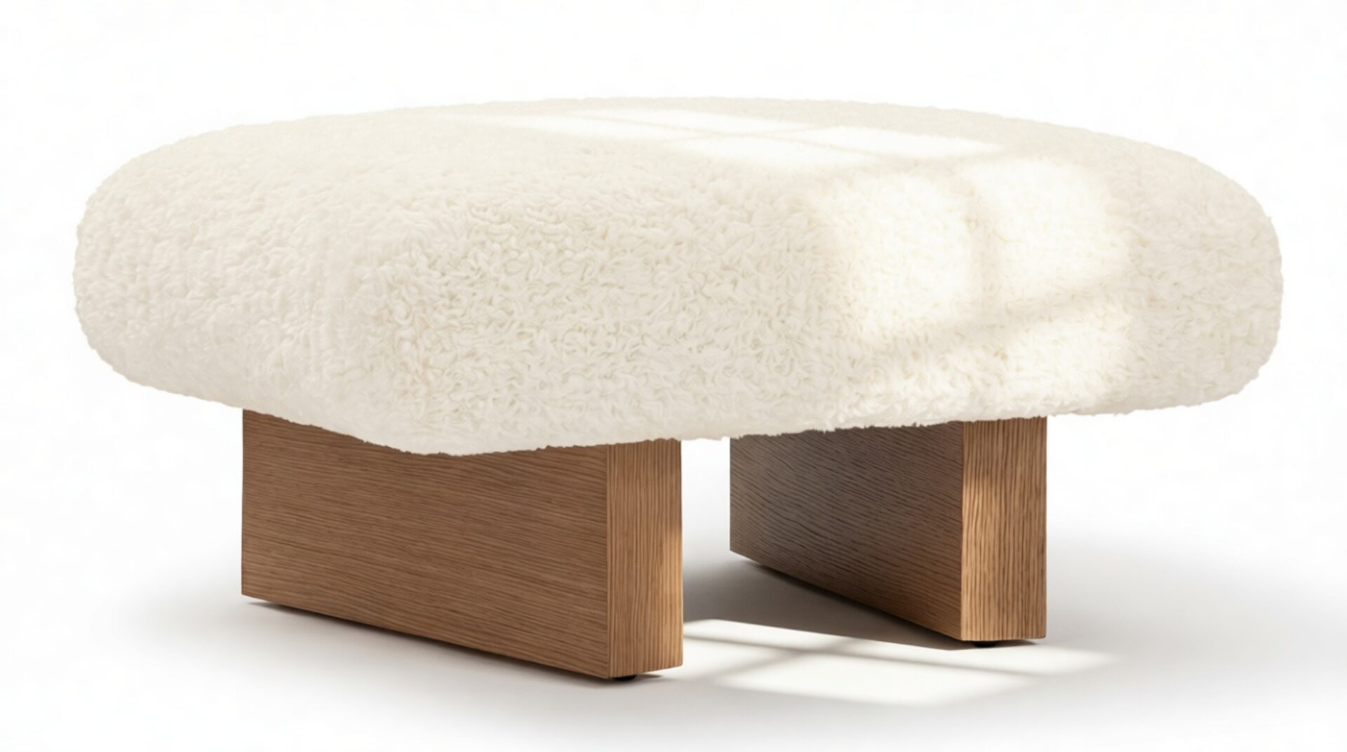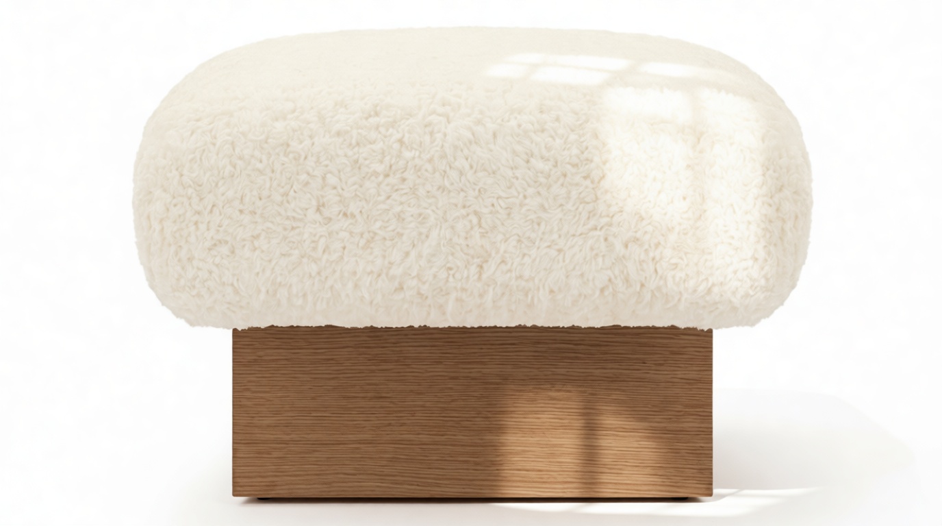Kea Ottoman, White Vegan Sheepskin