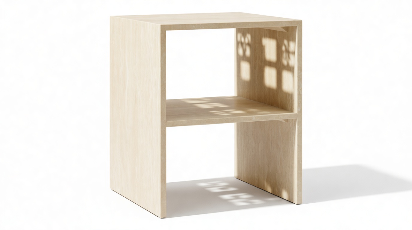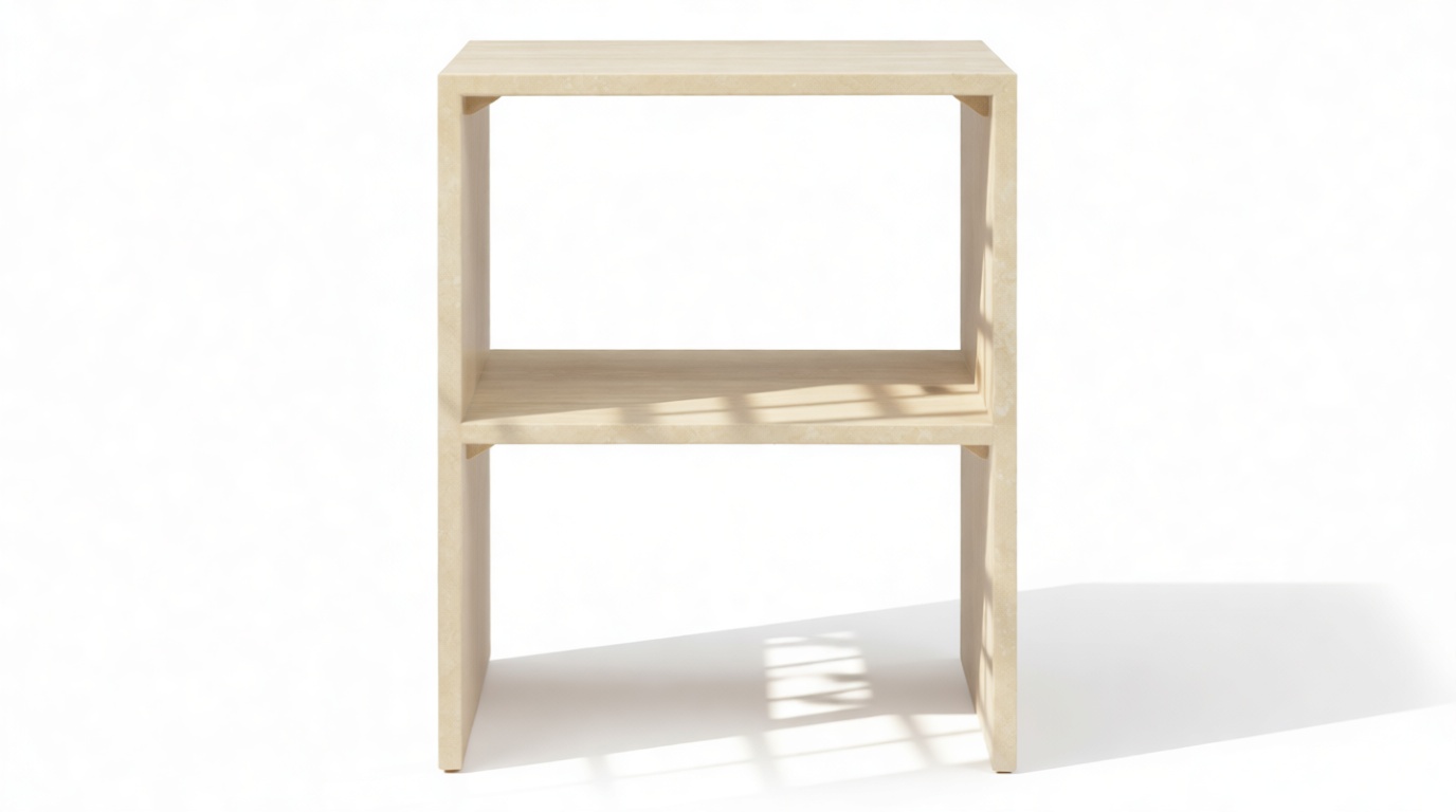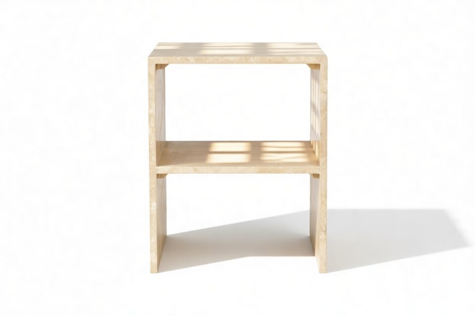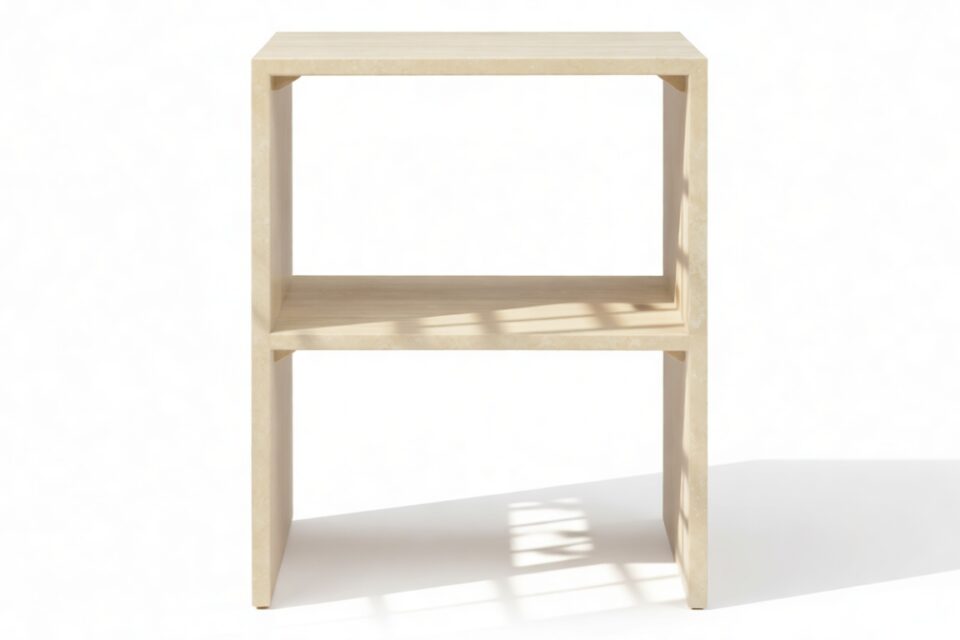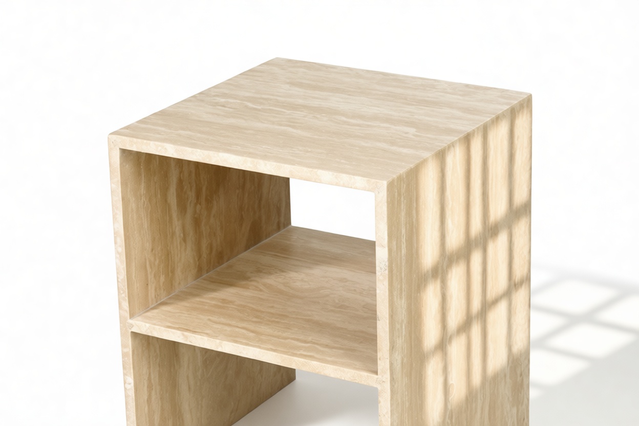 Designed for both style and practicality, this table features a convenient mid-level shelf for storing essentials like books, magazines, or decorative items. The durable travertine construction ensures lasting quality without compromising on aesthetics. Whether placed in bedrooms, living rooms, or lounge areas, the Köln Side Table serves as a bold statement piece and a functional solution.