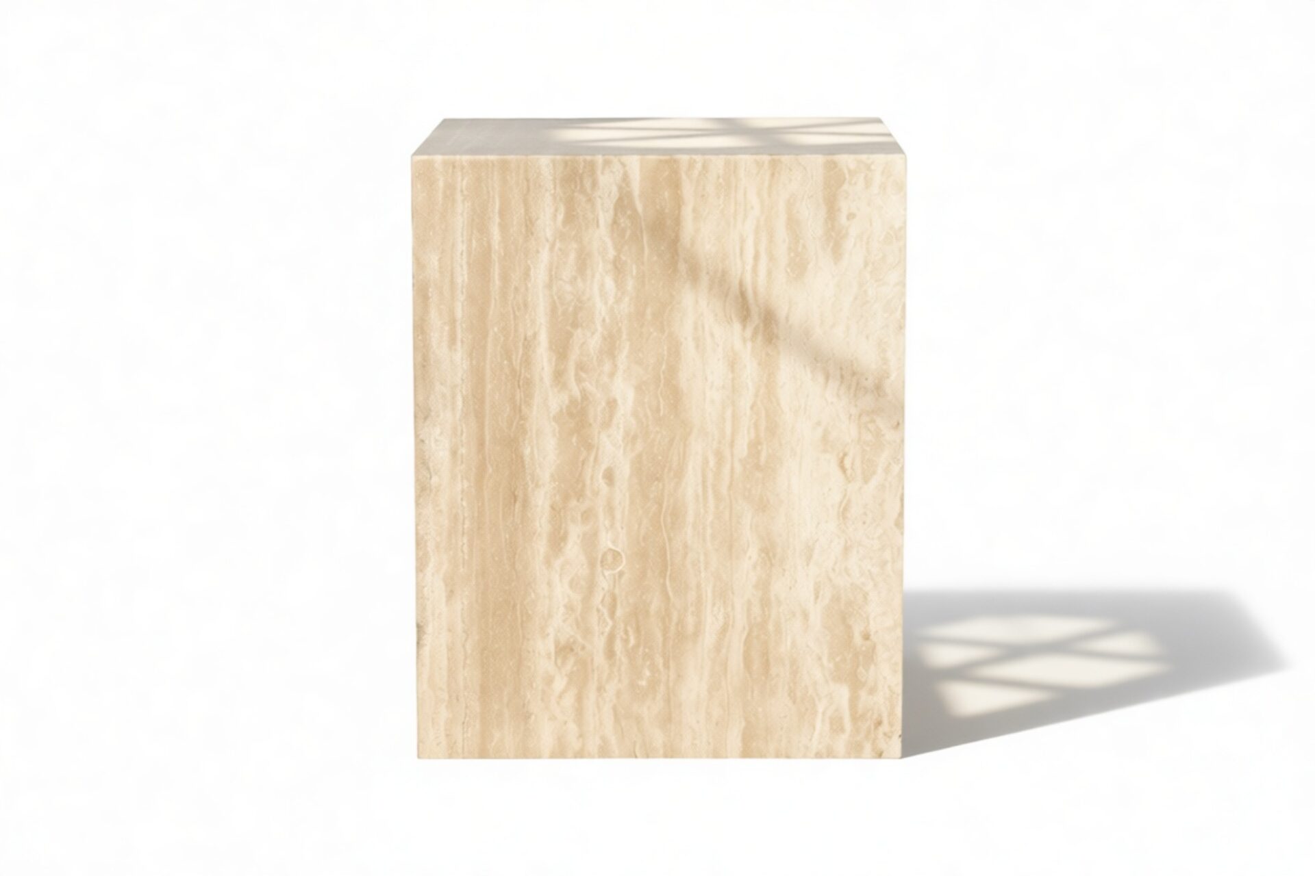 Discover the timeless elegance and modern functionality of the Köln Side Table. Expertly crafted from solid travertine stone with a honed finish to accentuate its natural texture, this minimalist piece showcases a sophisticated warm cream color that adds an elegant touch to any living space. Its sleek design effortlessly complements a range of interior styles, from contemporary to classic.