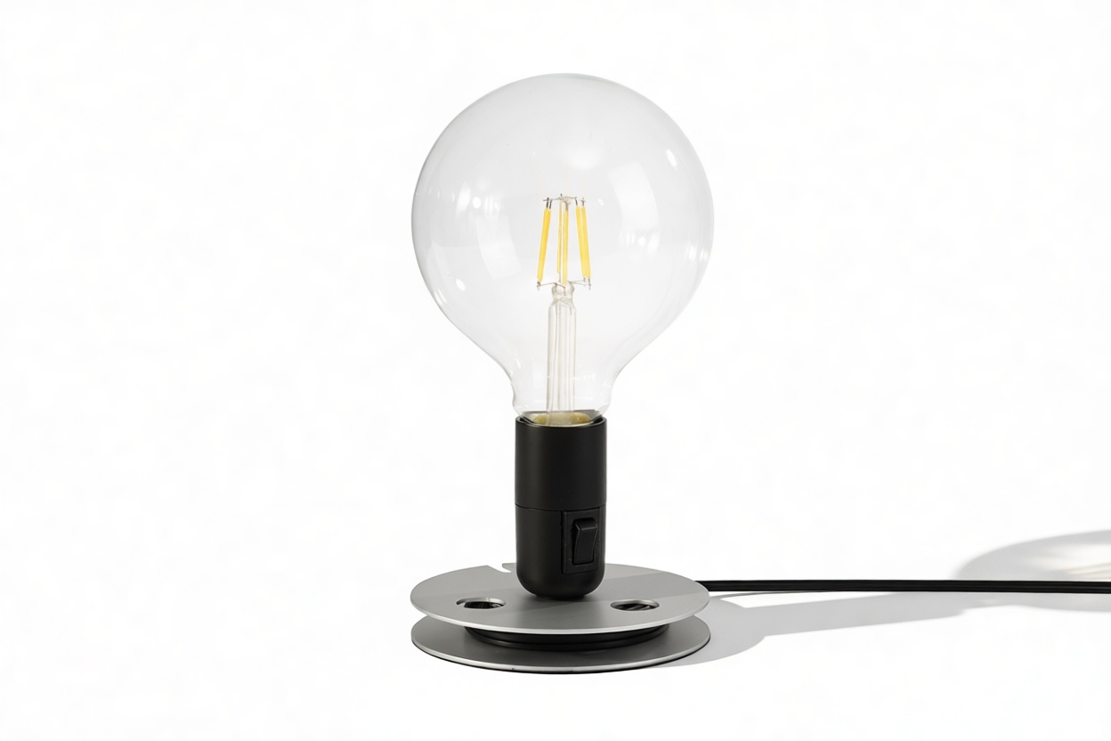 Ideal for contemporary, industrial, or midcentury interiors, the Lampadina proves to be a versatile lighting solution. Perfect for offices, living rooms, bedrooms, and beyond, this unique table lamp radiates brilliance wherever it is placed.