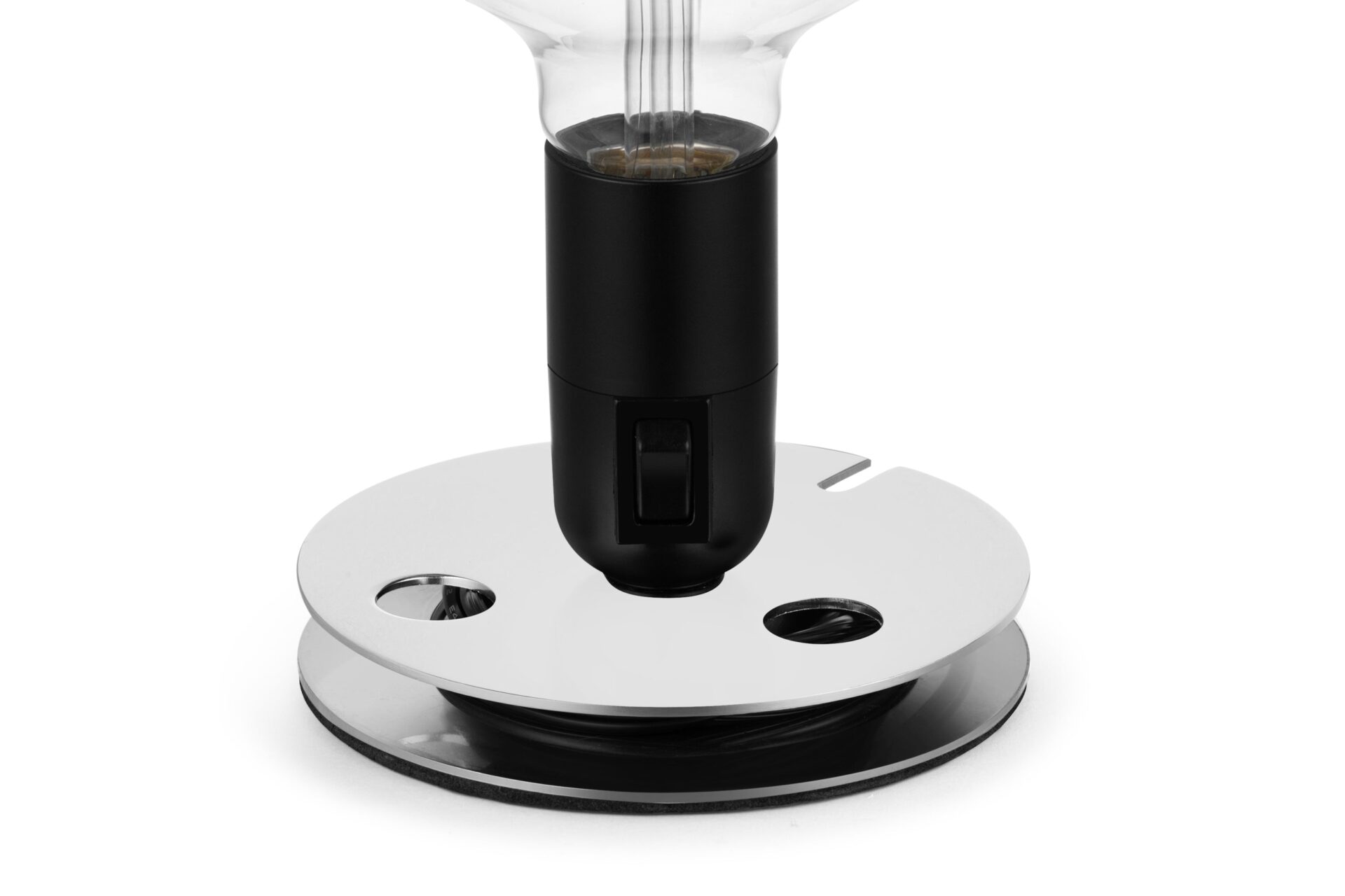 Ideal for contemporary, industrial, or midcentury interiors, the Lampadina proves to be a versatile lighting solution. Perfect for offices, living rooms, bedrooms, and beyond, this unique table lamp radiates brilliance wherever it is placed.