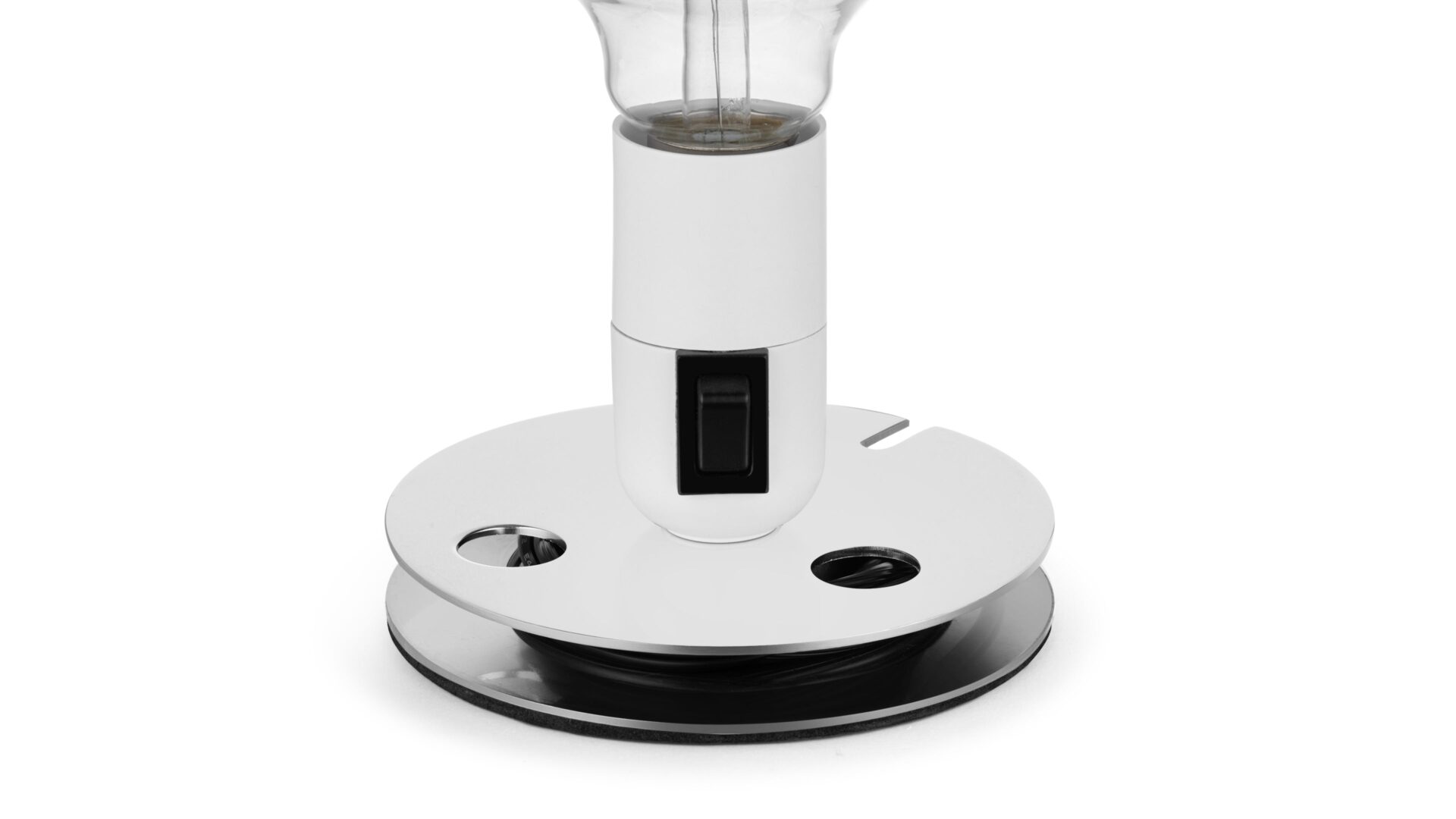 Ideal for contemporary, industrial, or midcentury interiors, the Lampadina proves to be a versatile lighting solution. Perfect for offices, living rooms, bedrooms, and beyond, this unique table lamp radiates brilliance wherever it is placed.