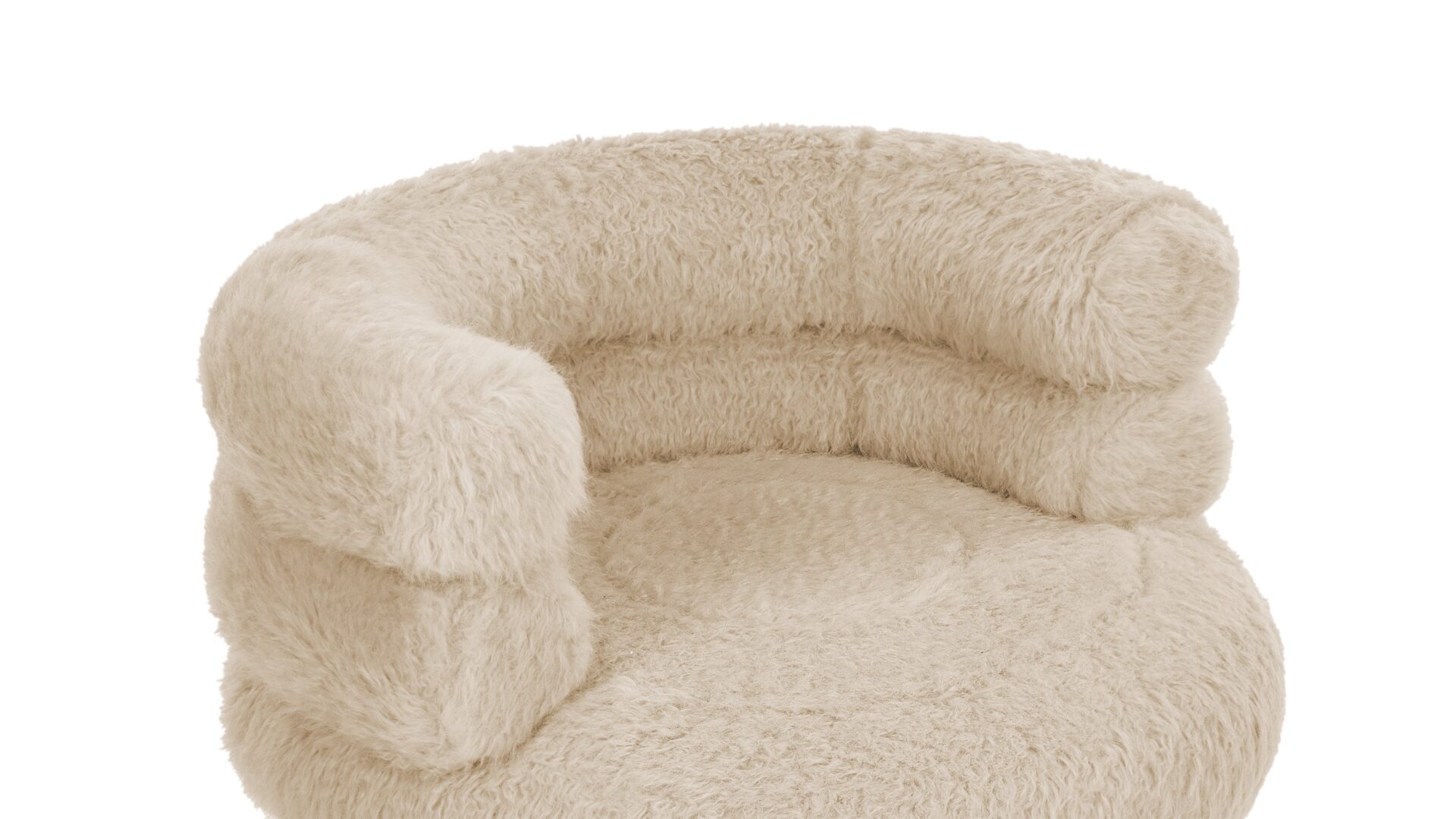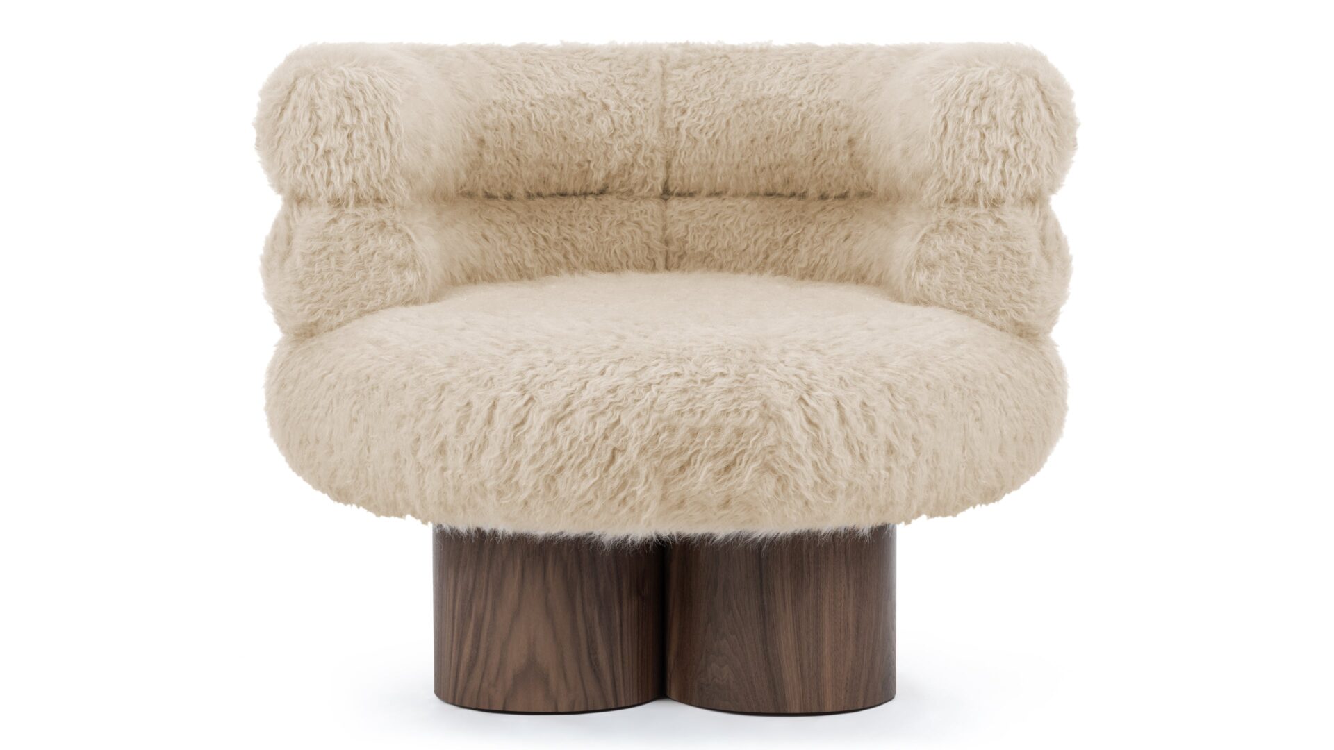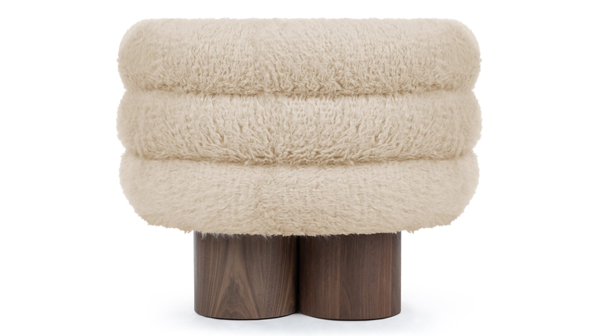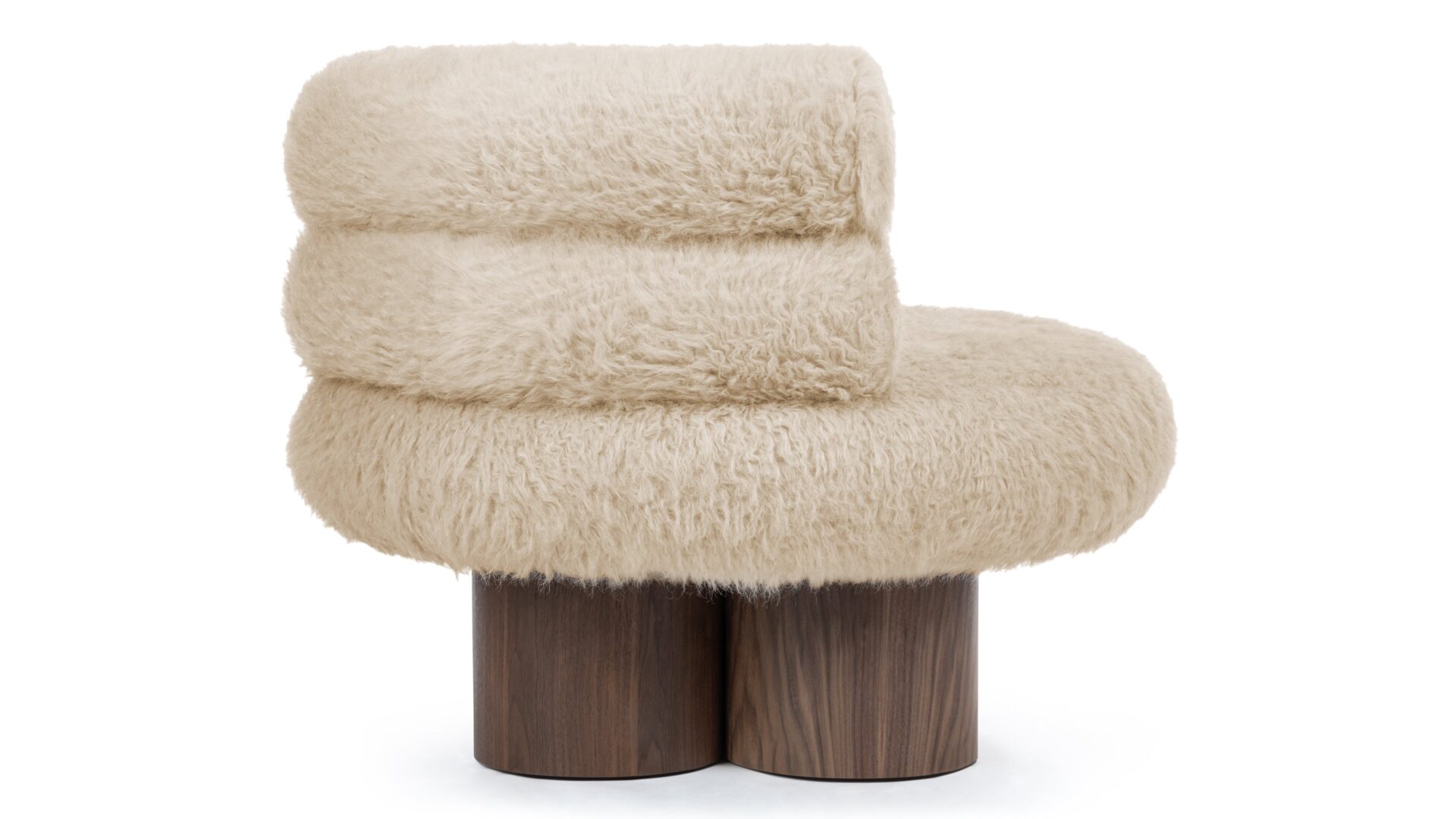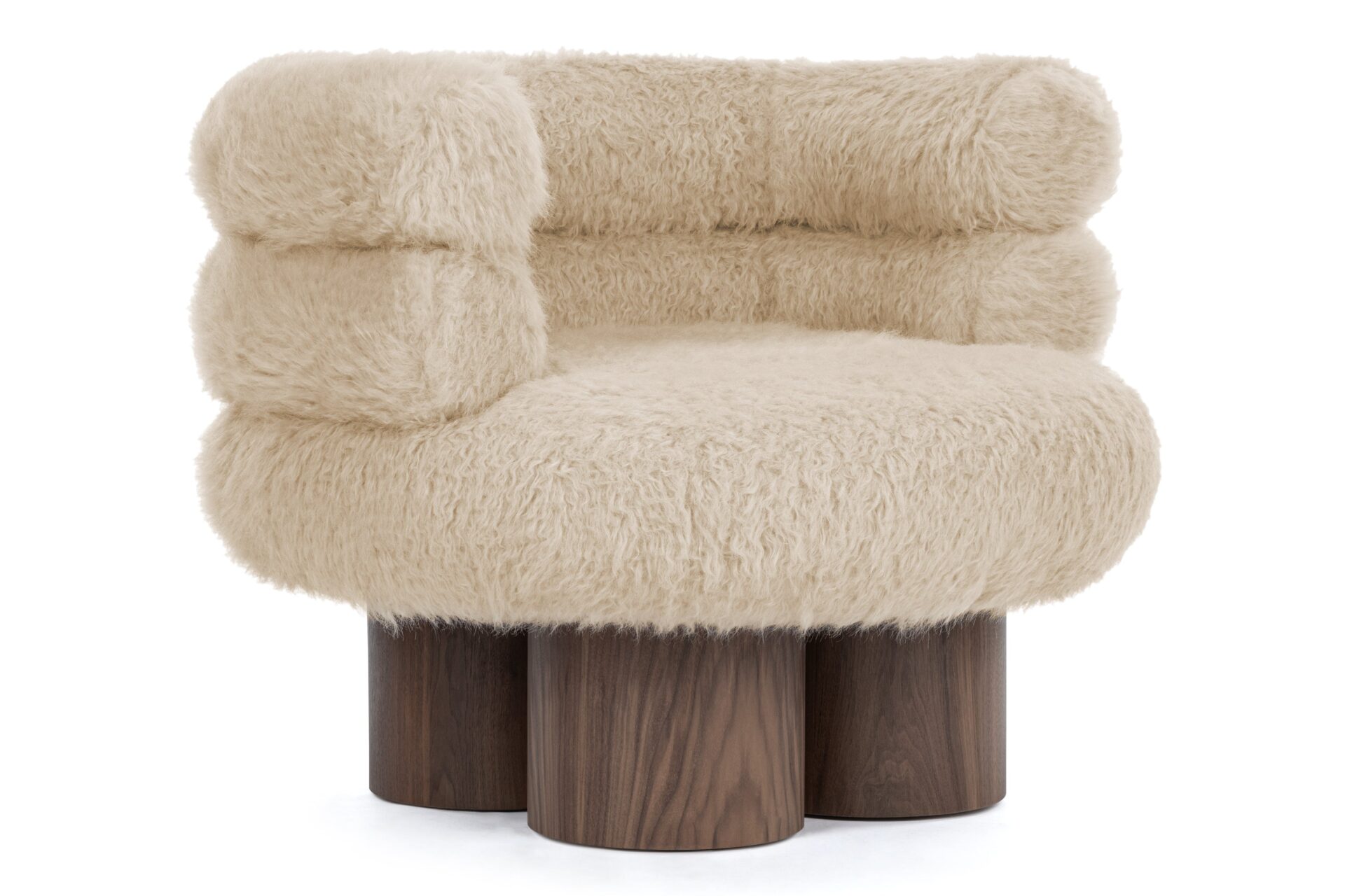 Inspired by the clouds, mist, and mountain ranges of Momostenango in the afternoon, the design of the Lana Chair captures a playful and whimsical essence, bursting with character. Crafted with luxurious materials and an imaginative form, this chair exudes other-worldly softness reminiscent of fleece-like upholstery. Paired with rich walnut legs, the Lana Chair draws the eye, inviting you into its cozy embrace.