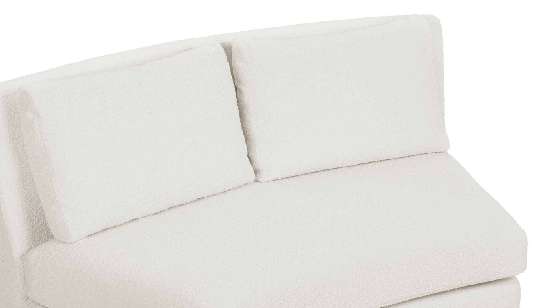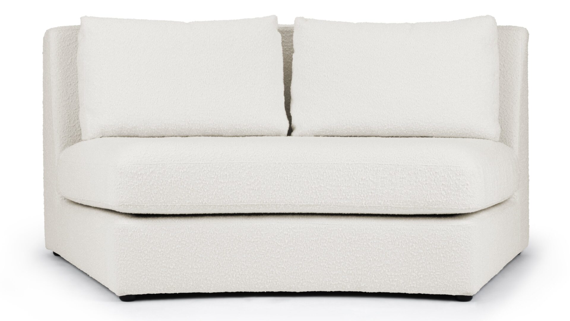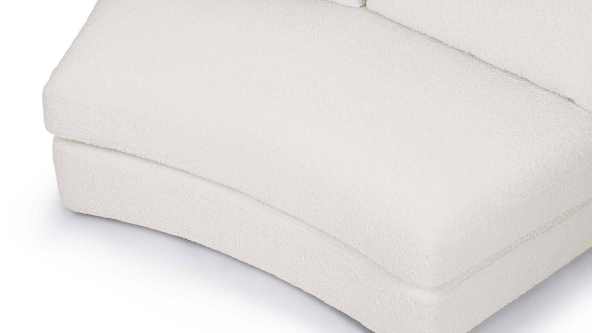 Introducing the Lanvin, a sectional collection that exudes a fusion of contemporary grace and enduring retro allure. Its distinctive design showcases a mid-height back and narrowing arms, creating a seamless curvature that enhances its sleek modern profile. Drawing inspiration from European design sensibilities, the cozy white, plush boucle fabric introduces both tactility and a refined, minimalist charm.