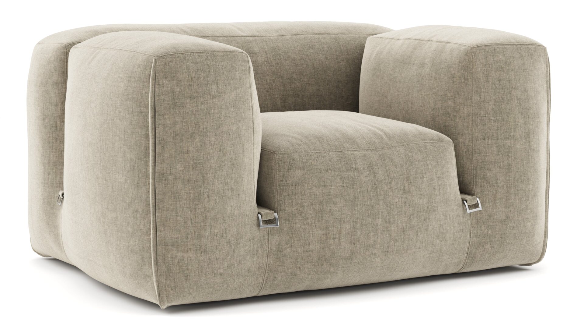 Experience the versatility and style of the Le Mura Sectional collection, providing a comfortable seating solution that requires minimal maintenance. Featuring a foam interior for deep comfort, soft geometric shapes with padded centers offer enhanced relaxation. The understated wooden legs and metal buckles allow for easy reconfiguration of modules, making it adaptable to any living space or configuration.