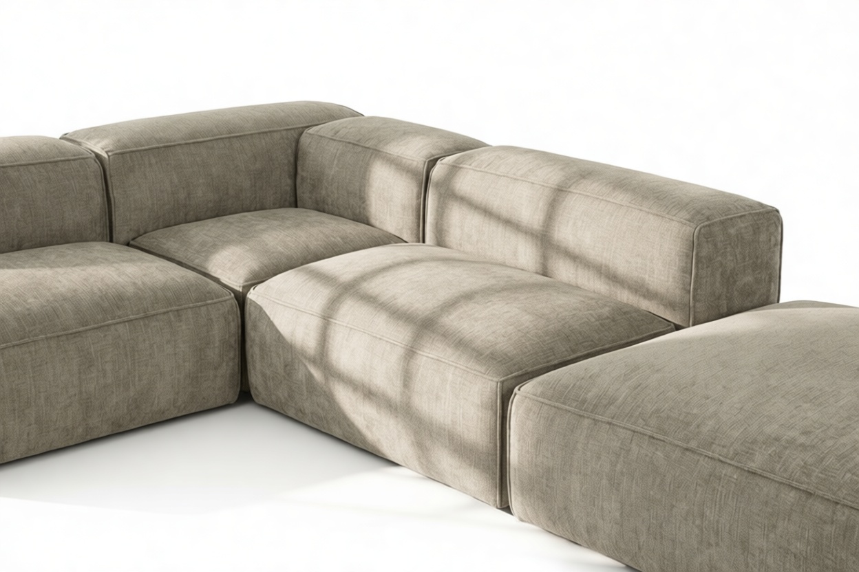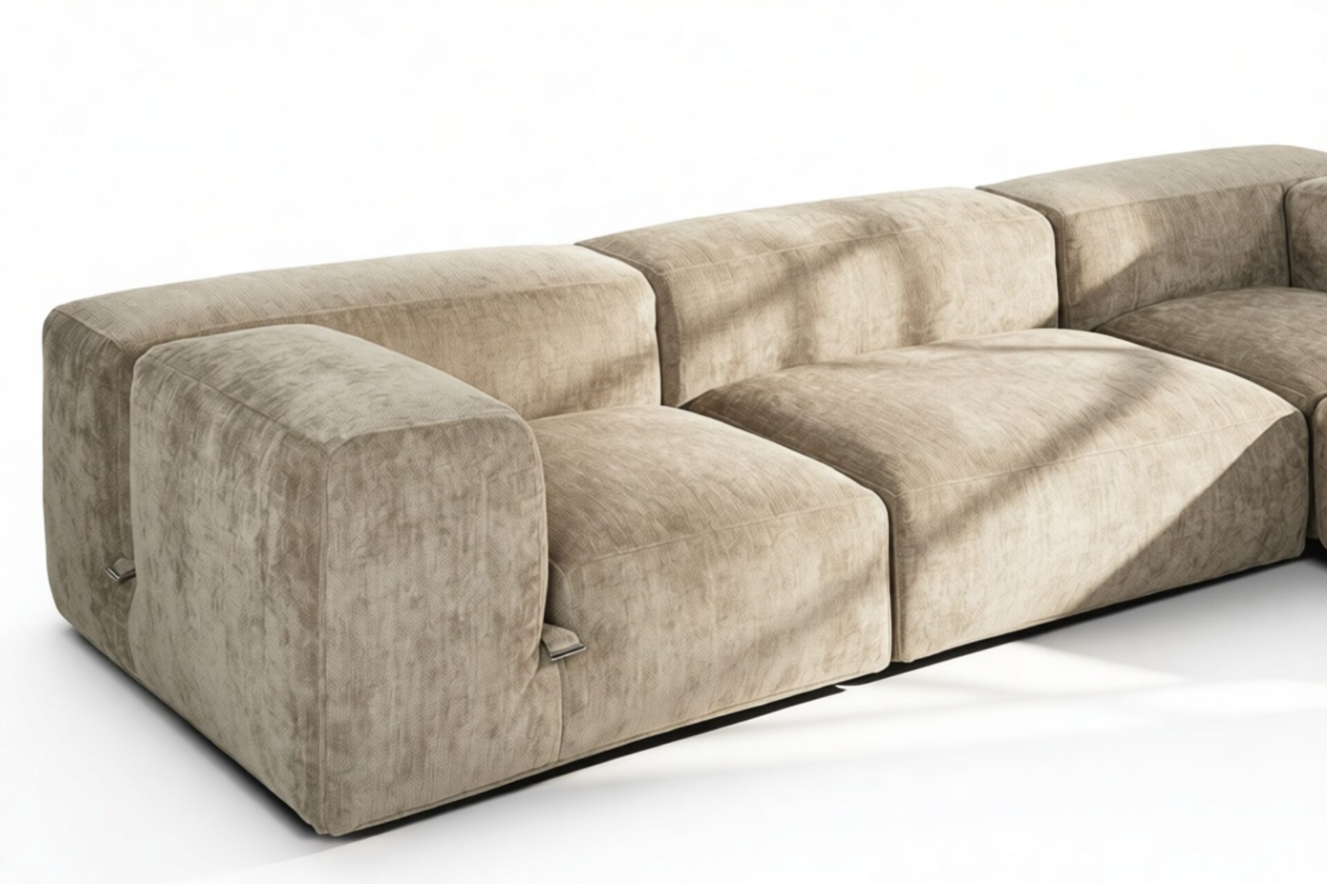 Crafted for versatility, the sectional’s modular design enables effortless reconfiguration, ideal for personalized seating layouts in diverse living areas.
