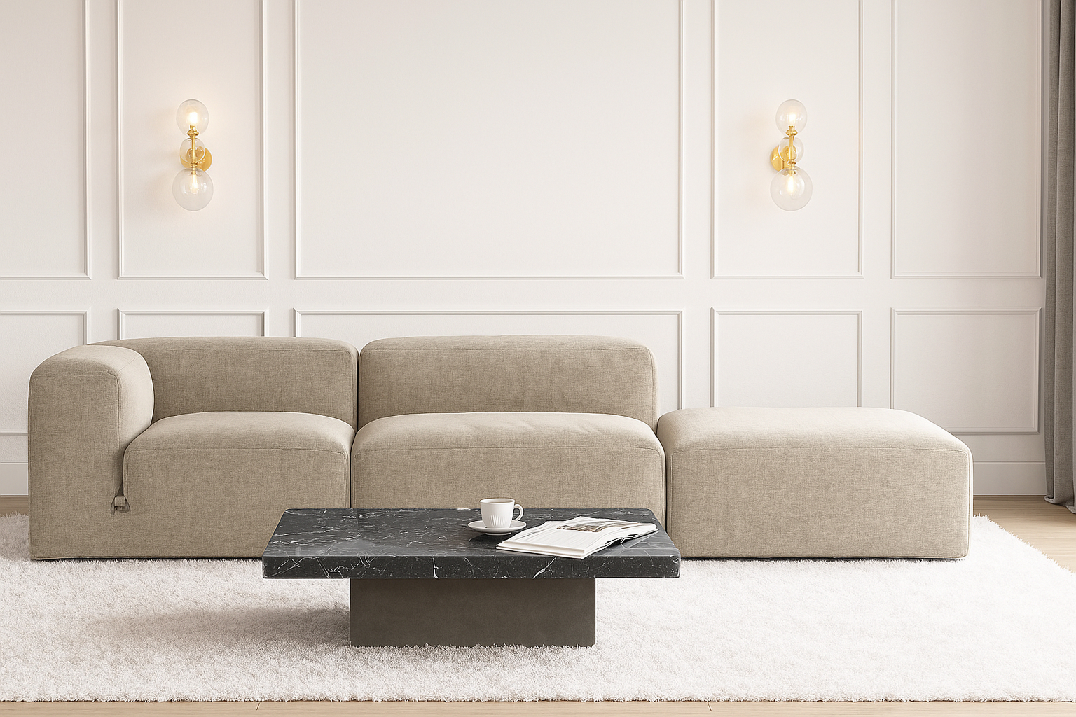 Crafted for versatility, the sectional’s modular design enables effortless reconfiguration, ideal for personalized seating layouts in diverse living areas.