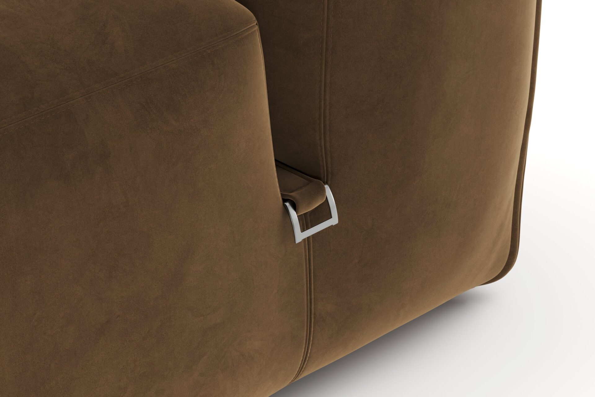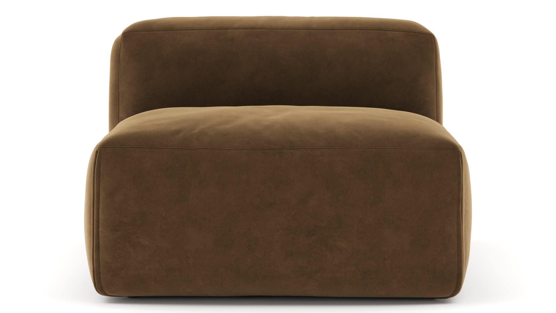 Discover the modern and inviting appeal of the Le Mura Sectional collection. Effortlessly blending into any decor with its puffy, contemporary design, this collection features soft geometric shapes and padded centers in luxurious Brown Vegan Suede. Enjoy deep comfort with its foam interior and easy reconfiguration using wooden legs and metal buckles for a personalized touch to your living space.