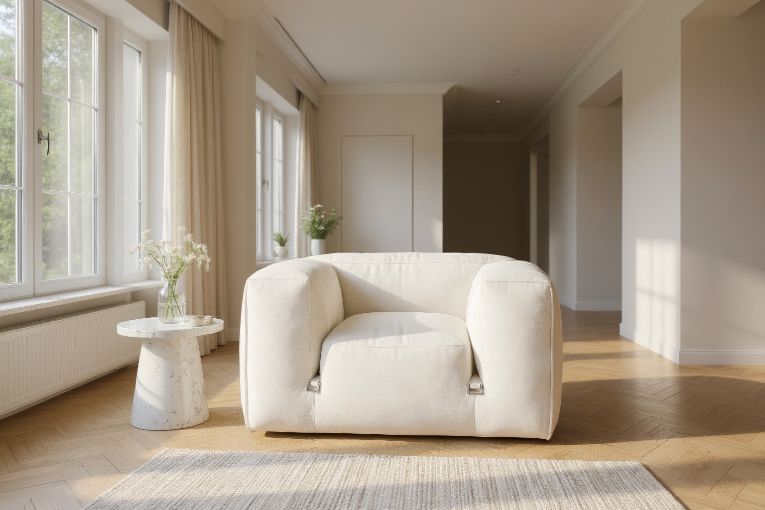 Discover the chic and versatile Le Mura Sectional collection in Natural Linen, radiating contemporary elegance and comfort. Boasting soft geometric shapes and plush foam interior, this piece is an epitome of stylish relaxation. The understated wooden legs and metal buckles provide easy module reconfiguration, adapting seamlessly to any living space.