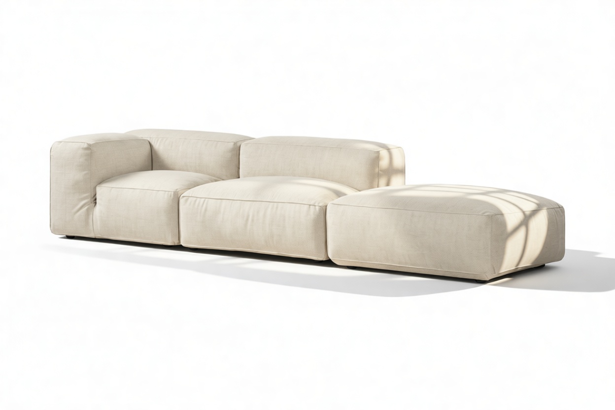 The puffy, contemporary design of this collection effortlessly blends with any decor, offering a fashionable touch. Opt for a monochromatic look with neutral tones or create a bold contrast with brightly colored accessories. The modular system of this collection allows for flexibility, accommodating different interior styles seamlessly.