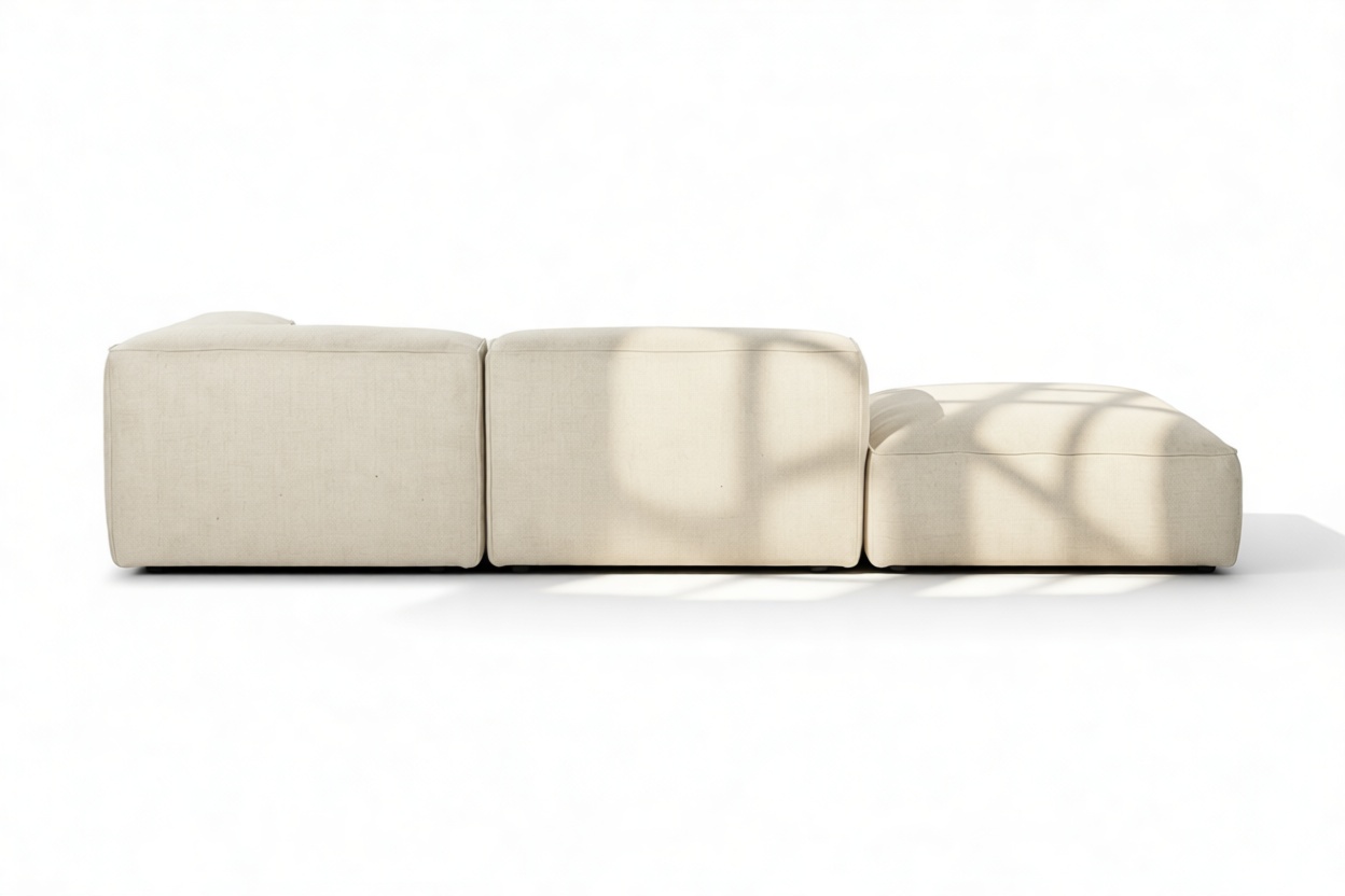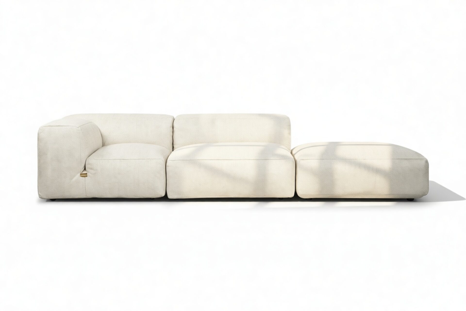 Elevate your space with the exquisite Le Mura Sectional collection, showcasing a luxurious mix of modern design and timeless elegance in Natural Linen. The plush foam interior, adorned with soft geometric shapes and metal accents, provides deep comfort and effortless style. With its flexible modularity, this sectional offers personalized, chic seating layouts for any interior.