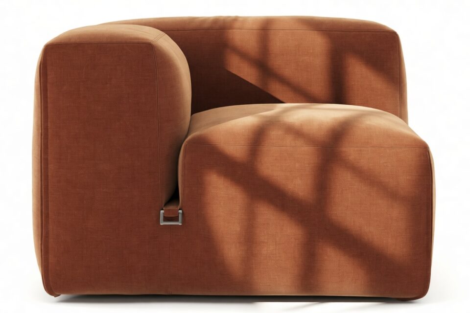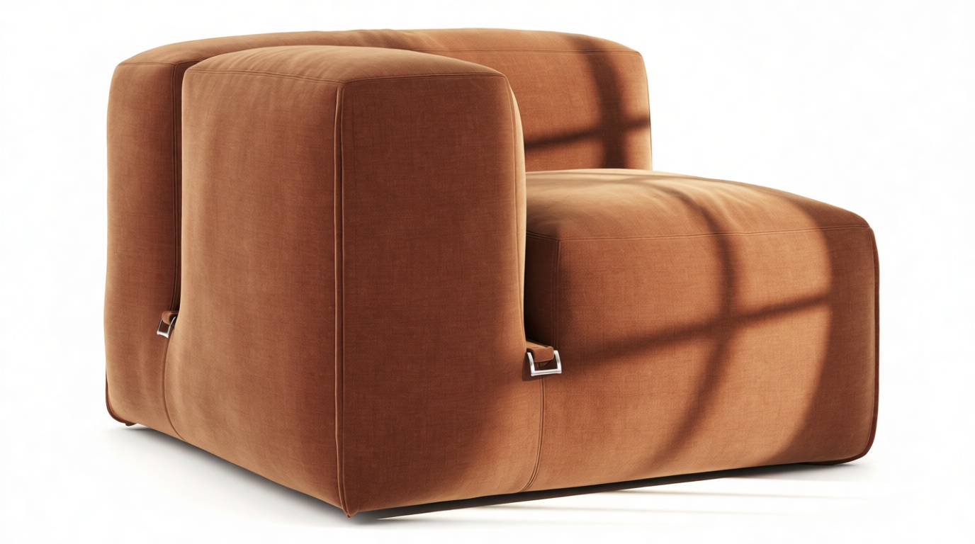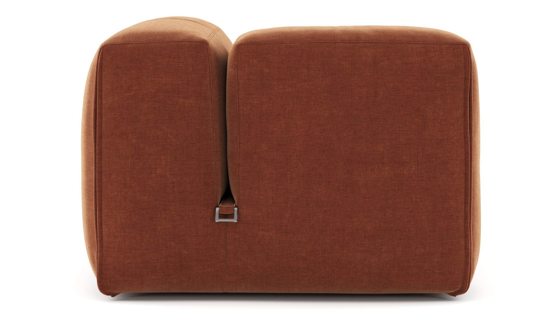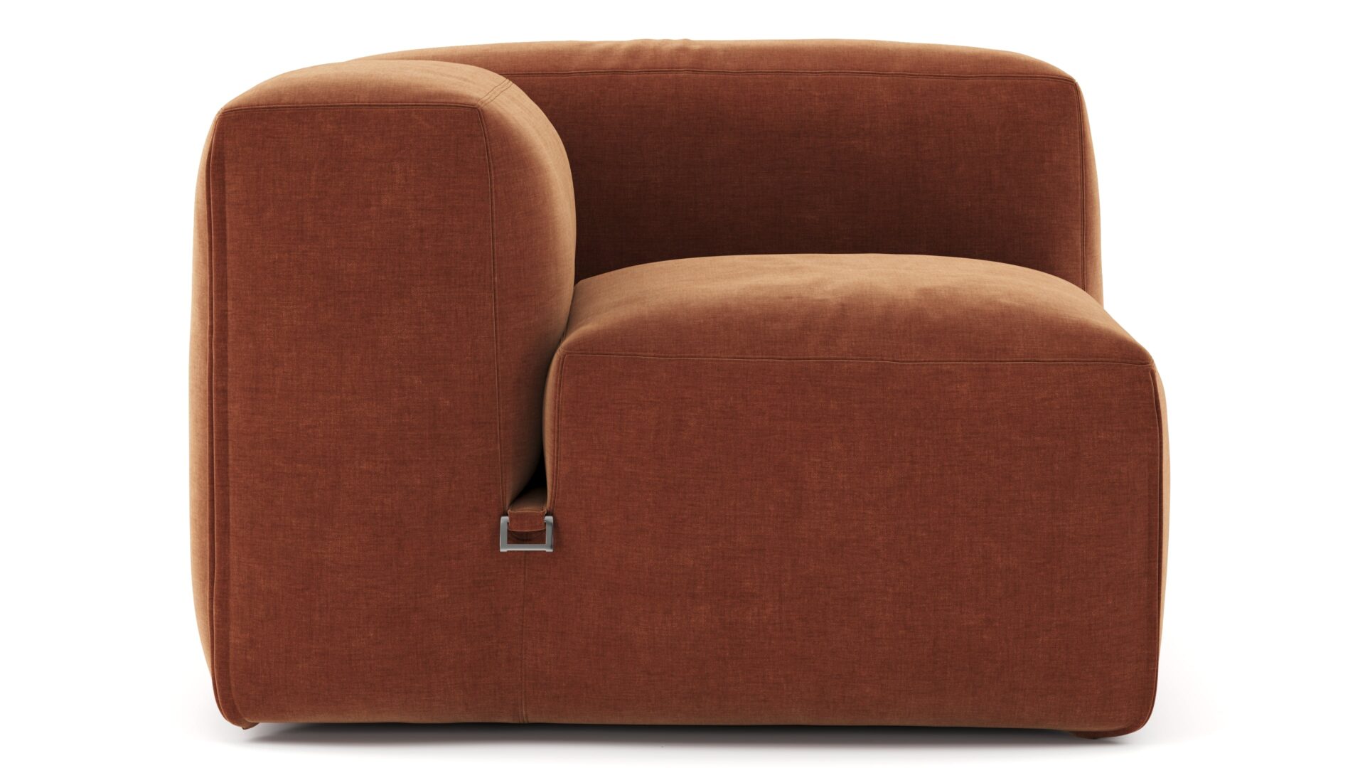 Introducing the Le Mura Sectional collection, offering a versatile seating solution with minimal maintenance. With its deep comfort foam interior, soft geometric shapes, and padded centers, this piece boasts understated wooden legs and metal buckles for easy reconfiguration. The Rust Chenille color/material variant adds a luxurious touch, seamlessly blending into any contemporary decor for a stylish, flexible seating solution.