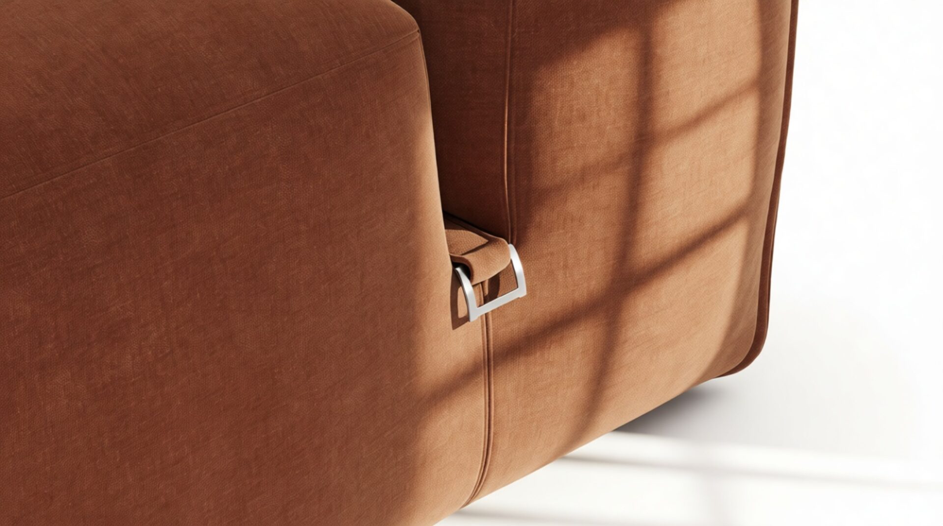 Discover our collection, available in both neutral-toned fabric and leather or vegan suede. Experience the deep comfort provided by the foam interior, complemented by understated wooden legs and sleek metal buckles for easy configuration.