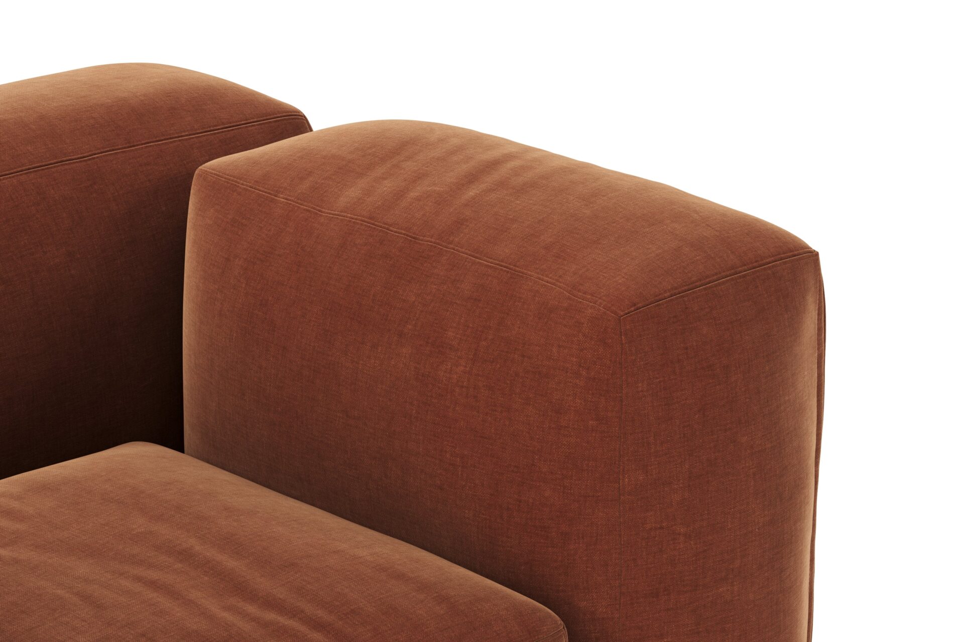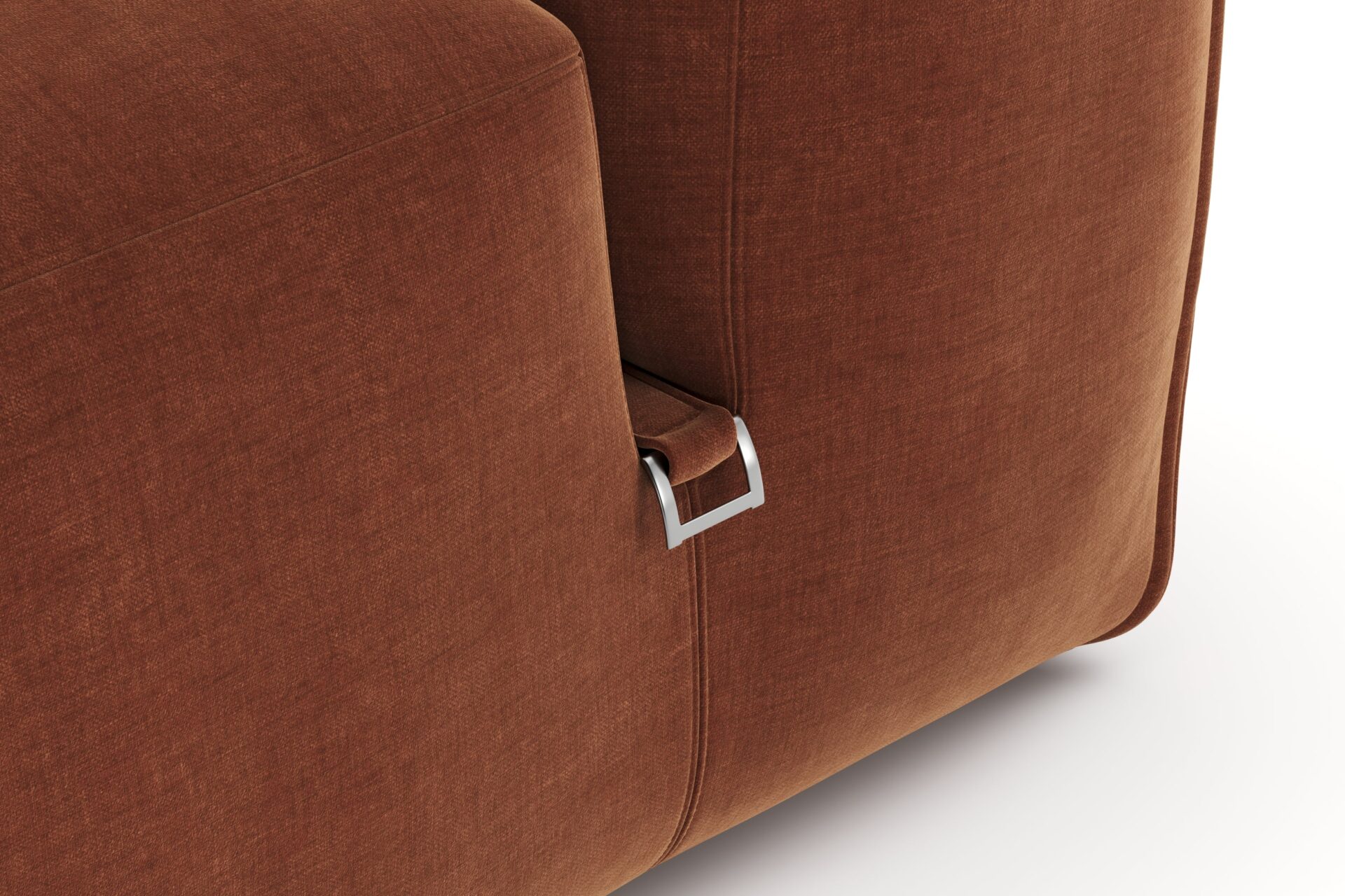 Introducing the Le Mura Sectional collection, a versatile and stylish solution offering deep comfort and minimal maintenance. With its soft geometric shapes and foam interior, this contemporary piece features rust chenille fabric for a luxurious touch. The modular system, wooden legs, and metal buckles allow easy reconfiguration to suit any living space, providing a modern and welcoming atmosphere that effortlessly complements various design aesthetics.
