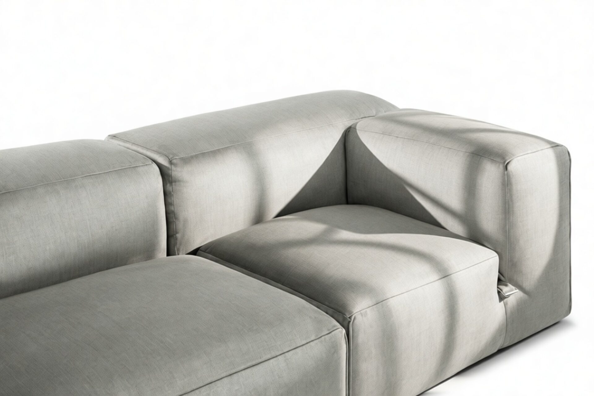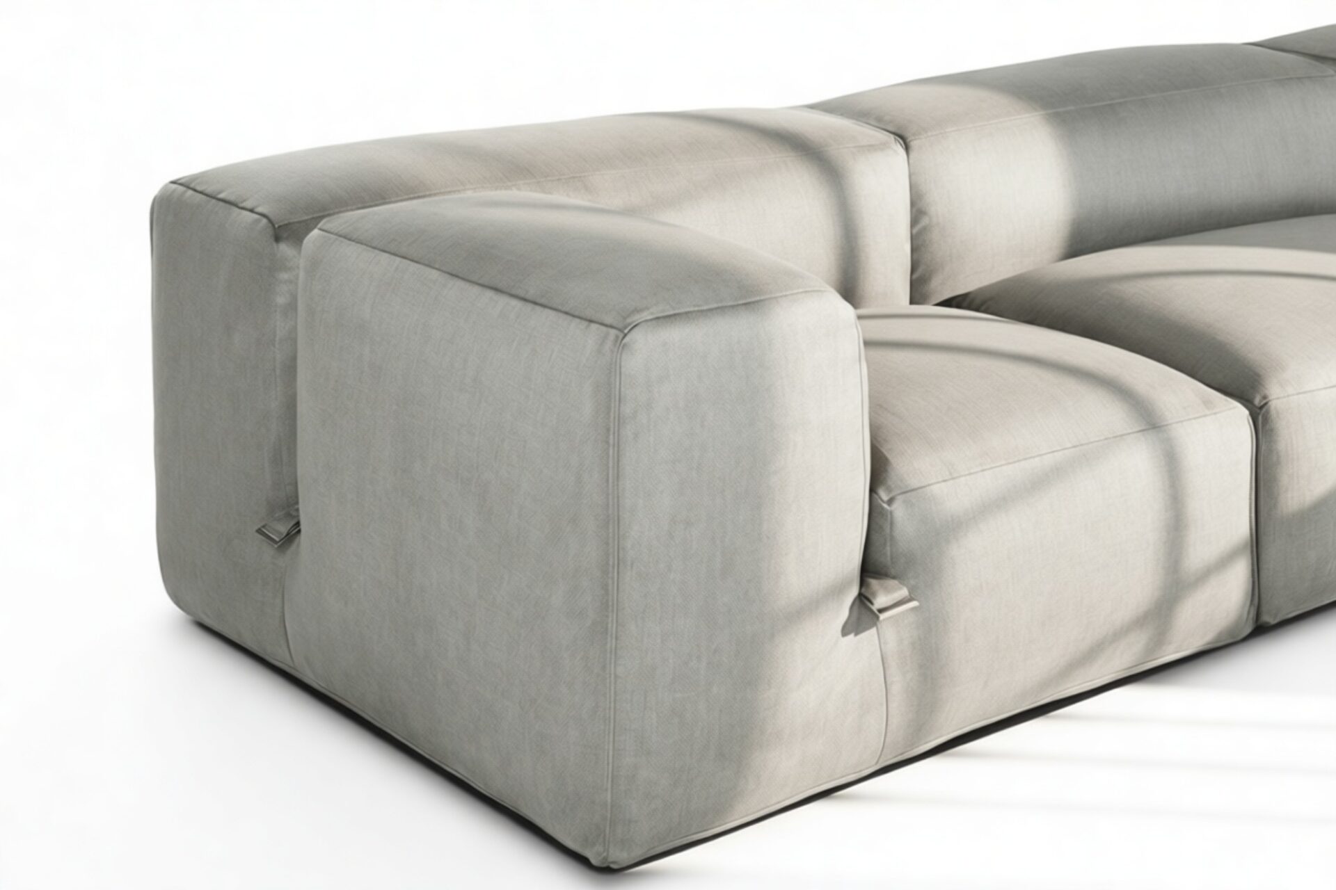 The puffy, contemporary design of this collection effortlessly blends with any decor, offering a fashionable touch. Opt for a monochromatic look with neutral tones or create a bold contrast with brightly colored accessories. The modular system of this collection allows for flexibility, accommodating different interior styles seamlessly.
