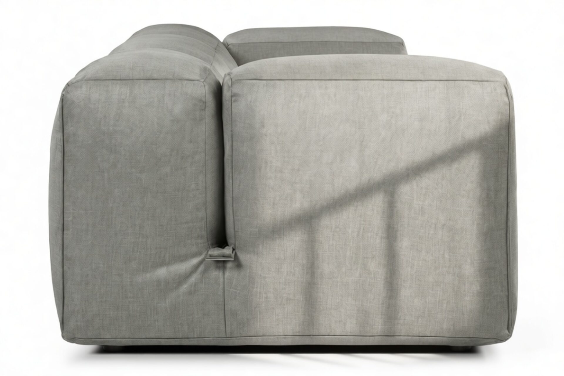 Introducing the Le Mura Sectional collection, a versatile and stylish solution for comfortable seating. Crafted with a foam interior for deep comfort, this collection features soft geometric shapes and padded centers for enhanced relaxation. With understated wooden legs and metal buckles, it offers easy reconfiguration, making it adaptable to any living space. The soft gray brushed weave material adds a touch of luxury and sophistication, blending effortlessly with any decor. Elevate your space with this contemporary and flexible sectional.