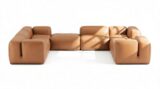 Experience the versatile and stylish Le Mura Sectional collection, offering a comfortable seating solution with minimal maintenance. With a foam interior for deep comfort, soft geometric shapes in tan vegan leather provide enhanced relaxation. The sectional's modular design, featuring understated wooden legs and metal buckles, seamlessly adapts to any space, embodying a modern, luxurious finish.