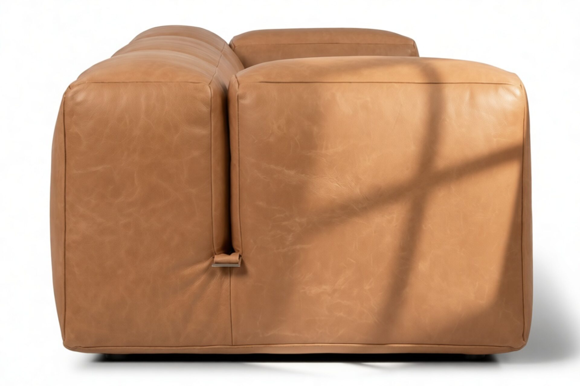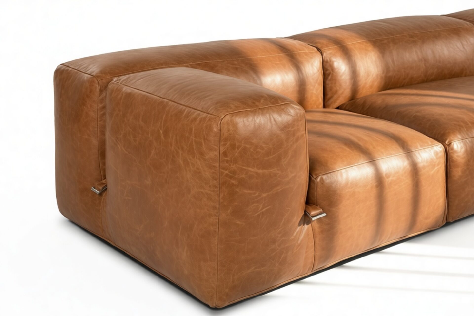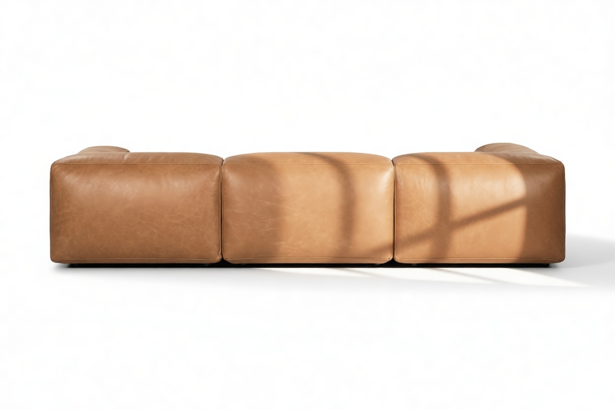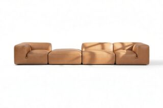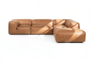 Introducing the Le Mura Sectional collection, a blend of contemporary style and comfort. Featuring a plush tan vegan leather option, this sectional offers deep comfort with a foam interior and soft geometric shapes. Its versatile modular design allows for easy reconfiguration, adapting seamlessly to different living spaces. Elevate your decor with this luxurious and flexible piece.