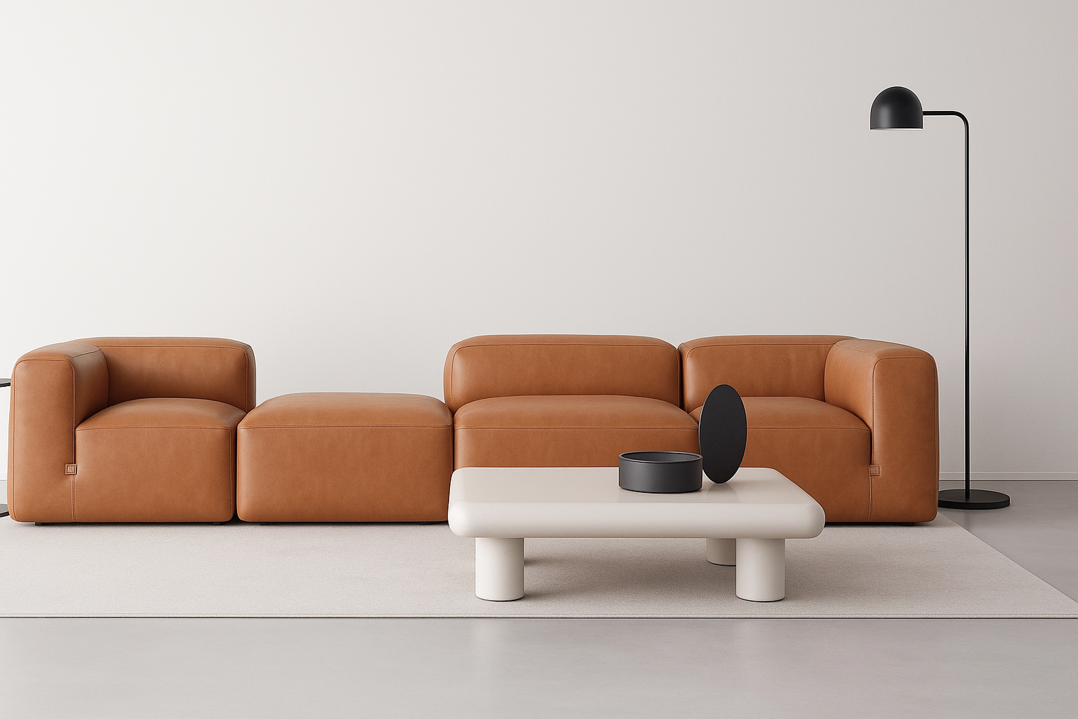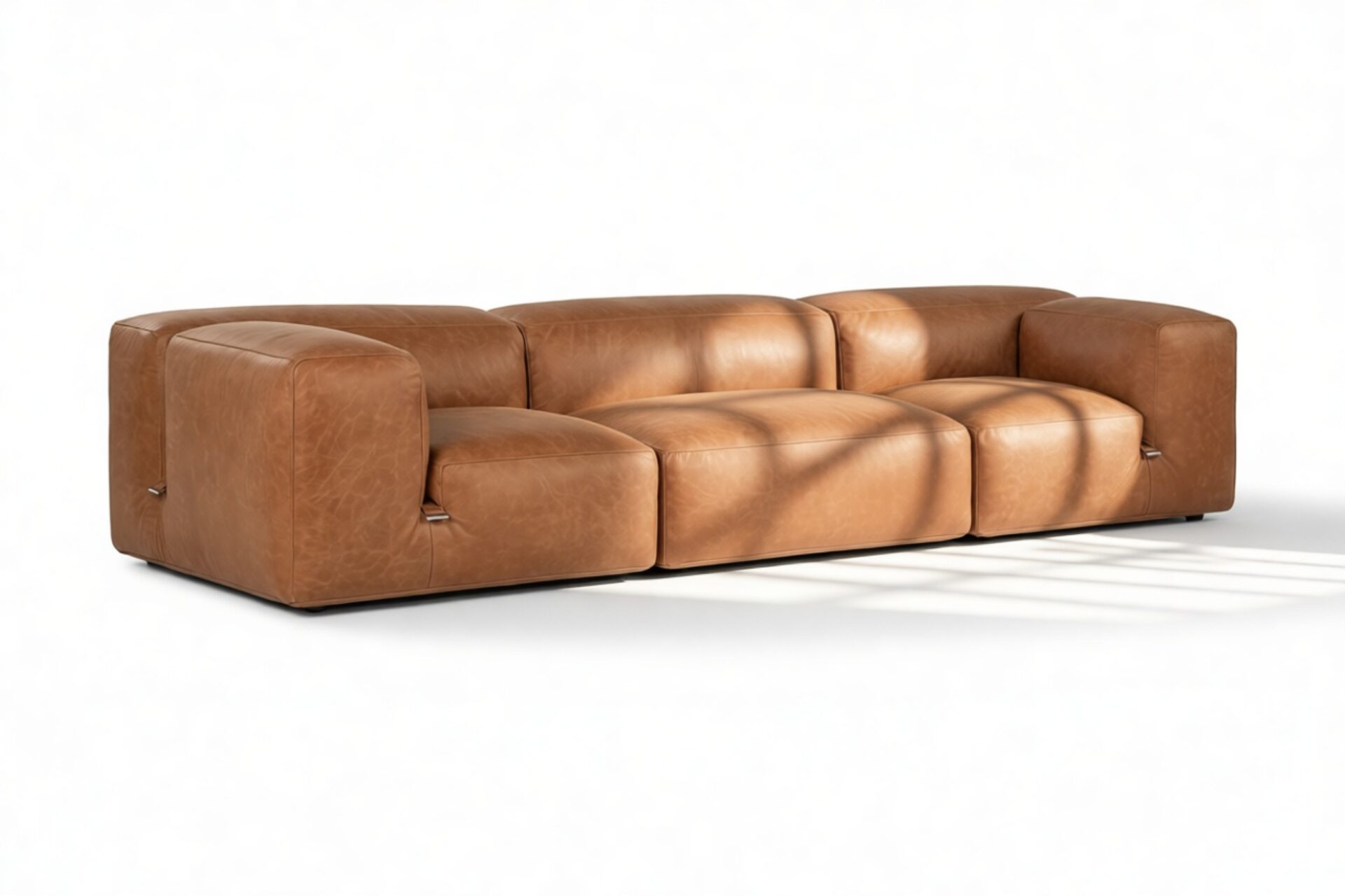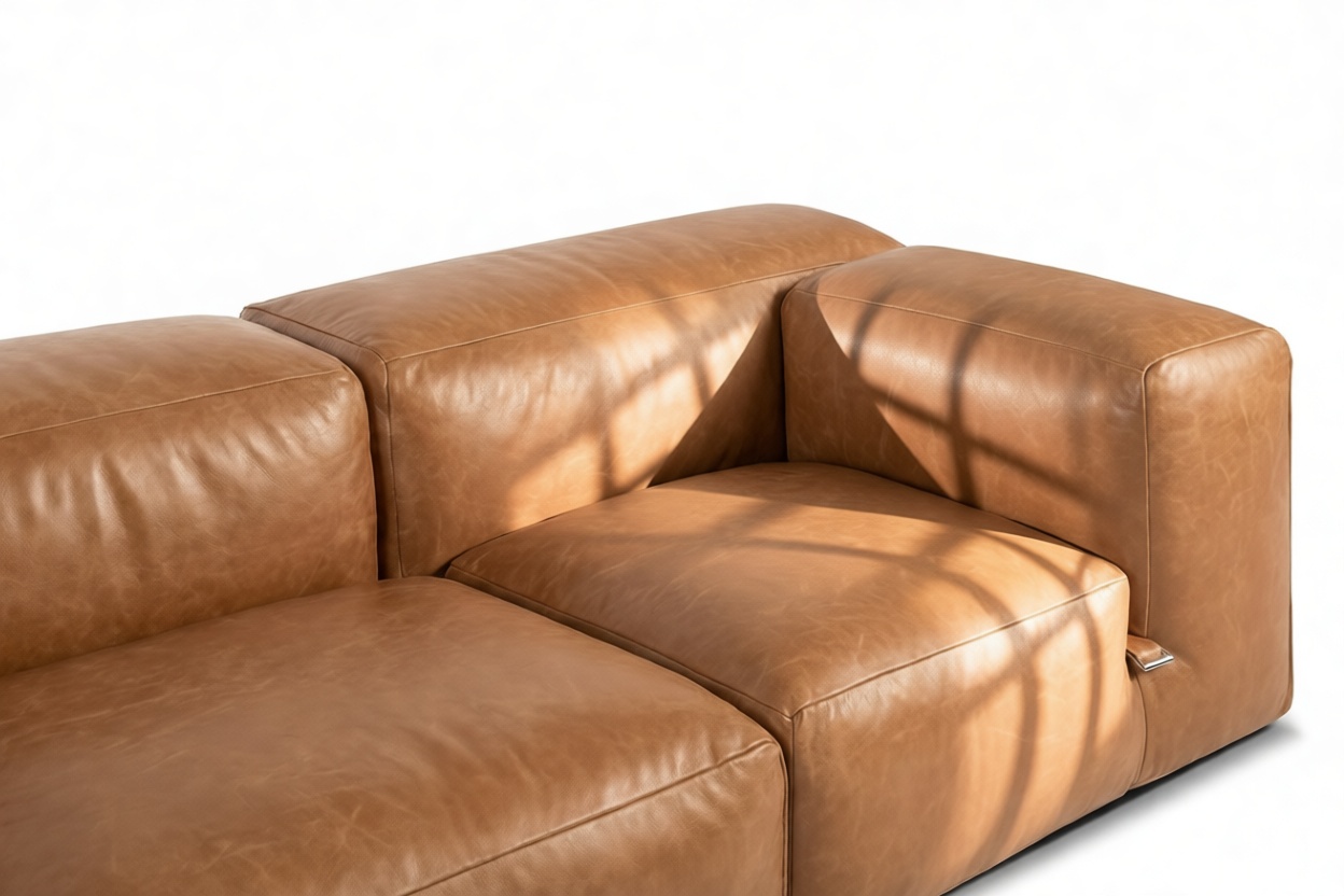 Introducing the Le Mura Sectional collection, a blend of contemporary style and comfort. Featuring a plush tan vegan leather option, this sectional offers deep comfort with a foam interior and soft geometric shapes. Its versatile modular design allows for easy reconfiguration, adapting seamlessly to different living spaces. Elevate your decor with this luxurious and flexible piece.