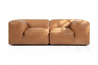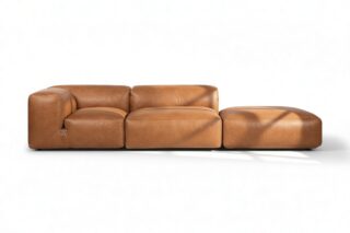 Discover our collection, available in both neutral-toned fabric and leather or vegan suede. Experience the deep comfort provided by the foam interior, complemented by understated wooden legs and sleek metal buckles for easy configuration.