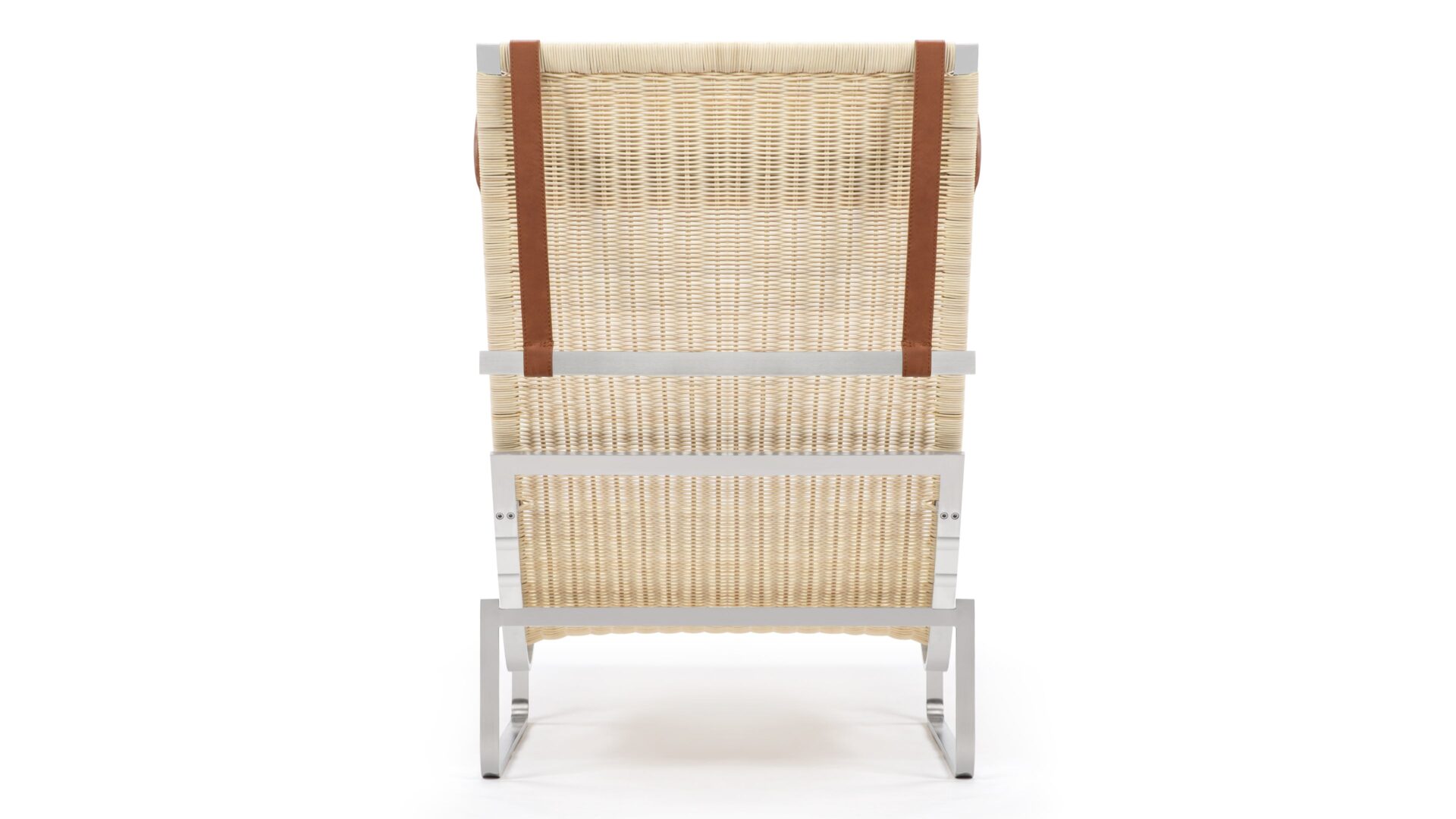 Experience the charming combination of warm woven wicker and cool metallic framing in harmony with the luxurious smooth leather headrest of the Lea. This chair embodies a unique blend of visual lightness and textured richness, elevating your space with sophistication.