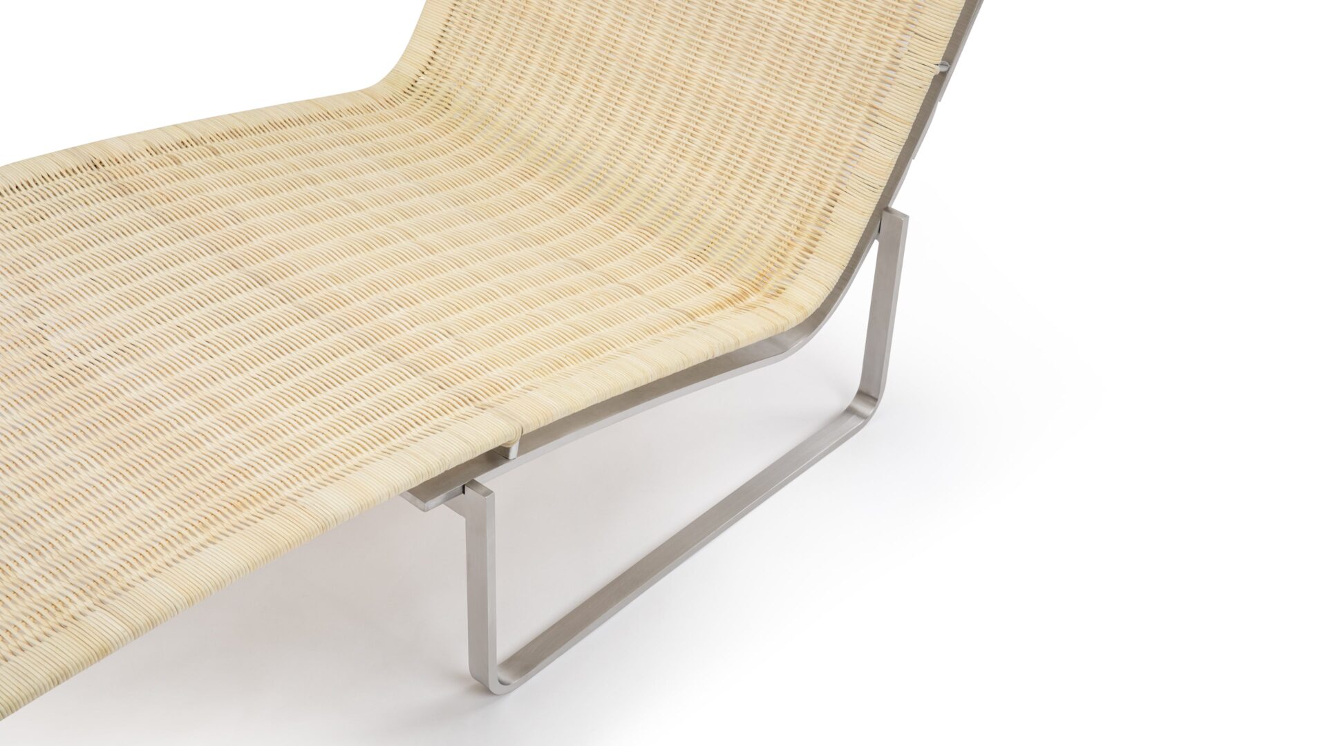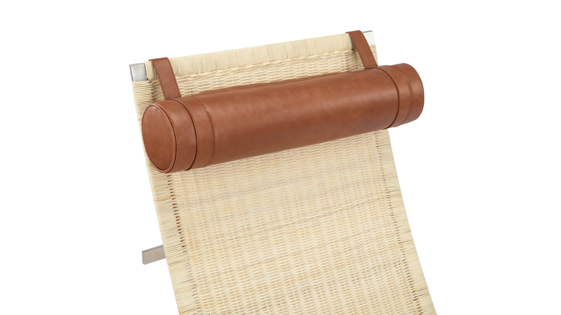 Experience a harmonious blend of natural elegance and functional design with the Lea Wicker Lounge Chair. This chair showcases a leather-upholstered headrest that adds a touch of luxury and adjustable comfort. Crafted with tightly woven wicker for its seat and leg rest, this chair exudes a light, organic look, while the sturdy metal frame ensures durability and contemporary charm. The ergonomic, low-profile shape gently cradles the body, effortlessly promoting relaxation.
